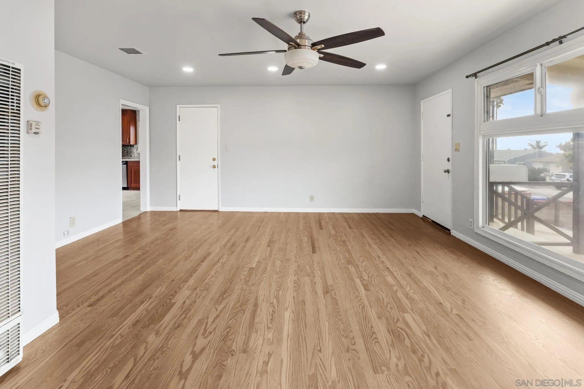 Comfortable property in Paradise Hills: a single-level rambler with stunning views of Downtown and the Bay Bridge. This home boasts a large picture window in the living room, perfect for enjoying the view. The remodeled kitchen includes granite countertops and solid wood cabinetry. Wood floors run throughout the home, with tile in the kitchen and bathrooms. The home includes three bedrooms and one newly remodeled hall bathroom. Exterior features include large front and back patios, a two-tier backyard with established trees, and western views. Also included is a single-car garage with laundry and additional storage. The property is conveniently located near easy access to schools, parks as well as the 54 and 805 freeways.