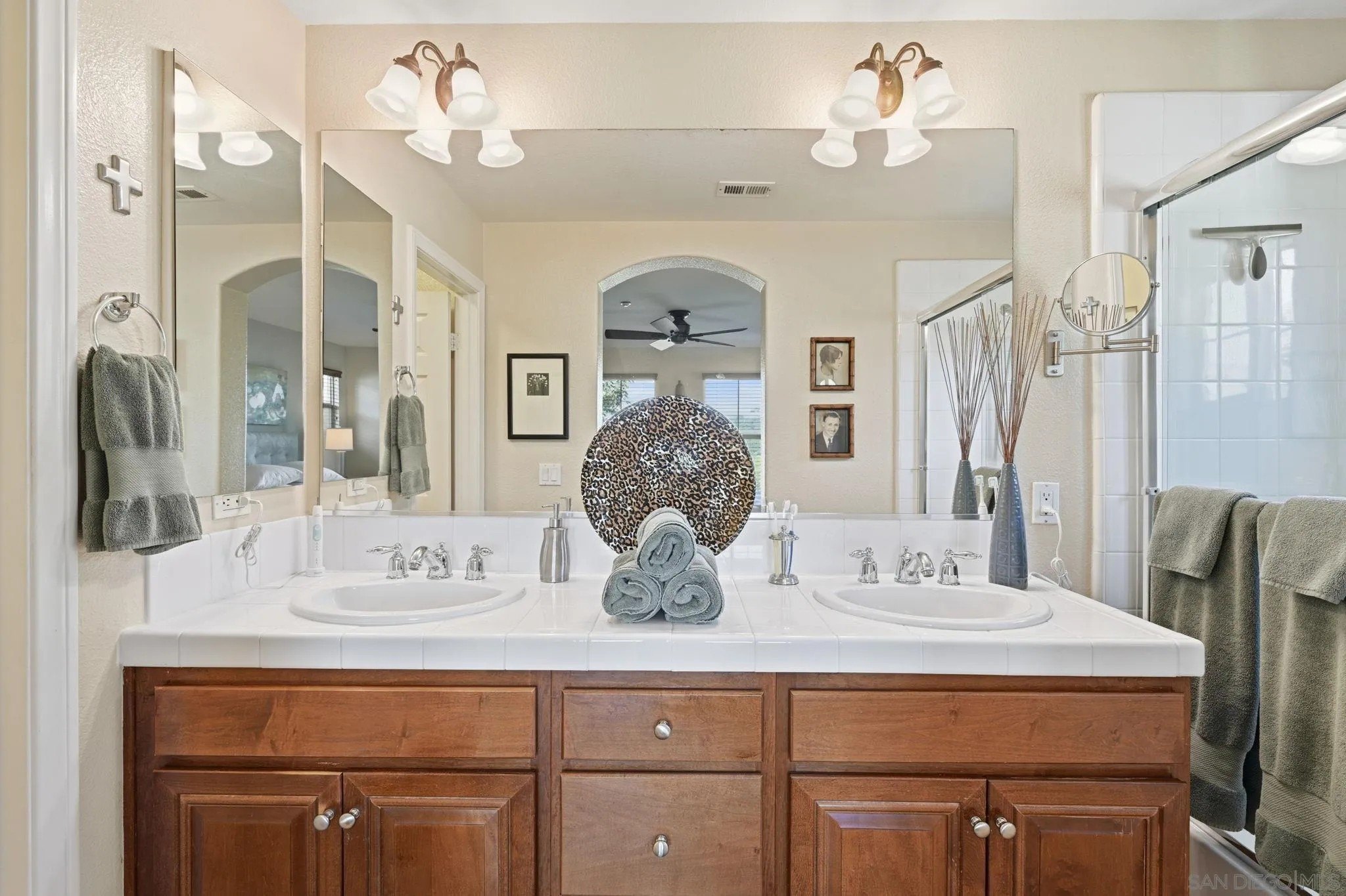 Located on Escala's "Gold Coast", high above a hillside of lush greenery and mature trees, this home offers an exceptional level of privacy, quality, design and views far and wide. From the moment you step inside, the home feels like a thoughtfully curated model: stylish, warm, and impeccably maintained. The original owners have taken great care in selecting bespoke window coverings, Bosch appliances, granite countertops, built-in speakers, and rich hickory engineered wood floors that span all three levels to create a timeless yet contemporary aesthetic. Every space feels intentional with 3 ensuite bedrooms, including one on the first floor which could double as an office, open floor plan for living and dining with kitchen island, an interior laundry room, powder room and an abundance of natural light throughout from the multitude of windows on three sides. Tucked away in a premier location, the home's condition is pristine. This is a property where every finish has been cared for, every detail considered, and nothing left to chance. An attached 2 car garage adds convenience, while the overall layout offers a perfect balance of comfort, functionality, and elevated design. Set within one of Mission Valley's most desirable gated communities, Escala is known for its resort-style amenities and unbeatable central location - near freeways, shopping, dining, downtown, beaches, and Snapdragon Stadium. This particular home stands apart for its privacy, polish, and pride of ownership. A rare opportunity to own a residence that truly feels better than new.