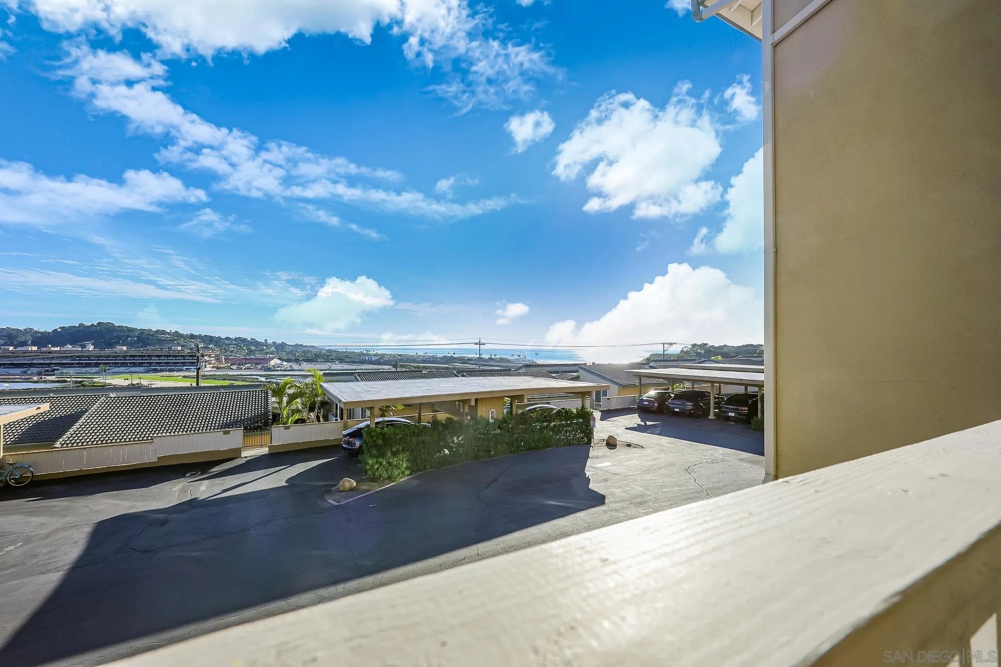 AMAZING OCEAN VIEW!!! Soak in the coastal lifestyle with sweeping views from the Del Mar breakwaters to the legendary Del Mar Racetrack and Fairgrounds. Located in the highly desirable Sea Turf community of Solana Beach, this single-story residence offers a rare blend of elevated coastal lifestyle and income potential, with SHORT-TERM RENTAL PERMITTED. Large south-facing windows flood the home with natural light, enhancing the open-concept kitchen and living area-ideal for entertaining or effortless daily life. Step onto your private ocean-view balcony to sip a beverage while enjoying Pacific sunsets or horses charging across the finish. This 2-bed, 2-bath home offers 1,218 square feet of well-designed living space featuring luxury vinyl plank flooring throughout and an upgraded kitchen with stone countertops, KitchenAid range and new stainless dishwasher & fridge. The thoughtful layout includes new in-unit washer and dryer for added convenience. Designed as a true beachside retreat, the home includes a large storage area for longboards & cruiser bikes, and is walking distance to the beach. Tucked away from the street, it provides a tranquil setting while remaining moments from it all-just a short walk to the iconic Cedros District, known for premier dining, boutiques, farmers market and live music. Additional highlights include a pool, saunas, ocean view clubhouse, two reserved parking spaces (one covered), and flexibility as a primary residence, second home, or high-demand Airbnb or VRBO investment in one of North County's most sought-after communities.