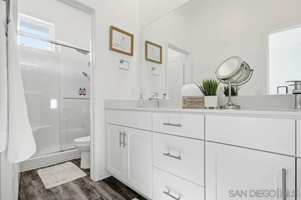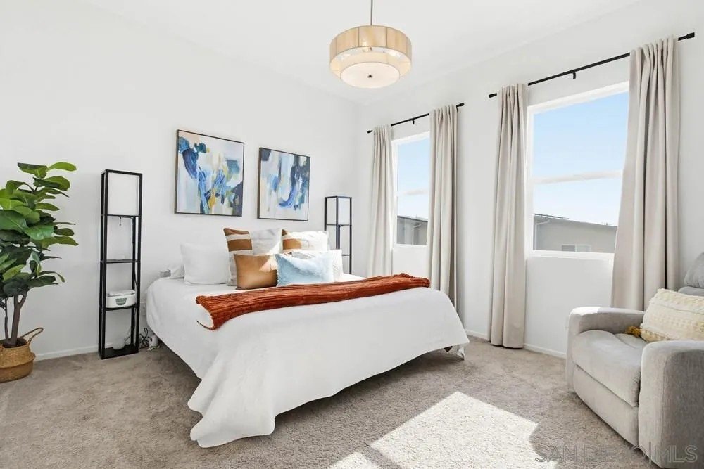 Built in 2024, this stylish 1,430 sq ft, 3-bedroom, 2.5-bath home offers modern design, energy efficiency, and thoughtful functionality throughout. Enjoy 9-foot ceilings and vinyl plank flooring on the main level, creating a bright and open living space. The contemporary kitchen features a large peninsula, oversized pantry, and abundant storage-perfect for everyday living and entertaining. Upstairs, all bedrooms are conveniently located alongside a full-size laundry closet with ample storage. Bathrooms are beautifully updated with light, neutral finishes for a fresh, modern feel. Additional highlights include a 2-car garage, six owned solar panels, extra guest parking, and easy access to the 94 freeway. A rare opportunity to own a brand-new home with modern comforts and excellent accessibility.