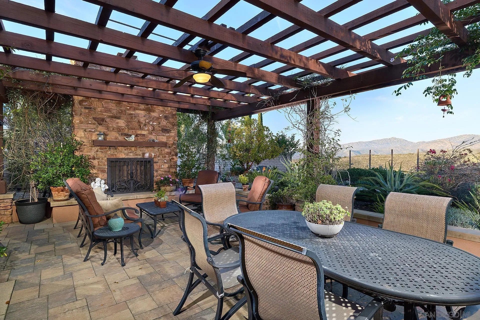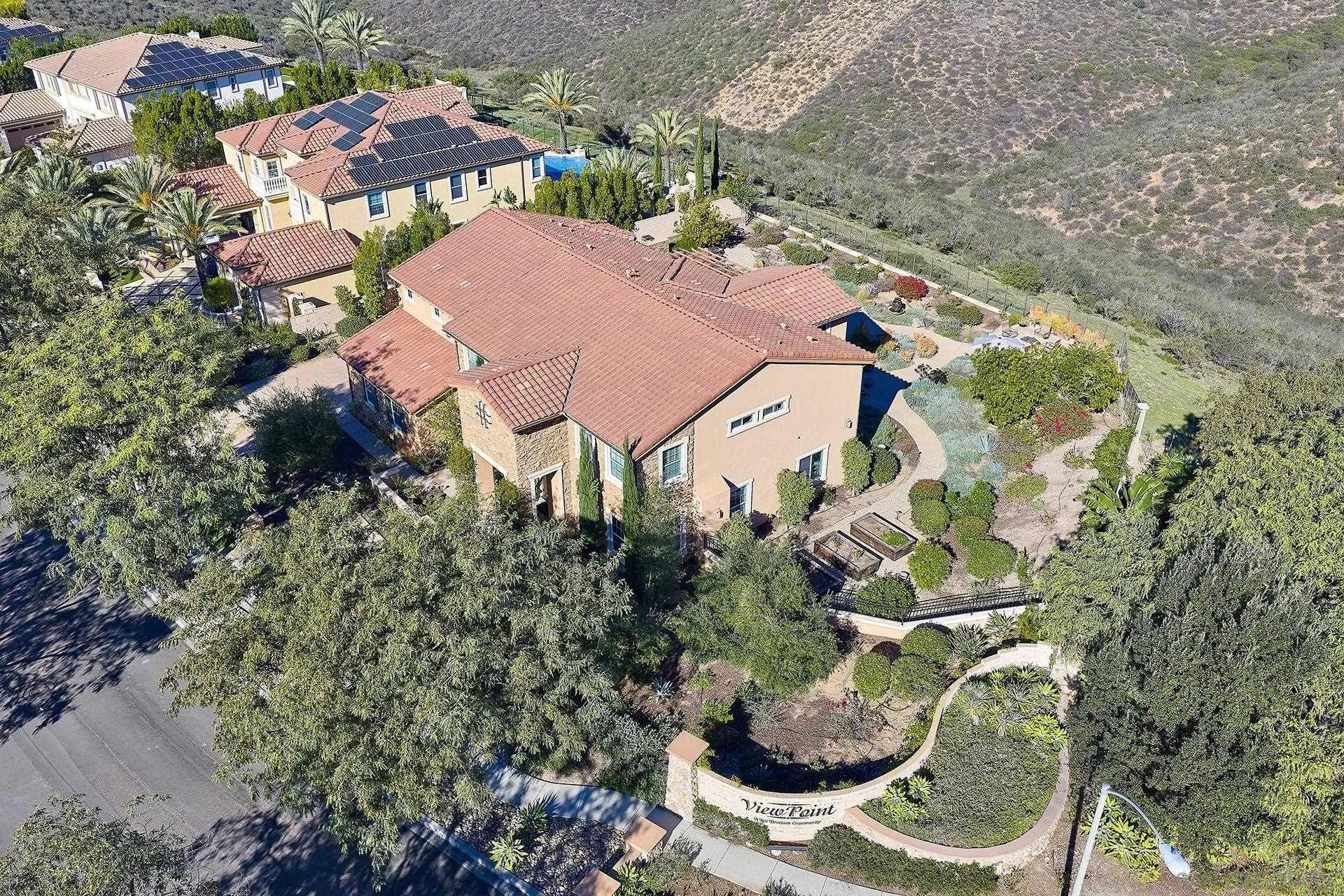 Set on one of Stonebridge's most desirable streets, this exceptional estate residence showcases thoughtful upgrades and refined custom millwork throughout. The gracious entry foyer welcomes you into an elegant sitting room and formal dining room with a butler's pantry-perfect for hosting with ease. The expansive great room features bespoke built-ins and a statement fireplace, all framed by soaring ceilings that enhance the home's light-filled sophistication. Offering approximately 4,659 square feet, the thoughtfully designed floor plan includes five ensuite bedrooms, including a full bedroom suite on the main level, along with a dedicated office ideal for today's work-from-home lifestyle. The grand chef's kitchen is designed for both everyday living and entertaining, complete with a walk-in pantry, premium stainless steel appliances, and a built-in refrigerator, seamlessly connecting to the main living areas. The luxurious primary suite is a private retreat with breathtaking views, a spa-inspired bath featuring custom tile shower and flooring, and an expansive walk-in closet. Enjoy panoramic mountain views and true indoor-outdoor living from the professionally designed backyard, highlighted by a custom loggia and outdoor fireplace. The drought-tolerant, manicured grounds feature mature citrus and fruit trees, with ample space to add a pool or sport court. Additional highlights include a four-car garage, exceptional storage, and meticulous pride of ownership throughout.