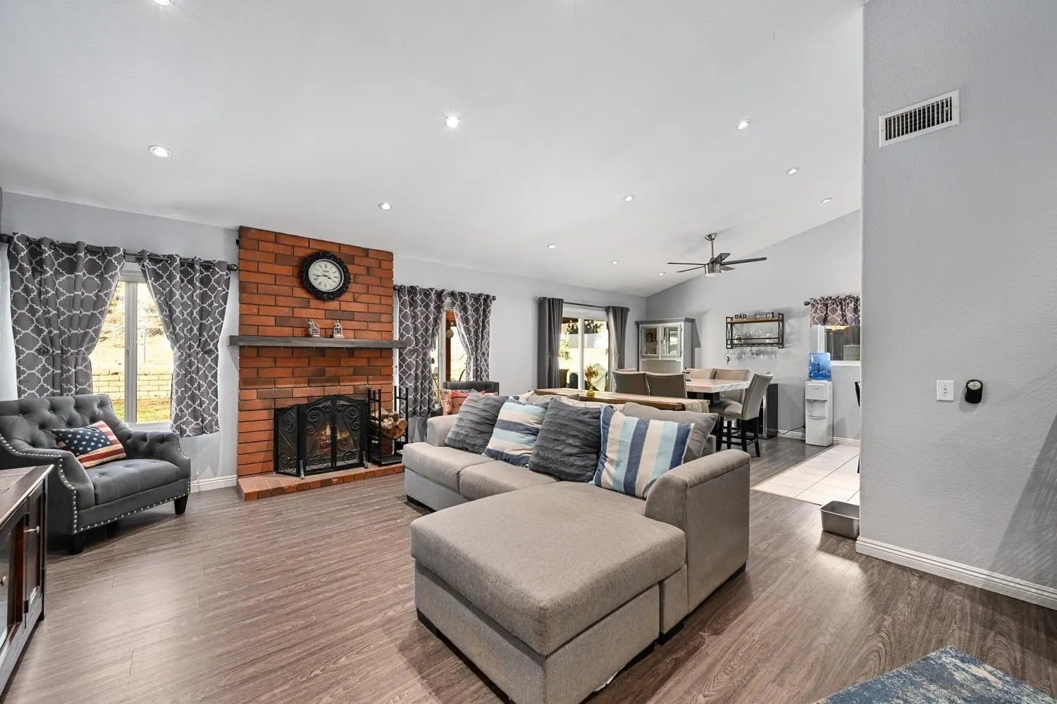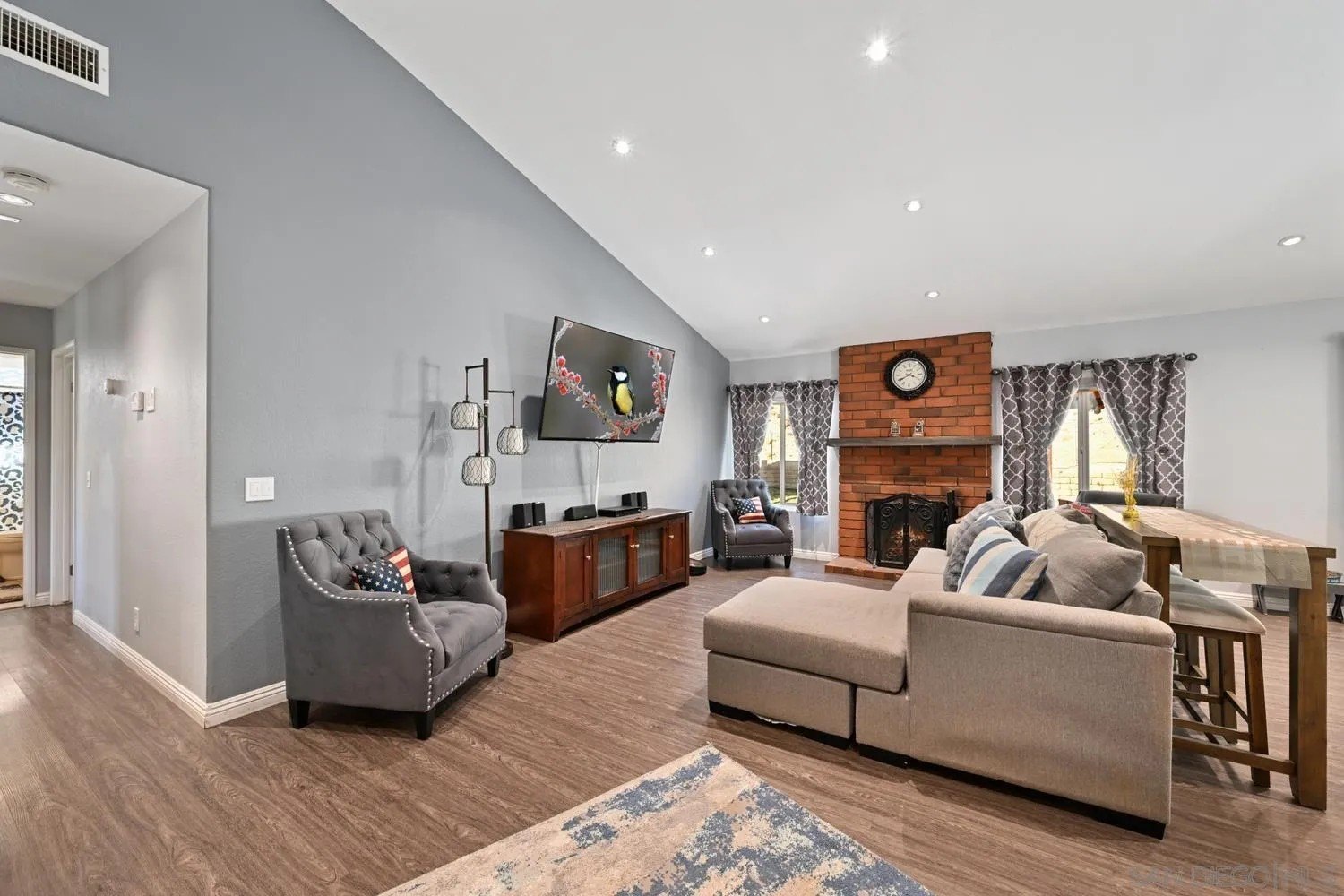 Beautifully updated single-story home located in the desirable Lake Jennings Estates community with no HOA. This remodeled 3-bedroom, 2-bath residence sits just minutes from scenic Lake Jennings and offers a perfect blend of modern upgrades, energy efficiency, and relaxed East County living. The light-filled open floor plan features upgraded flooring installed in 2016, triple-pane windows, and a sliding glass door that provide excellent energy efficiency and a quiet interior. The kitchen offers warm wood cabinetry, added shelving for extra storage, and flows seamlessly into the dining and living areas, making it ideal for everyday living and entertaining. The spacious bedrooms feature generous closet space, including a private primary suite designed for comfort and retreat. Additional highlights include central heating and air conditioning for year-round comfort. Step outside to a backyard built for entertaining with a stamped concrete patio, outdoor fireplace, jacuzzi, and covered patio area, plus a storage shed for added functionality. Thoughtfully maintained and truly move-in ready, this home offers comfort, charm, and a prime location near outdoor recreation, making it an excellent opportunity for first-time buyers or anyone seeking a peaceful Lake Jennings lifestyle.