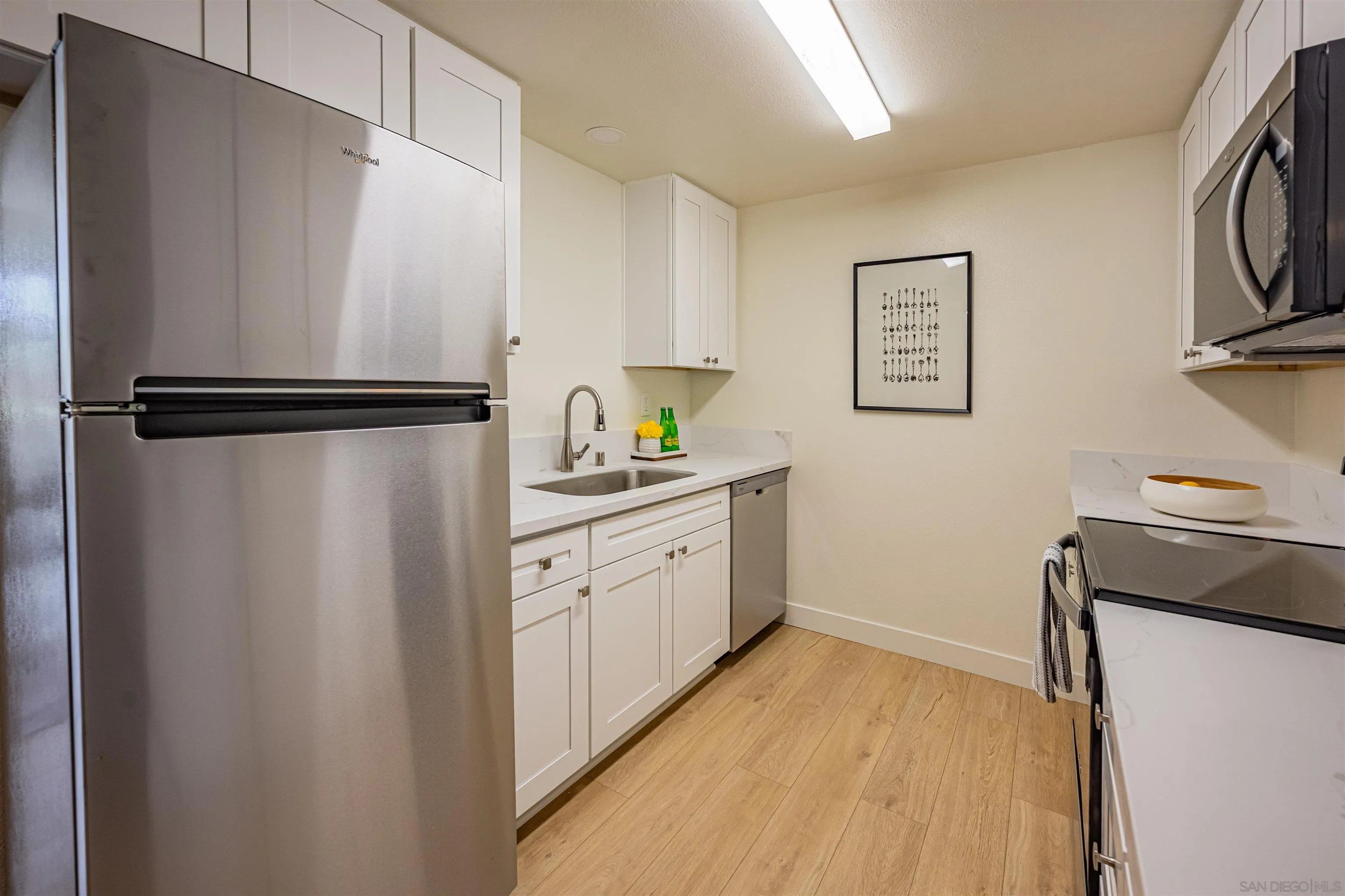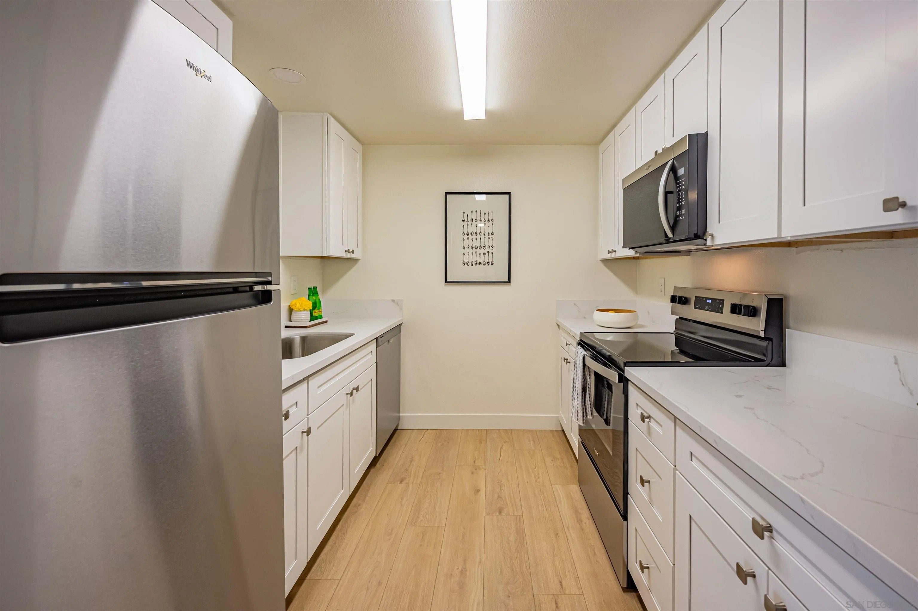 Welcome to your stunning new home in this beautifully renovated condo in Silverlake. This entry-level, downstairs unit is perfect for anyone looking for easy accessibility without the hassle of stairs. Featuring 2 bedrooms and 2 full bathrooms within 761 square feet, this condo was fully renovated in January 2026. It boasts all new kitchen appliances, gorgeous white shaker cabinets, and elegant white quartz countertops. The newly remodeled bathrooms and sleek vinyl flooring, which mimics beachwood, add to the charm of this space. Enjoy the sparkling community pool just steps from your door and take advantage of the prime location, within walking distance to popular local spots such as LA Fitness, Sushi Lounge, Raising Canes Chicken, Better Buzz Coffee, and much more! Don't miss out on this fantastic opportunity to own a beautifully updated condo in a vibrant community of Poway including the acclaimed Poway Unified School District. This unit includes 2 assigned parking spaces steps from the unit. 1 covered and 1 uncovered.
