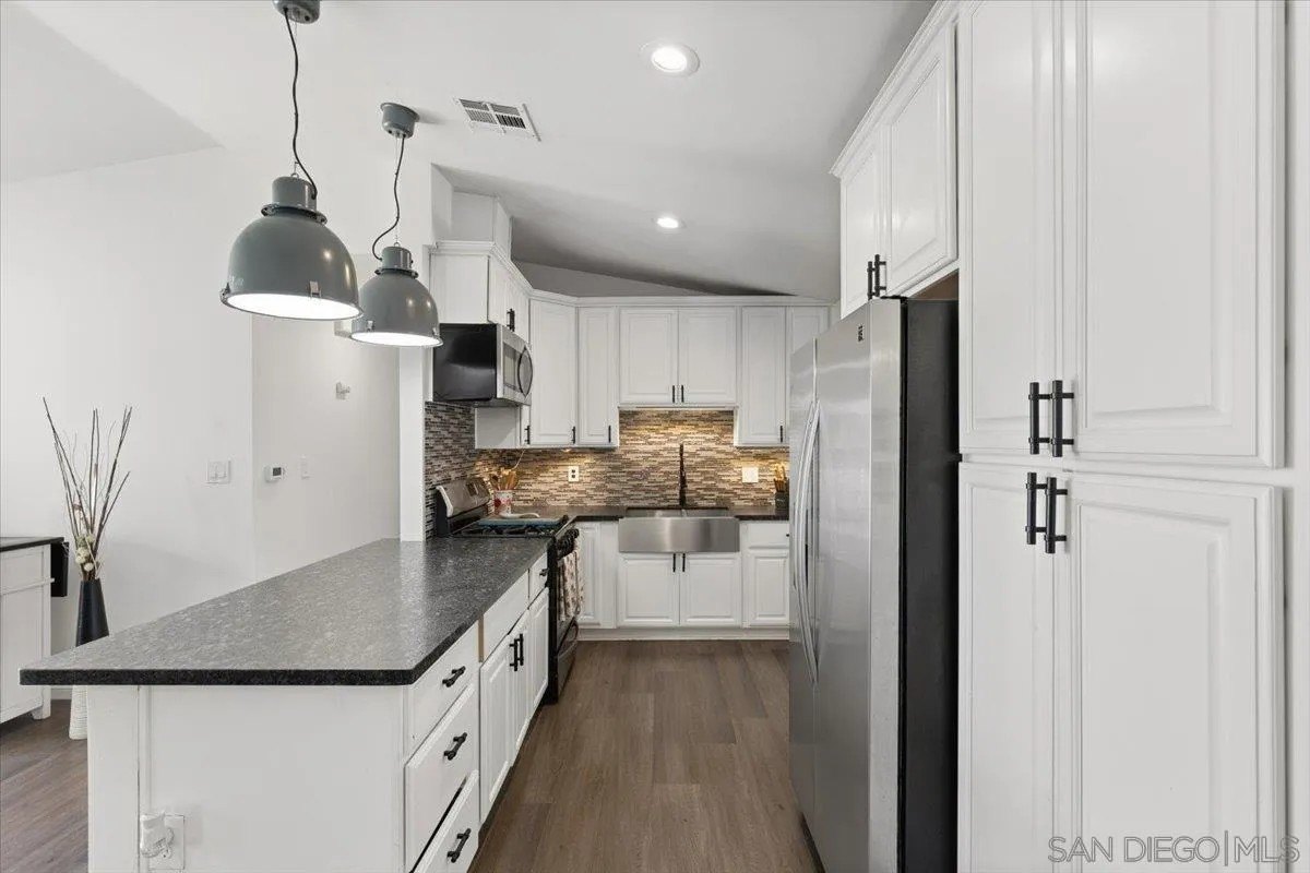 Welcome to 342 Billow Drive, a beautifully upgraded single-story home offering 4 bedrooms, 2 bathrooms, and 1,487 square feet of comfortable living space in San Diego's 92114 community. This inviting residence features paid-off solar for long-term energy savings and unobstructed panoramic views of East County and San Miguel Mountain, creating a truly special setting. The open-concept layout is highlighted by a vaulted ceiling in the living room, enhancing natural light and creating an airy feel ideal for everyday living and entertaining. Recent upgrades include new interior paint, laminate flooring throughout, a stylish kitchen backsplash, and gorgeous tile installed in the bathroom showers, showcasing thoughtful improvements throughout the home. The space feels warm, cozy, and functional, blending comfort with modern touches. Outside, enjoy a low-maintenance lifestyle with turf installed in the front yard and a fully fenced property offering privacy and security. Retaining walls have been flattened to create usable outdoor hangout areas, perfect for relaxing, entertaining, and taking in the spectacular East County views. The home also offers a driveway for parking along with plenty of convenient street parking for guests. With scenic views, energy-efficient features, and upgrades throughout, this move-in-ready home is a rare opportunity to enjoy single-level living in the desirable Lomita Village neighborhood, offering comfort, convenience, and an exceptional San Diego lifestyle.