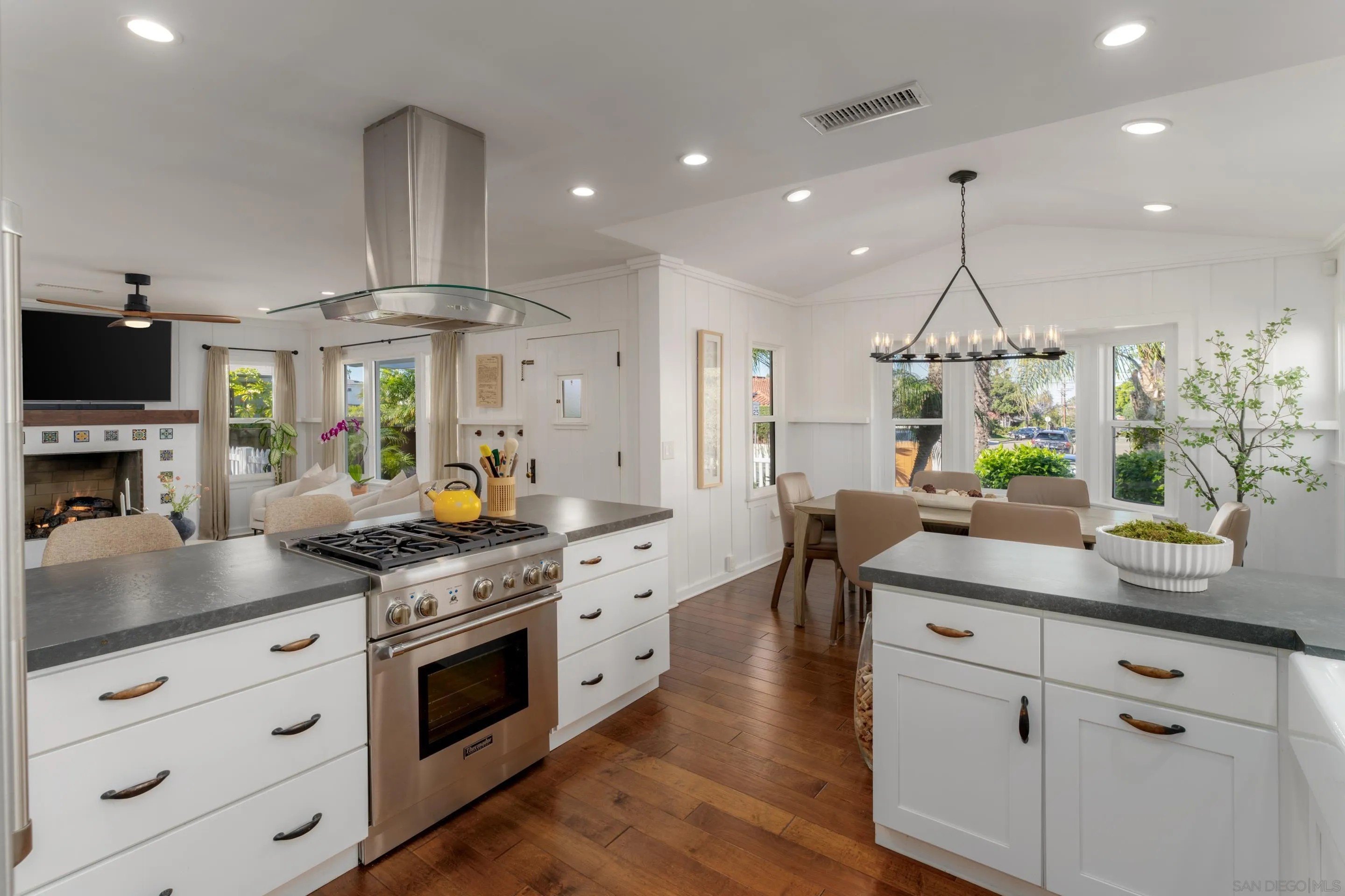 Welcome to 383 Westbourne St. - an incredibly rare offering in the coveted Beach Barber Tract of La Jolla, just one block from Windansea Beach. This exceptional coastal residence seamlessly blends refined California beach living with modern luxury, set on an expansive double lot - a rarity in one of La Jolla's most in-demand neighborhoods. The property has undergone a full, comprehensive, thoughtful remodel: including full exterior siding replacement, owned solar, and a complete interior transformation featuring high-end finishes, designer lighting, and top-of-the-line appliances throughout. Every detail of this home has been curated with both elegance and livability in mind. The estate includes a main residence, 1 bed / 1 bath detached guest house with full kitchen, and two-car garage, offering flexibility for guests, extended family, or additional income potential. Outdoor living is exceptional, with generous front and backyard spaces designed for both relaxation and entertaining. Enjoy a built-in grill, above ground spa, custom putting green, and multiple lounge and entertaining areas - all surrounded by lush, mature landscaping and a fully fenced, private yard- your own serene coastal oasis. Whether you're savoring quiet moments at home or taking a short stroll to catch a surf session or sunset, this property delivers the quintessential La Jolla lifestyle. Located in the prestigious Beach Barber Tract, known for its proximity to the ocean, walkability, and timeless appeal, this is truly one of the finest coastal settings in San Diego.