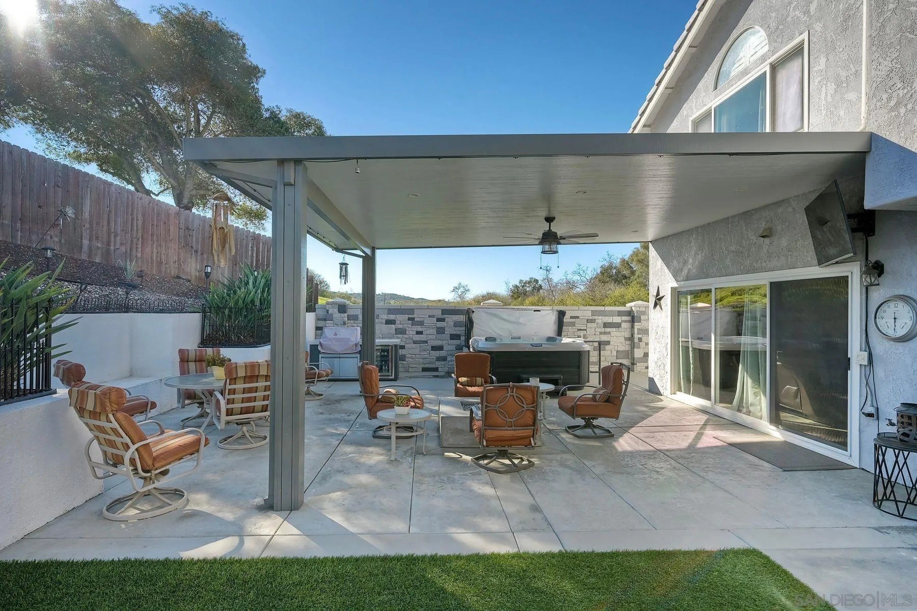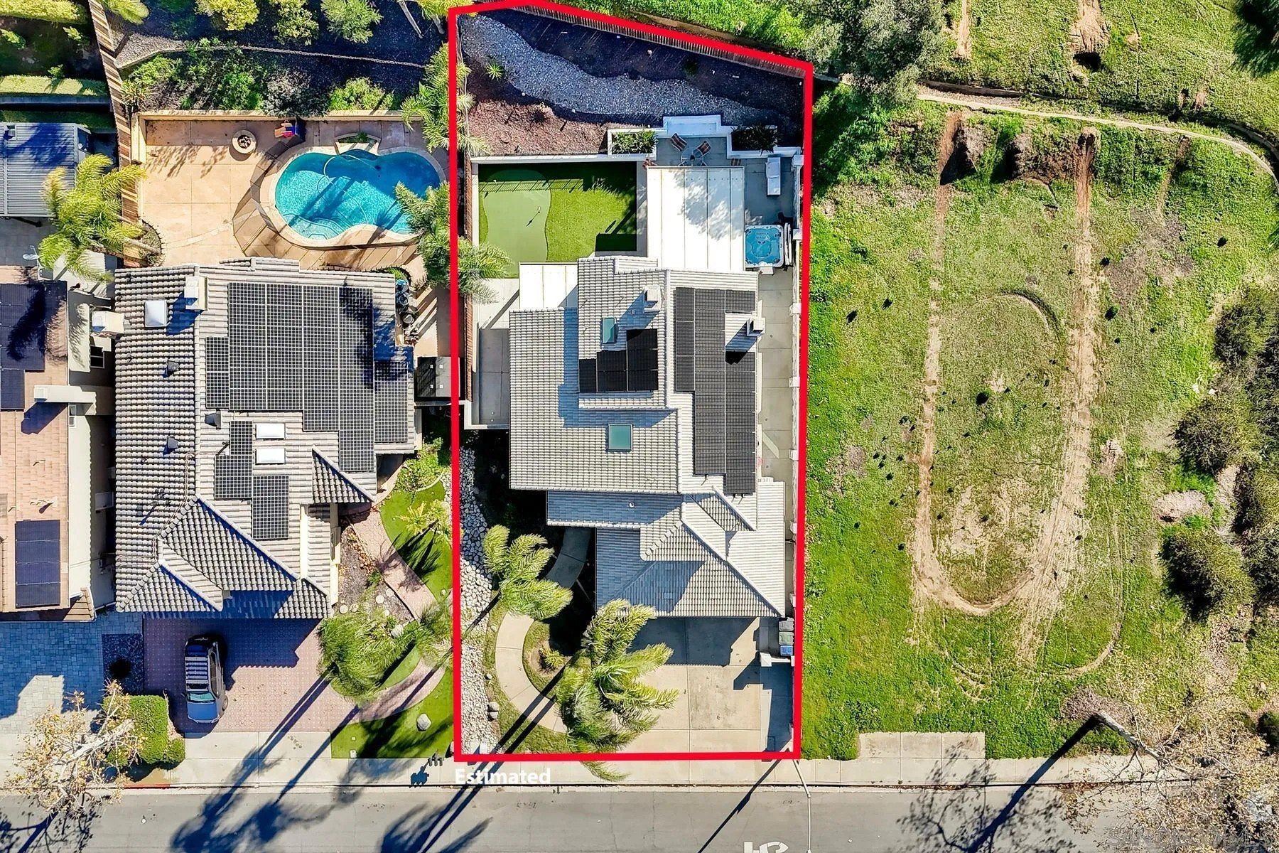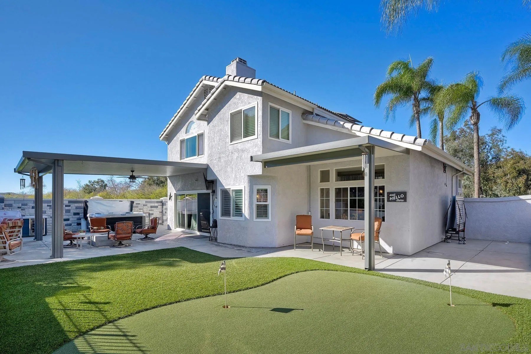 Absolutely stunning, solar-powered home featuring a full bedroom and bathroom on the main level. This highly upgraded residence offers a beautifully remodeled kitchen and baths, with the kitchen showcasing granite countertops, upgraded cabinetry, stainless steel appliances, farmhouse sink, subway tile backsplash, pantry, trash compactor, and new dishwasher. All three bathrooms have been fully remodeled, including a luxurious primary bath with walk-in closet, dual sinks, custom tile, a striking walk-in shower, and a large soaking tub. Additional highlights include LVP flooring, vaulted ceilings, recessed lighting, new shutters and baseboards, mostly new windows, a newer roof, and stacked-stone fireplaces with elegant hearths. The AC system is only six months old. The private backyard is an entertainer's dream with no neighboring homes on three sides, offering incredible views. Enjoy a private jacuzzi, built-in BBQ, covered patio with misters, plumbed fire pit, putting green, and more. Ideally located within walking distance to an elementary school and close to hiking and biking trails. No HOA.