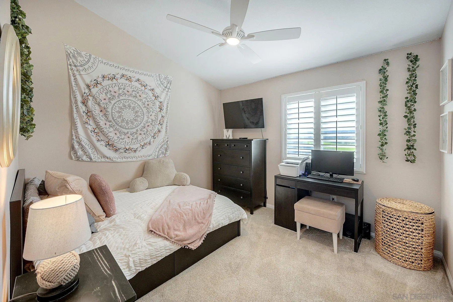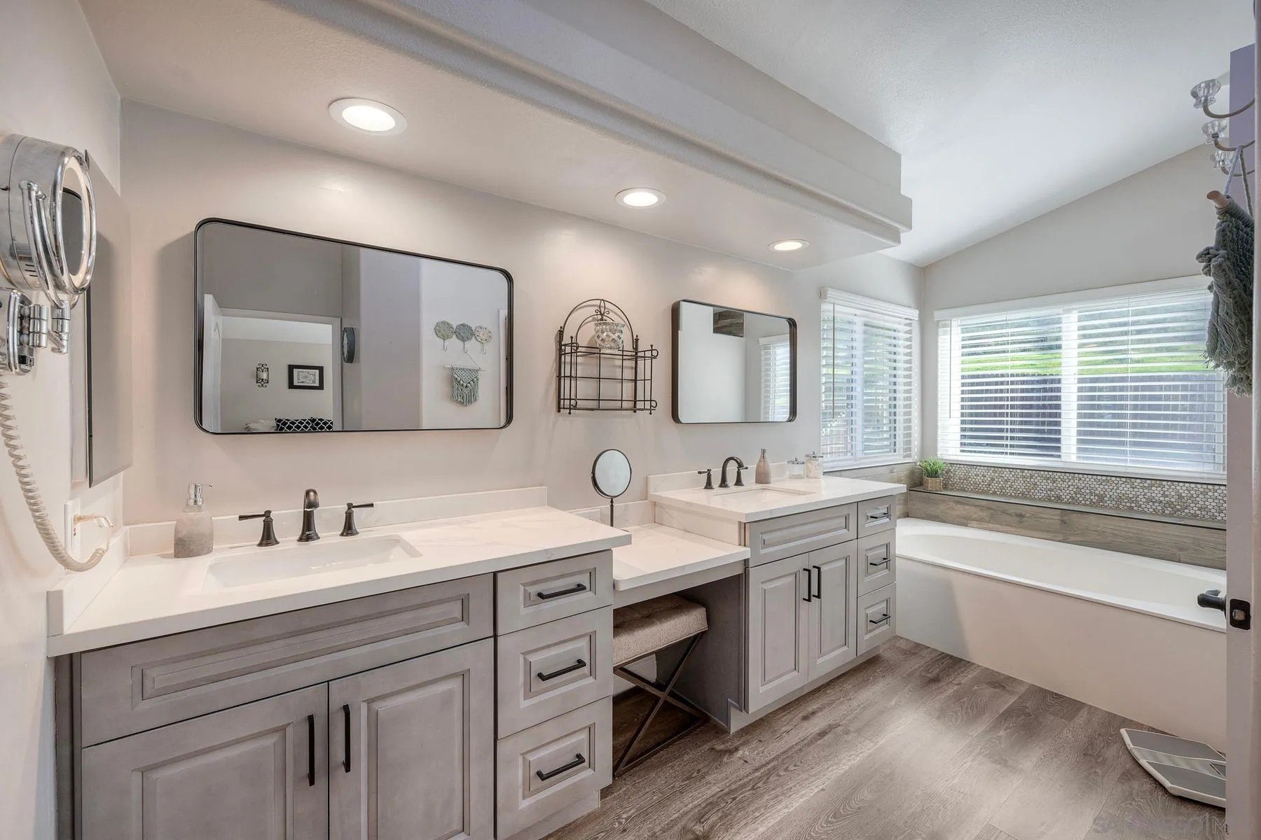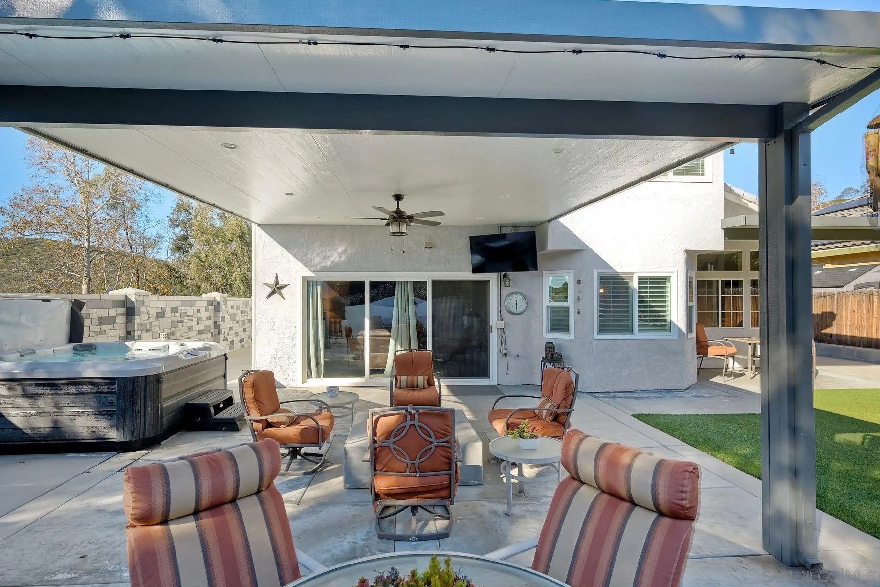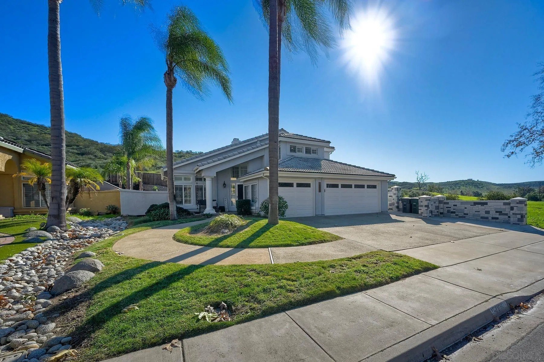 Absolutely stunning, solar-powered home featuring a full bedroom and bathroom on the main level. This highly upgraded residence offers a beautifully remodeled kitchen and baths, with the kitchen showcasing granite countertops, upgraded cabinetry, stainless steel appliances, farmhouse sink, subway tile backsplash, pantry, trash compactor, and new dishwasher. All three bathrooms have been fully remodeled, including a luxurious primary bath with walk-in closet, dual sinks, custom tile, a striking walk-in shower, and a large soaking tub. Additional highlights include LVP flooring, vaulted ceilings, recessed lighting, new shutters and baseboards, mostly new windows, a newer roof, and stacked-stone fireplaces with elegant hearths. The AC system is only six months old. The private backyard is an entertainer's dream with no neighboring homes on three sides, offering incredible views. Enjoy a private jacuzzi, built-in BBQ, covered patio with misters, plumbed fire pit, putting green, and more. Ideally located within walking distance to an elementary school and close to hiking and biking trails. No HOA.