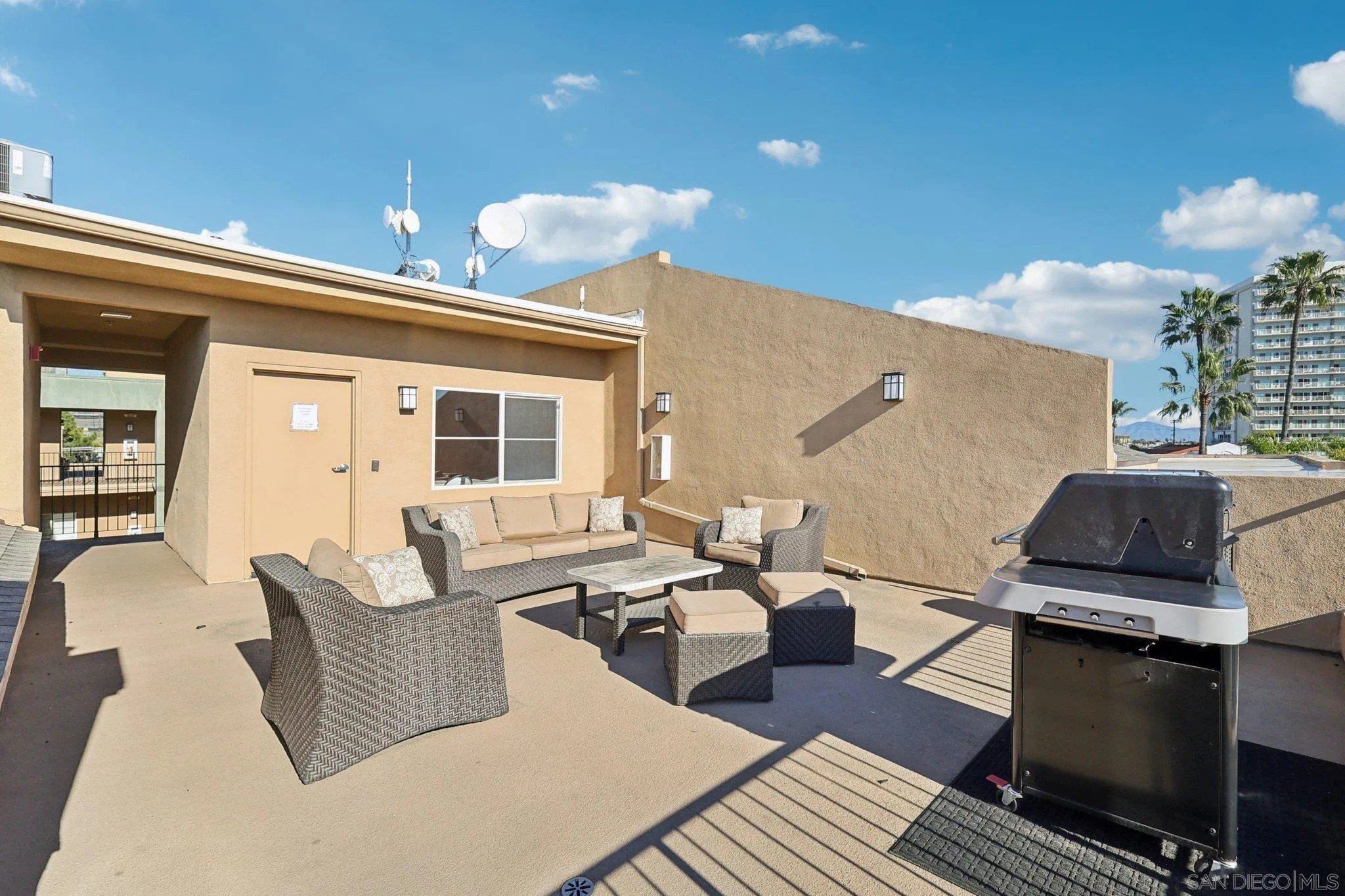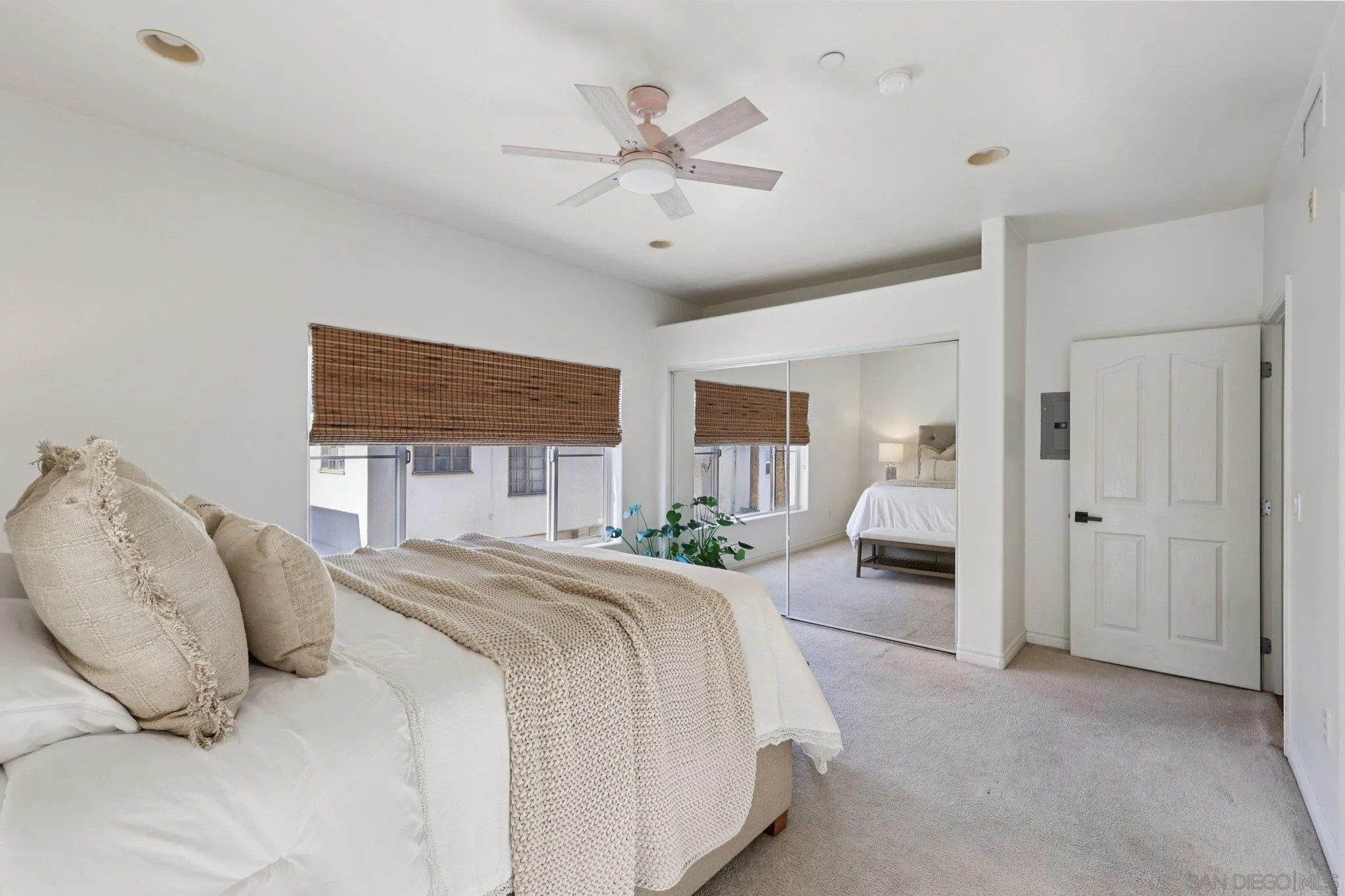 You've found one of Hillcrest's most compelling opportunities-a rare first-floor corner-unit residence offering a prime location, exceptional layout, and light-filled living. Set within a newer, well-maintained building, this home features soaring 9-foot ceilings, abundant natural light, and a seamless blend of comfort and functionality. The spacious primary suite offers an en-suite bathroom and generous space rarely found in condo living, while the secondary bedroom is positioned across the hall-perfect for guests, a home office, or added privacy. A full-size in-unit washer and dryer, ample interior storage, and an additional storage closet off the balcony enhance everyday convenience. A newer HVAC system with Google Nest thermostat provides smart, energy-efficient comfort year-round. Enjoy indoor-outdoor living from the balcony, or unwind on one of the building's two rooftop decks with city views, ideal for relaxing or entertaining. This FHA & VA approved community features a dedicated bike storage room, secured gated parking, and no dog breed restrictions. Ideally situated in Hillcrest, you're just a short stroll to University Heights, North Park, Balboa Park, the San Diego Zoo, and everyday amenities. Spend weekends one block away at the iconic Hillcrest Farmers Market and enjoy nearby favorites like InsideOUT, Trust, Great Maple, and the vibrant scene along 5th & University. Light-filled, well-appointed, and perfectly positioned-this is Hillcrest living at its best.
