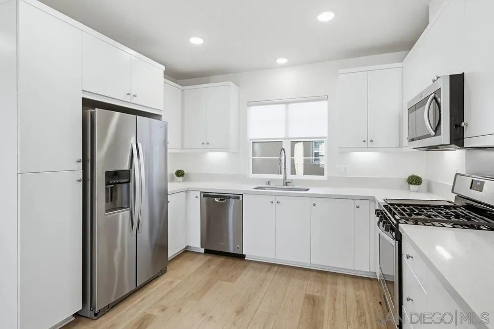 Discover this stunning Skyhaus Model 4 townhome nestled in the exclusive gated enclave of Rancho Tesoro, a true gem of Southern California living! This pristine 2-bedroom, 2-bathroom residence showcases a smart, open-concept design enhanced with premium modern upgrades for ultimate comfort and connectivity, such as a security screen door, Honeywell smart thermostat with convenient app control, Lutron smart lighting throughout the kitchen, living room, and stairway, a whole-house fan, sleek stainless steel appliances, LVP flooring, brand-new carpeting, fresh interior paint, a Ring Doorbell, and a MyQ smart garage door opener for effortless remote access. Enter through a private gated patio into a versatile entry-level bonus room-perfect as a home office or flex space. The home then opens seamlessly into a bright, airy main living level where the gourmet kitchen flows effortlessly into the inviting living area. Featuring quartz countertops and stainless-steel appliances, the kitchen serves as the centerpiece of the home. Adjacent, the light and bright living room with its expansive balcony offering picturesque mountain and neighborhood views is ideal for relaxed everyday living or entertaining. The primary suite includes plush new carpeting, a spacious walk-in closet, and an ensuite bathroom with quartz counters, dual vanities, and a generous walk-in shower. A comfortably sized secondary bedroom and full guest bathroom complete the well-designed layout. See Supplement
