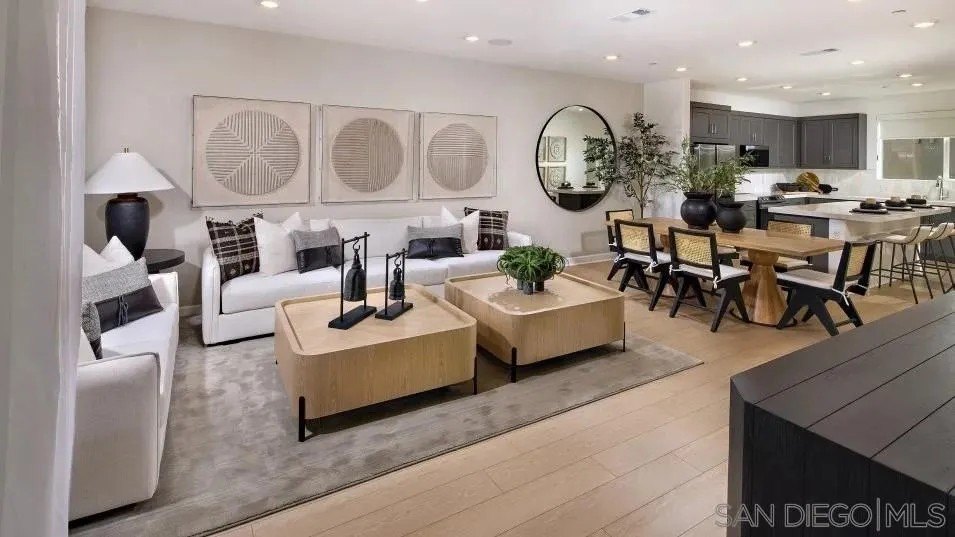 On the first floor of this new three-story townhome is a bedroom with an en-suite bathroom, perfect for a guest suite or home office space. On the second story, an open concept layout combines the kitchen with the living and dining areas, and a deck provides convenient outdoor access. Three bedrooms can be found on the third floor, including the luxe owner's suite with a private bathroom. The Trails is a brand-new masterplan with single-family and attached homes in Carmel Mountain Ranch, San Diego, CA. Five communities of attached homes now selling! Ashton is a collection of brand-new townhomes for sale within The Trails masterplan in San Diego, CA. Residents enjoy a great central location and easy access to I-15 and 56 freeways for simplified commutes and getting around. The community is conveniently close to shopping at Carmel Mountain Ranch and UTC, 4S Ranch, Del Sur and more. Students will attend schools within the Poway School District. Photos or renderings may be of the Model Home and not the actual home.