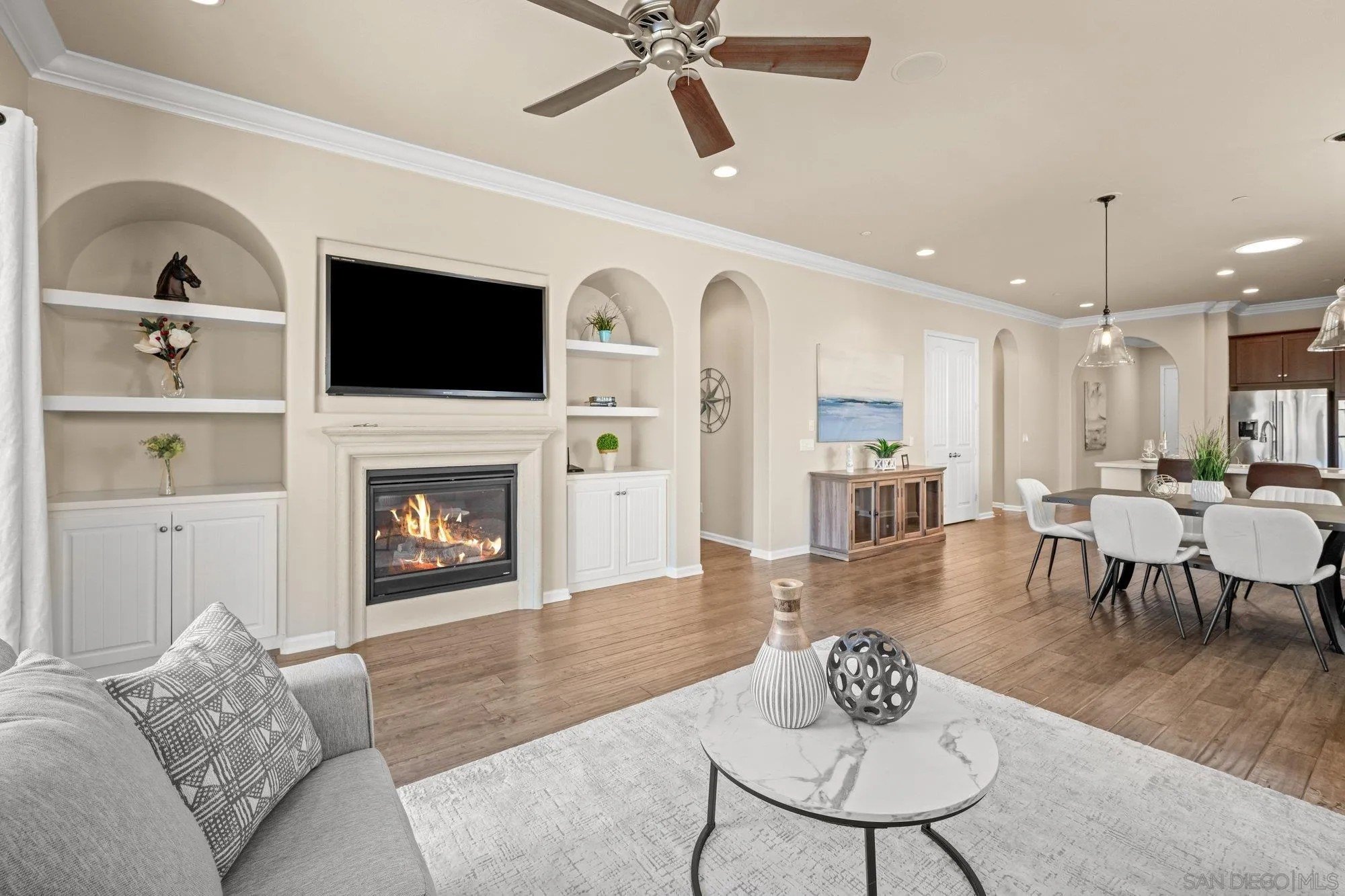 Welcome home to this Beautiful, single level view home in the highly desirable La Costa Oaks North community of Carlsbad. Meticulously maintained and move in ready this home offers an open floor plan, expansive chefs kitchen and thoughtful entertaining space inside and out. Enjoy the outdoor fire pit and panoramic hillside views. Top rated schools and cul-de-sac living make this a kid and dog friendly community. Neighborhood amenities include an Olympic sized pool, a clubhouse, dog-friendly play group areas, hiking trails, and well maintained green space community wide. Newer construction, paid solar and single level living make this a home you will stay in love with.