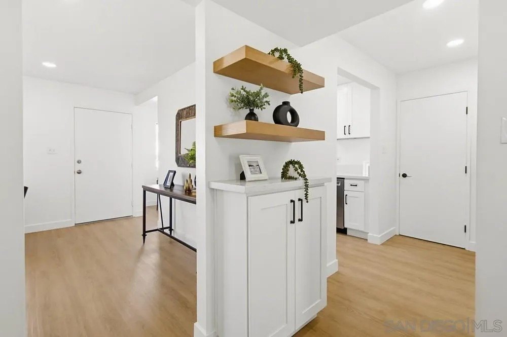 Experience effortless coastal living at 715 Sunflower St., a beautifully reimagined single-story twin home nestled in the sought-after Pacific Serena neighborhood of Encinitas. Thoughtfully remodeled throughout, this residence blends comfort and style with a light-filled open feel. The spacious primary suite features a private retreat, creating a serene space to unwind, In addition, next to the primary is a flexible bonus area that can be used for an office, closet or generous storage space which adds to the everyday functionality. The kitchen has been fully remodeled with new cabinets, stove, microwave, and dishwasher, complemented by an additional storage perfect for a pantry. Enjoy indoor laundry, remodeled bathrooms, new flooring, fresh paint, new light fixtures, fans and new modern baseboards throughout. Take in peekaboo ocean views by day and sparkling city lights at night, enhancing the home's relaxed coastal ambiance. With no HOA and a prime location close to the beach, dining, shopping, and all that Encinitas has to offer, this home is close to schools and delivers the ideal blend of lifestyle, location, and low-maintenance living.
