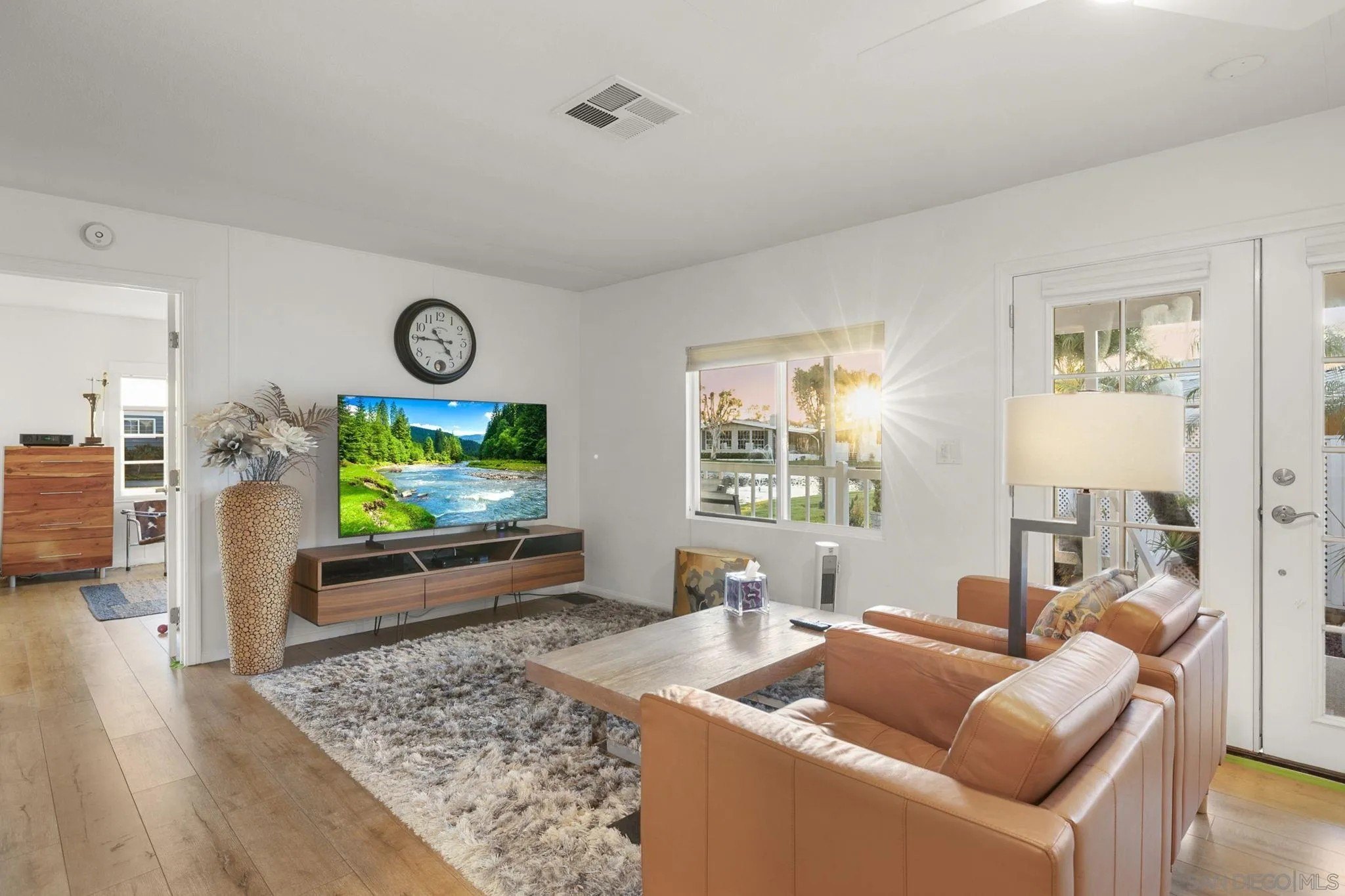 Updated and upgraded 2-bedroom, 2-bath home located in the outstanding gated 55+ community of Lakeshore Gardens. This unique split-bedroom floor plan offers bedrooms situated on opposite sides of the home, along with an optional room ideal for a home office, study, or additional living space. Enjoy an expansive side deck with captivating lake and rare sunset views-perfect for relaxing or entertaining. Remodeled kitchen showcases newer countertops, backsplash, cabinetry, refrigerator and oven range set in the center island, along with open space above the island to fully enjoy the view. Additional upgrades include newer flooring, baseboards, and moldings, fresh interior and exterior paint, newer ceiling fans, central air conditioning, and dual-pane windows with three sets of French double doors. French doors from the primary bedroom provide direct access to the deck. The main bathroom offers a tiled shower, and both bathrooms have updated countertops, vanities, sinks, and fixtures.