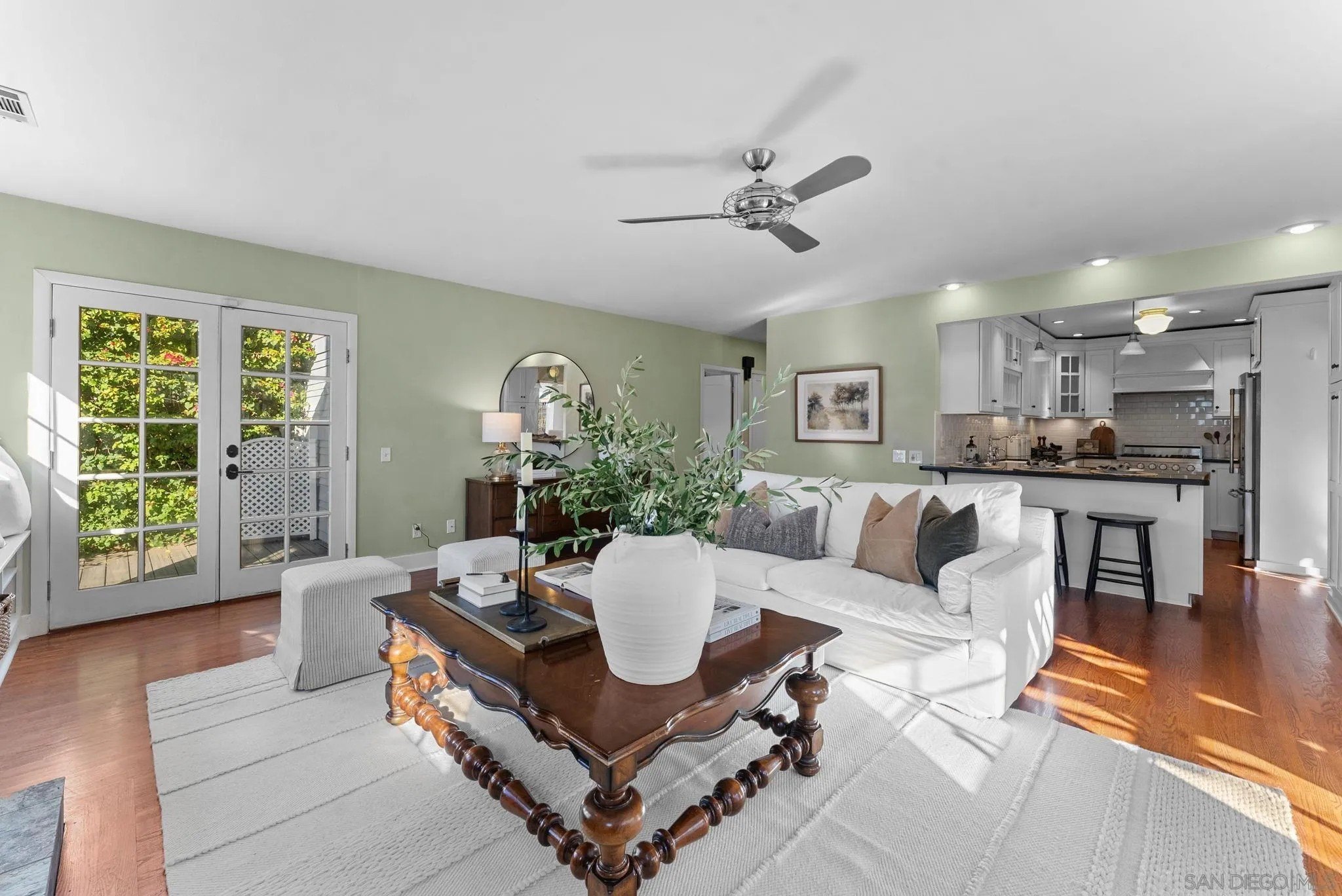 Rich in history and beautifully remodeled, this authentic 1925 Craftsman bungalow is a rare Kensington offering with historic status and an active Mills Act designation, providing substantial property tax savings. Ideally located just a short walk to Kensington Village, the home blends classic architectural charm with the walkable, community-centered lifestyle that makes this neighborhood so special. Original Craftsman character is felt throughout, from hardwood floors and preserved period details to the thoughtful updates that honor the home's architectural heritage. A formal living room welcomes you with a charming fireplace and custom built-ins, creating an inviting space for quiet evenings or intimate gatherings. Beyond, a grand, light-filled family room opens seamlessly to the kitchen, forming the heart of the home and an ideal setting for everyday living and entertaining. The remodeled kitchen features newer cabinetry, a farmhouse sink, generous storage, and a breakfast bar that keeps the space open, functional, and connected. Upstairs, the private primary retreat offers a spacious bedroom with an en-suite bathroom, along with a flexible additional room ideal for a home office, nursery, or optional bedroom-providing peaceful separation from the main living areas. Outdoor living is equally appealing with a lovely private backyard perfect for relaxing or hosting friends, plus a bonus artist studio off the garage, offering excellent flex space for creative work, a home gym, or studio. A timeless Kensington home where history, comfort, and lifestyle come together.
