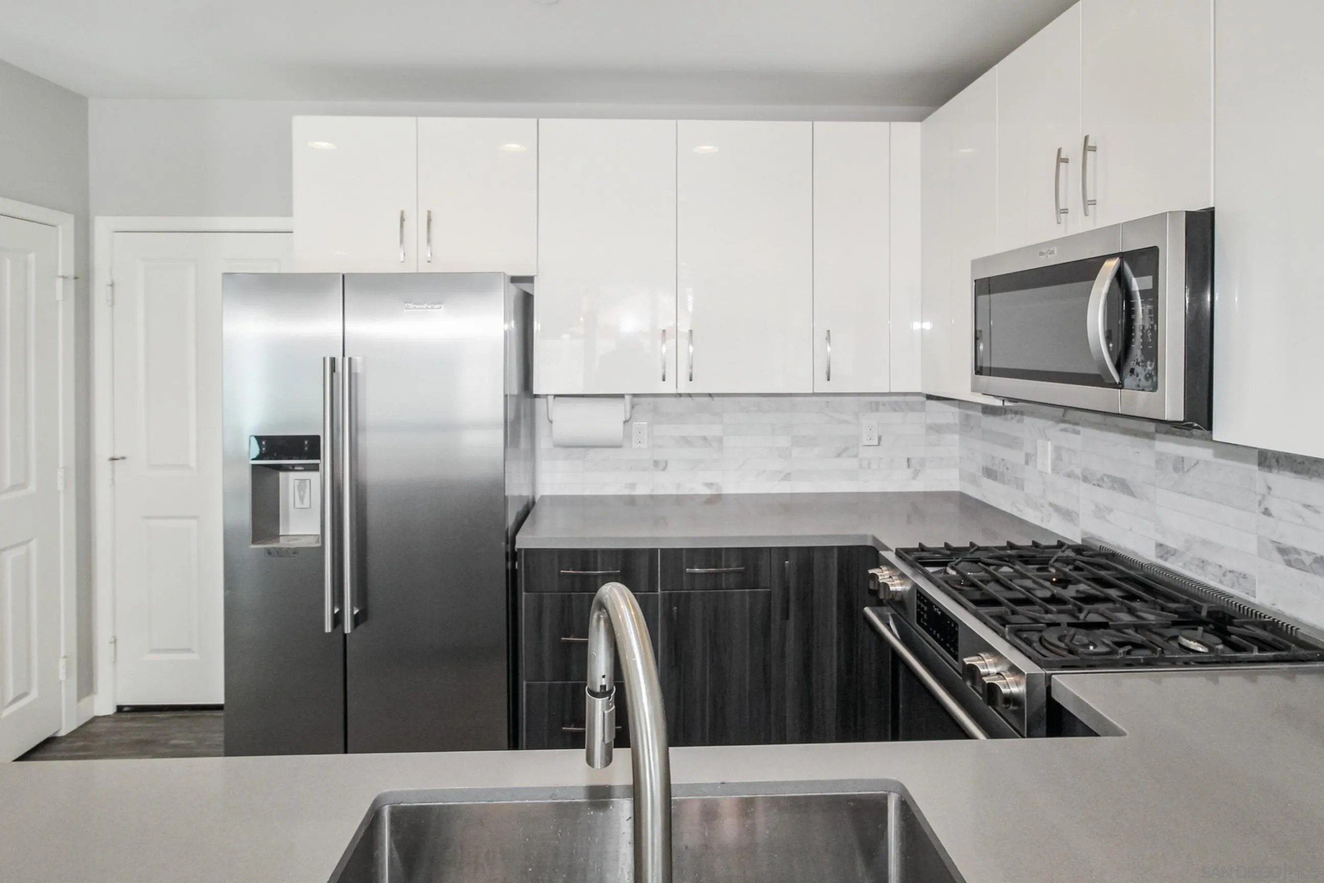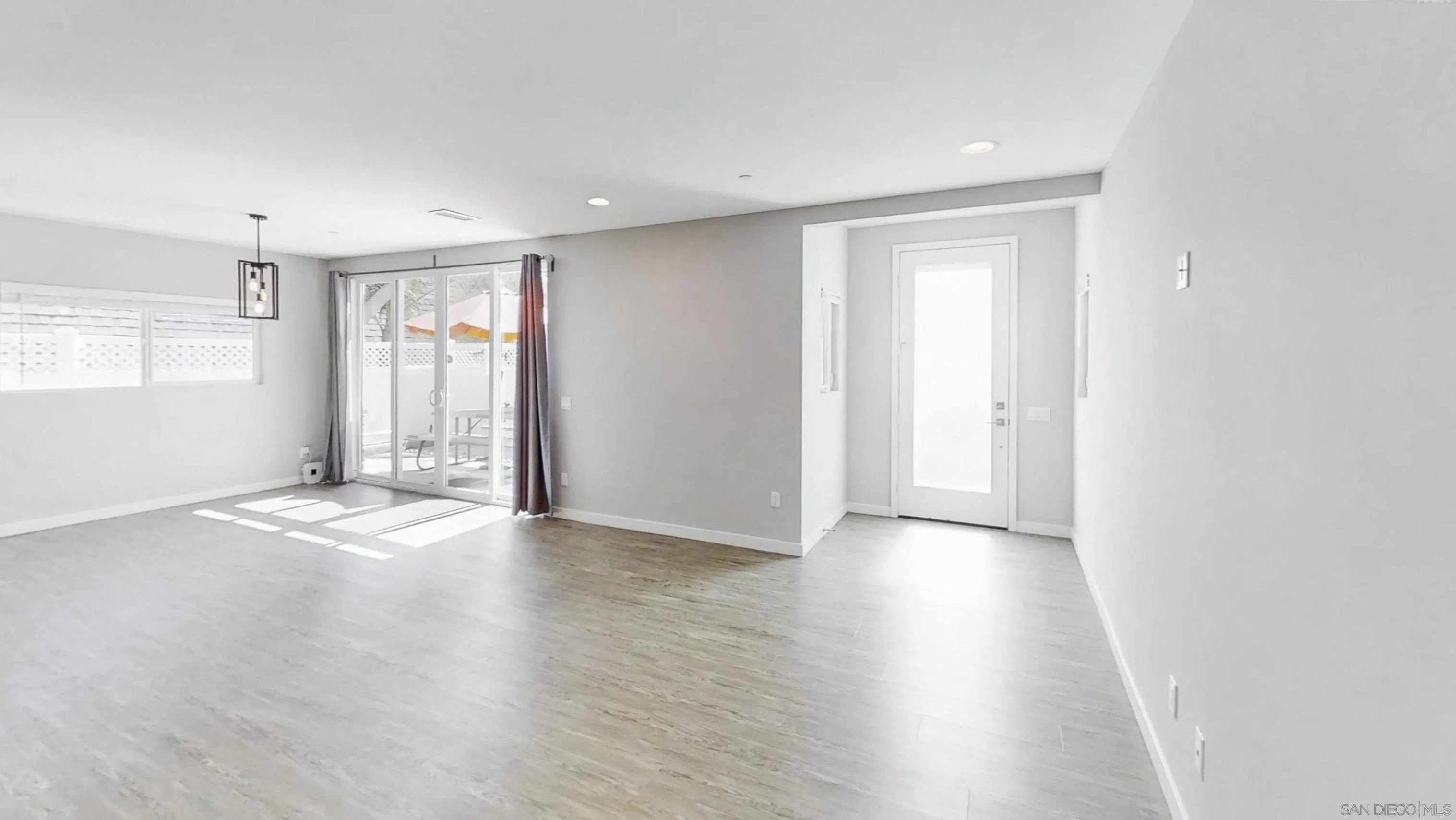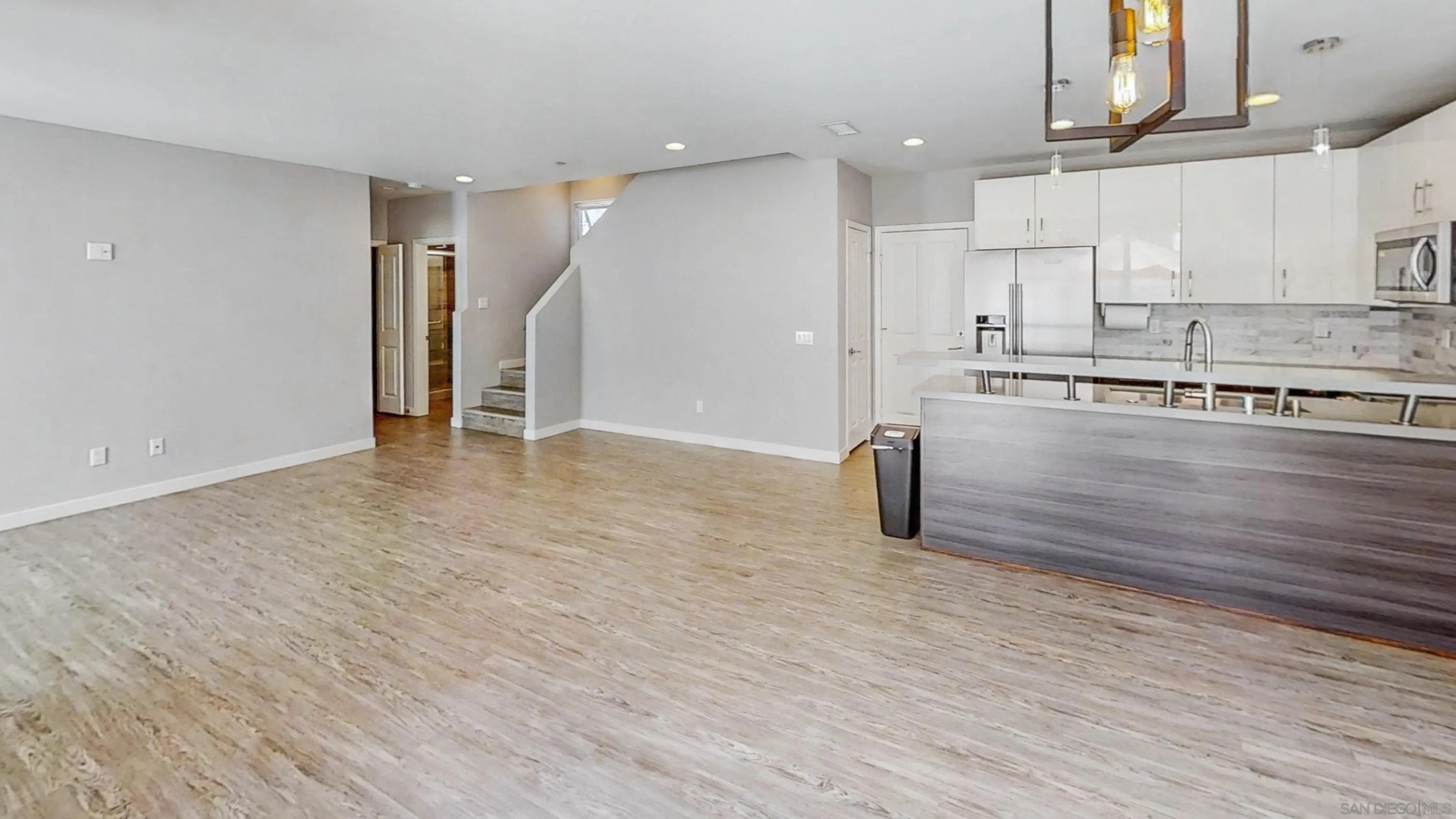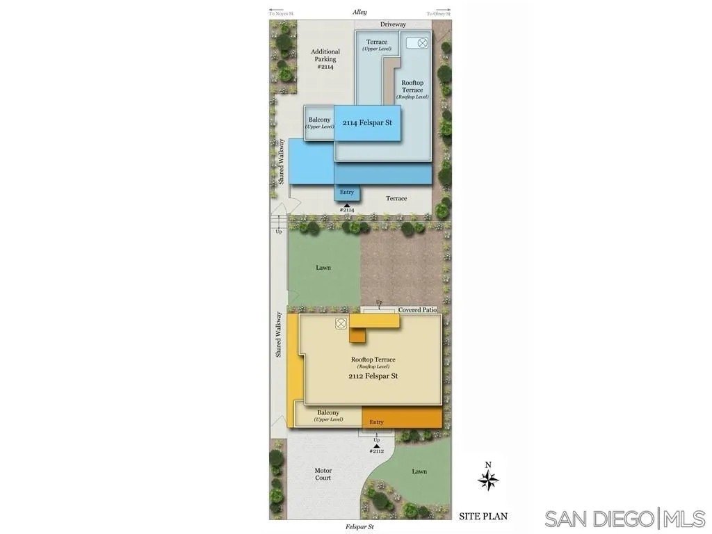Model Home. Like New, The Contemporary Coastal Living in Pacific Beach - 2114 Felspar St, San Diego, CA 92109. Step into the ultimate Pacific Beach lifestyle with this amazing 4-bedroom, 3-bathroom condominium, with 1,800 sq. ft. of modern design elegance. This isn't just a home; it's your gateway to coastal bliss, free from HOA fees and meetings, thanks to a clever condo lot split that creates two independent homes. Arrive through a charming front gate and shared walkway or slip in discreetly via the quiet alley to your two-car garage and additional parking spaces. Inside, an open-concept design welcomes you with a showcase atrium staircase that spans all three levels, bathing the home in golden natural light. The ground floor hums with possibility: a sleek, modern kitchen flows effortlessly into the dining and living areas, perfect for lively gatherings or cozy nights in. A versatile bonus room awaits your vision-transform it into a fourth ground-level bedroom, a chic home office, or a welcoming guest retreat. Ascend to the upper levels, where three thoughtfully designed bedrooms offer comfort and style. The primary suite is your personal sanctuary, complete with a private deck for morning coffee or starlit evenings. But the real showstopper? An expansive rooftop deck and recreational area, serving up panoramic peek views of Mission Bay and the twinkling San Diego skyline. Picture yourself hosting sunset soirees, lounging in the sun, or cheering for Mission Bay summer-long fireworks from this unobstructed perch.