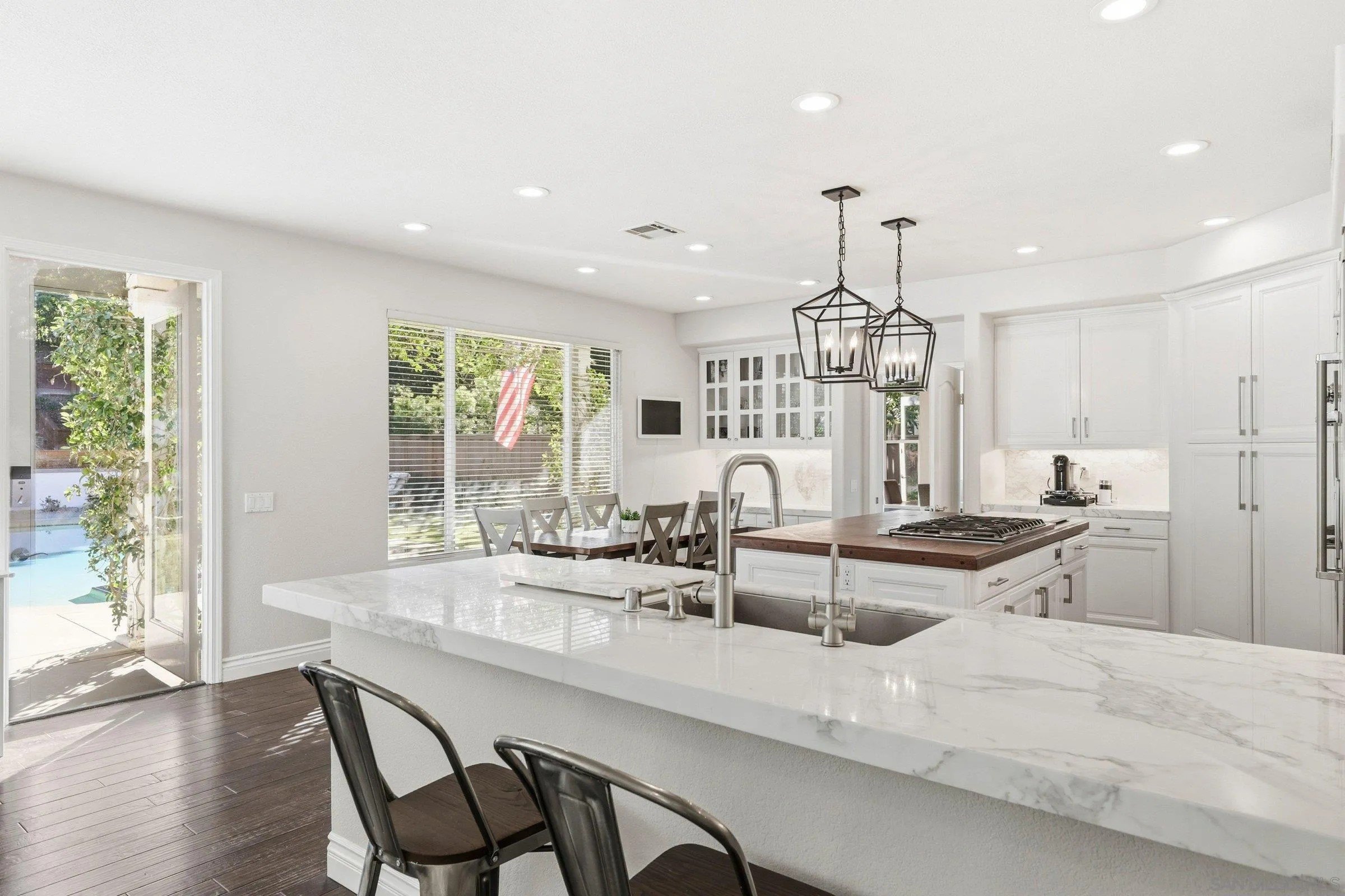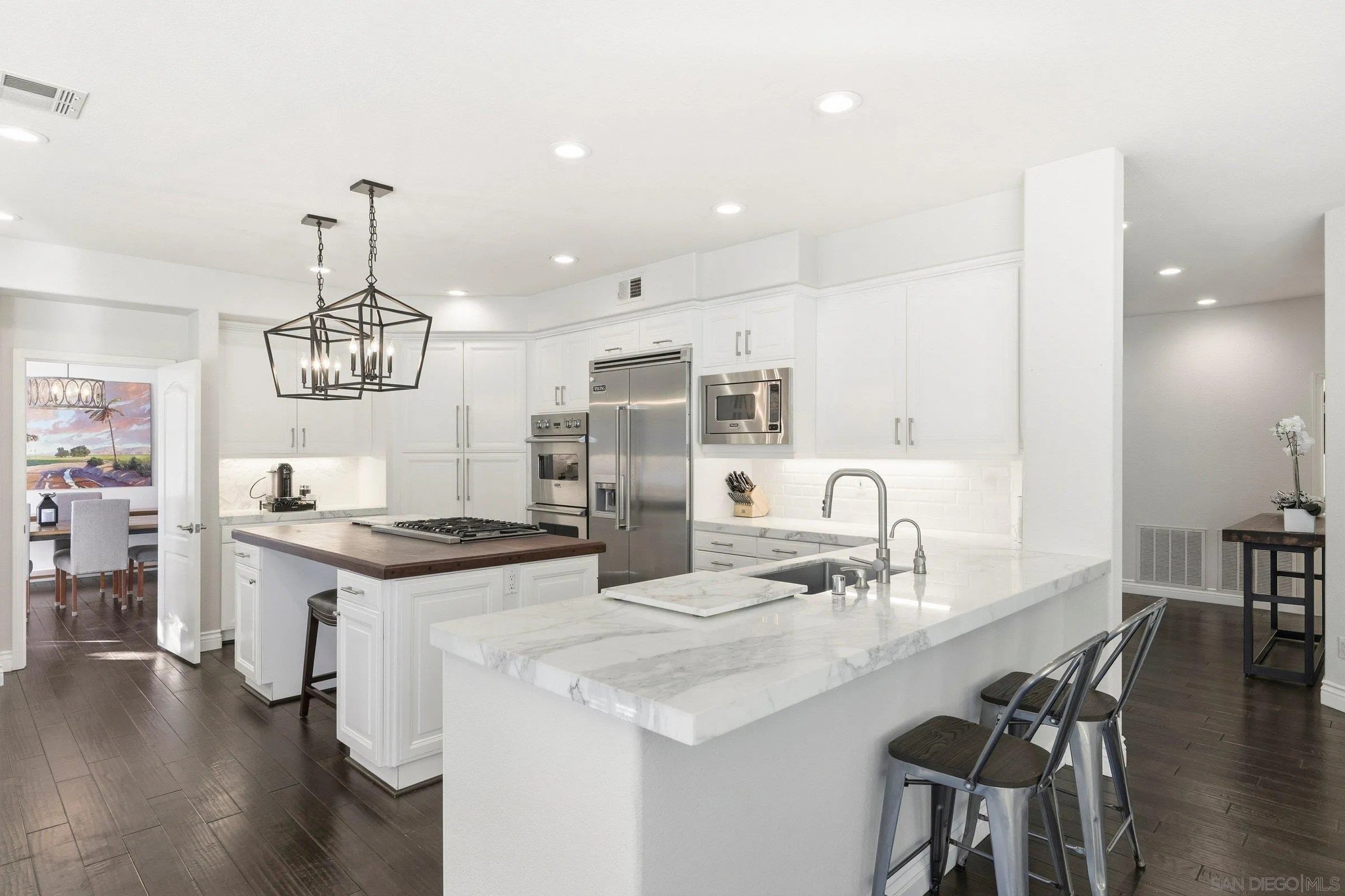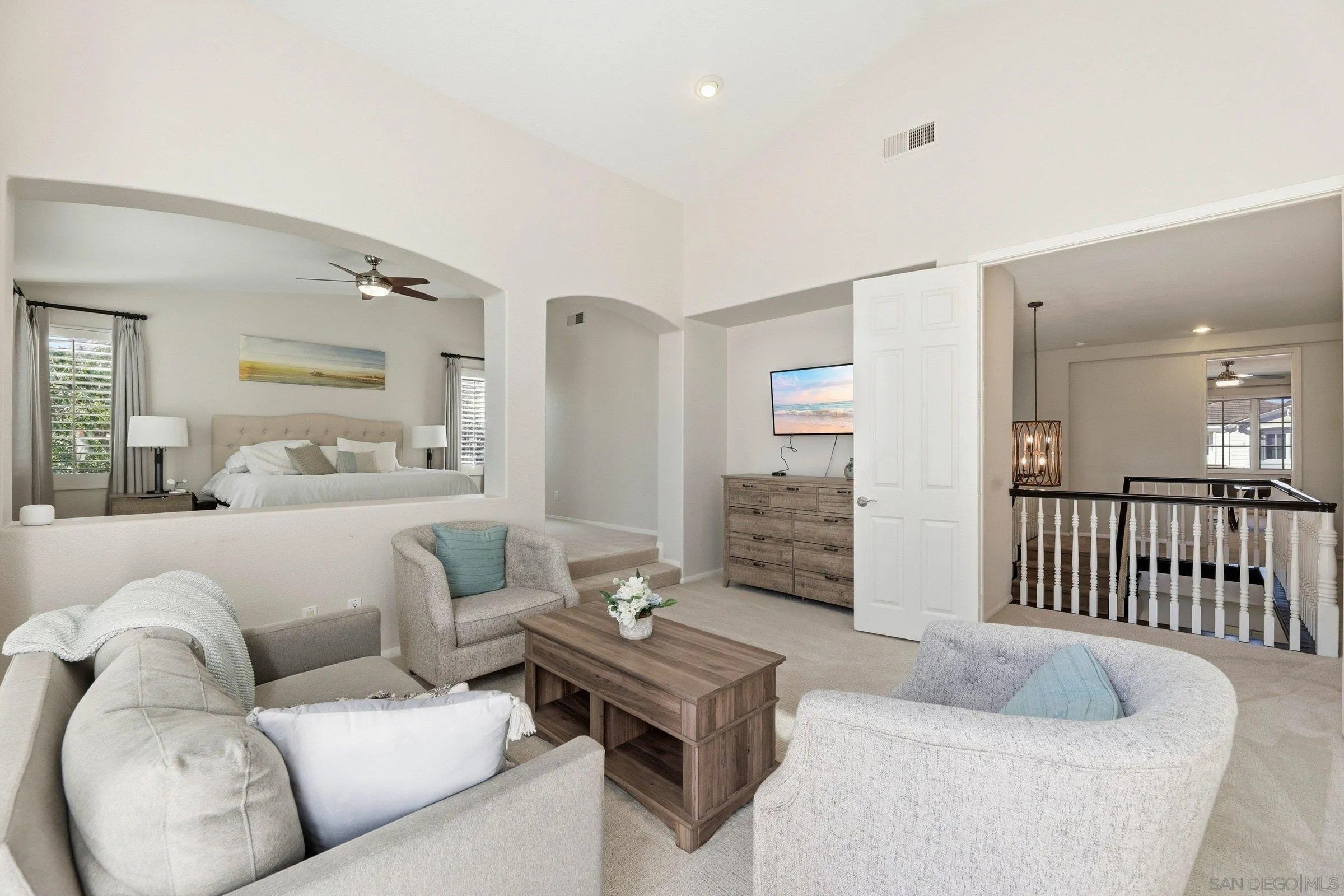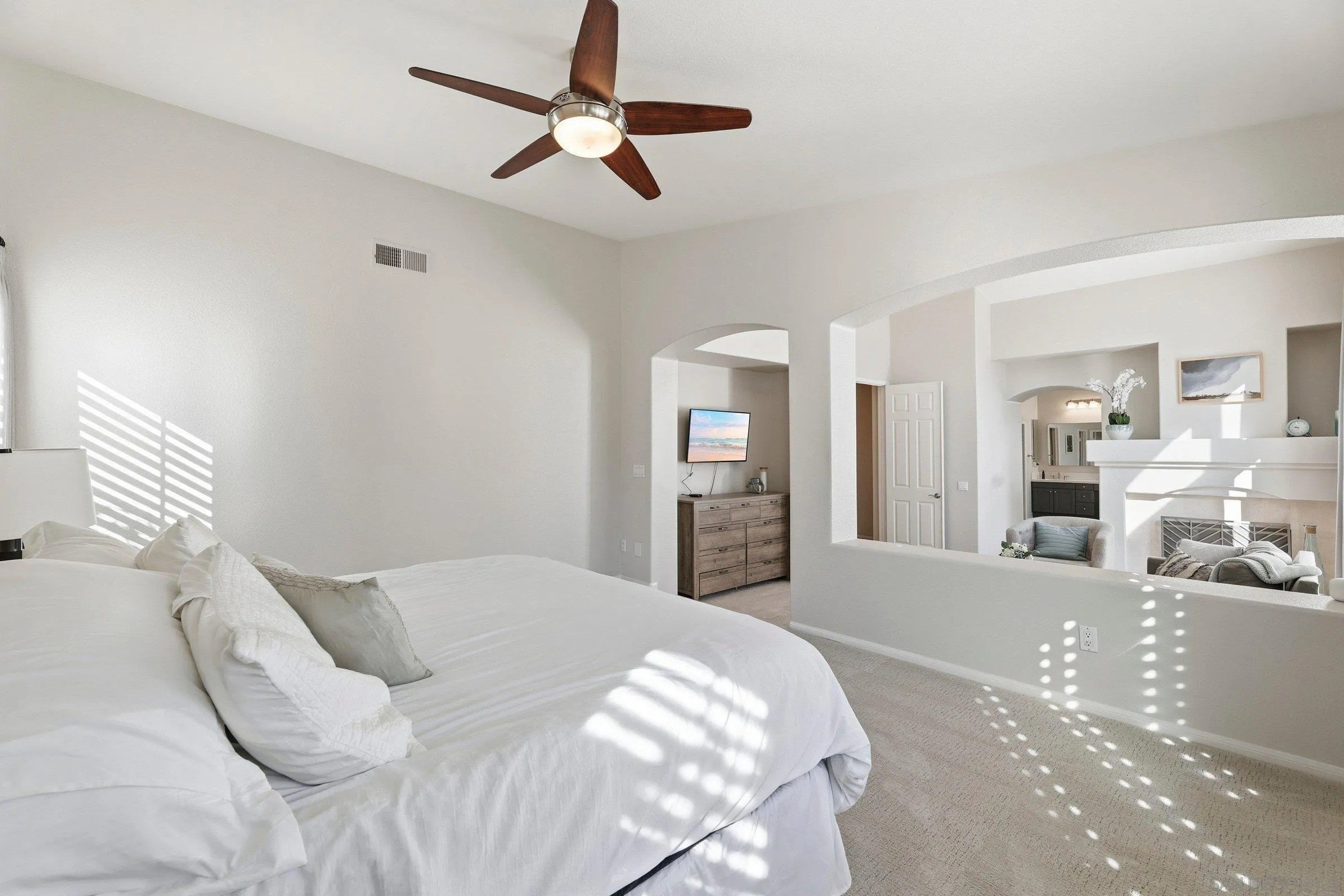 Welcome to 13367 Wyngate Point, a Promontory Plan 4 home on an oversized lot with pool and spa, owned solar, turf landscaping, low HOA, and no Mello-Roos. Features include Viking appliances, Calacatta marble countertops, soft-close cabinetry, cozy fireplaces, and a functional open layout. Entry level offers an en-suite bedroom, office, and half bath. Upstairs includes four additional bedrooms, highlighted by a spacious primary suite with private balcony overlooking the large backyard. Energy-efficient upgrades include oversized owned solar, updated HVAC, and tankless water heaters. Generously sized bedrooms and a private backyard oasis make this home ideal for both entertaining and everyday living.