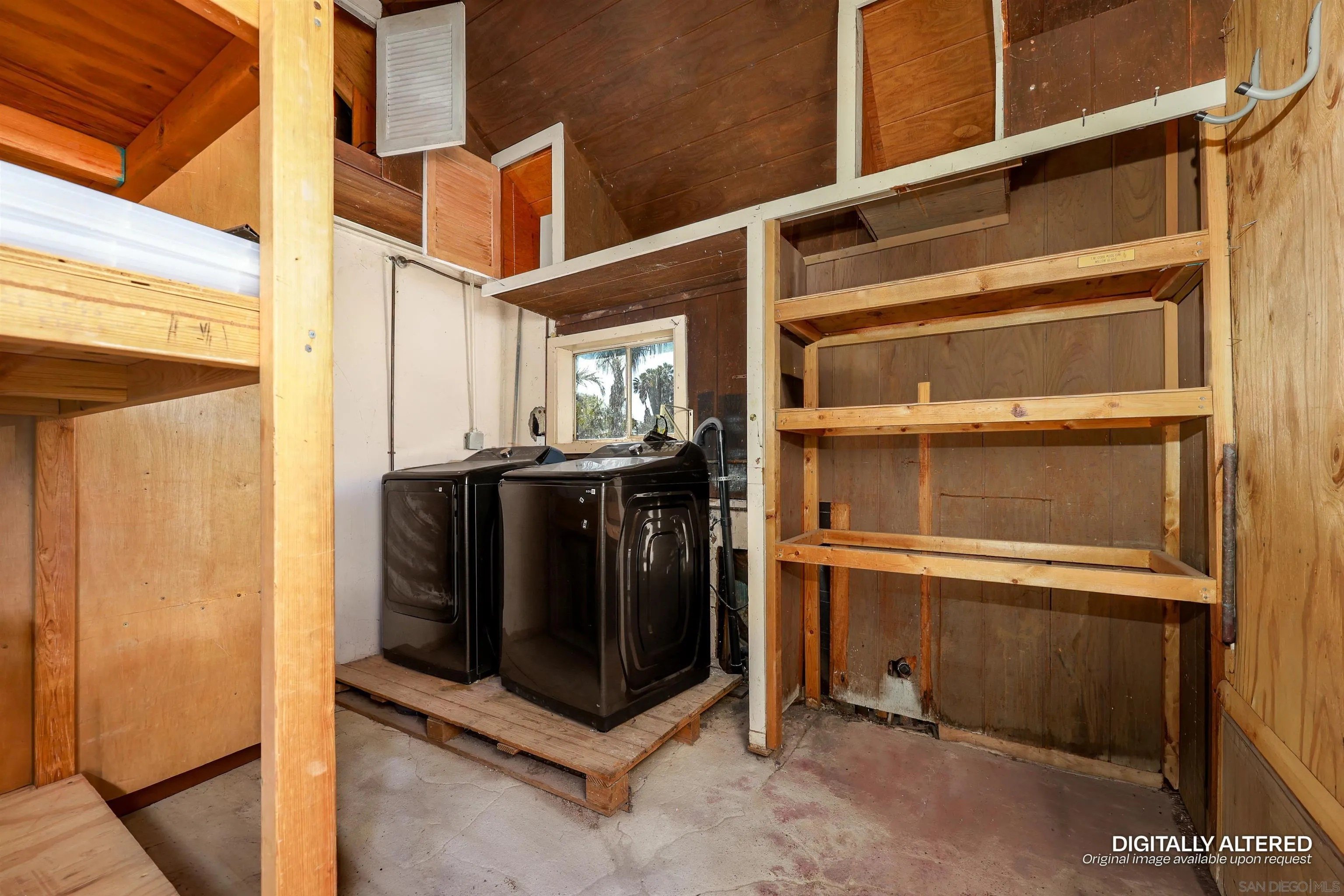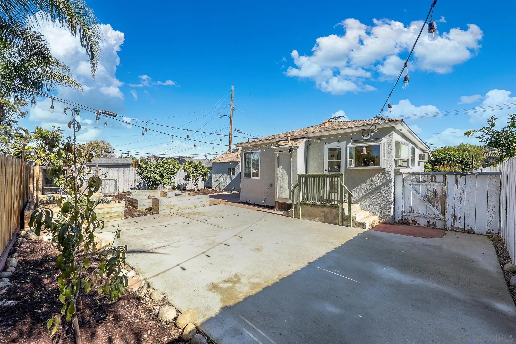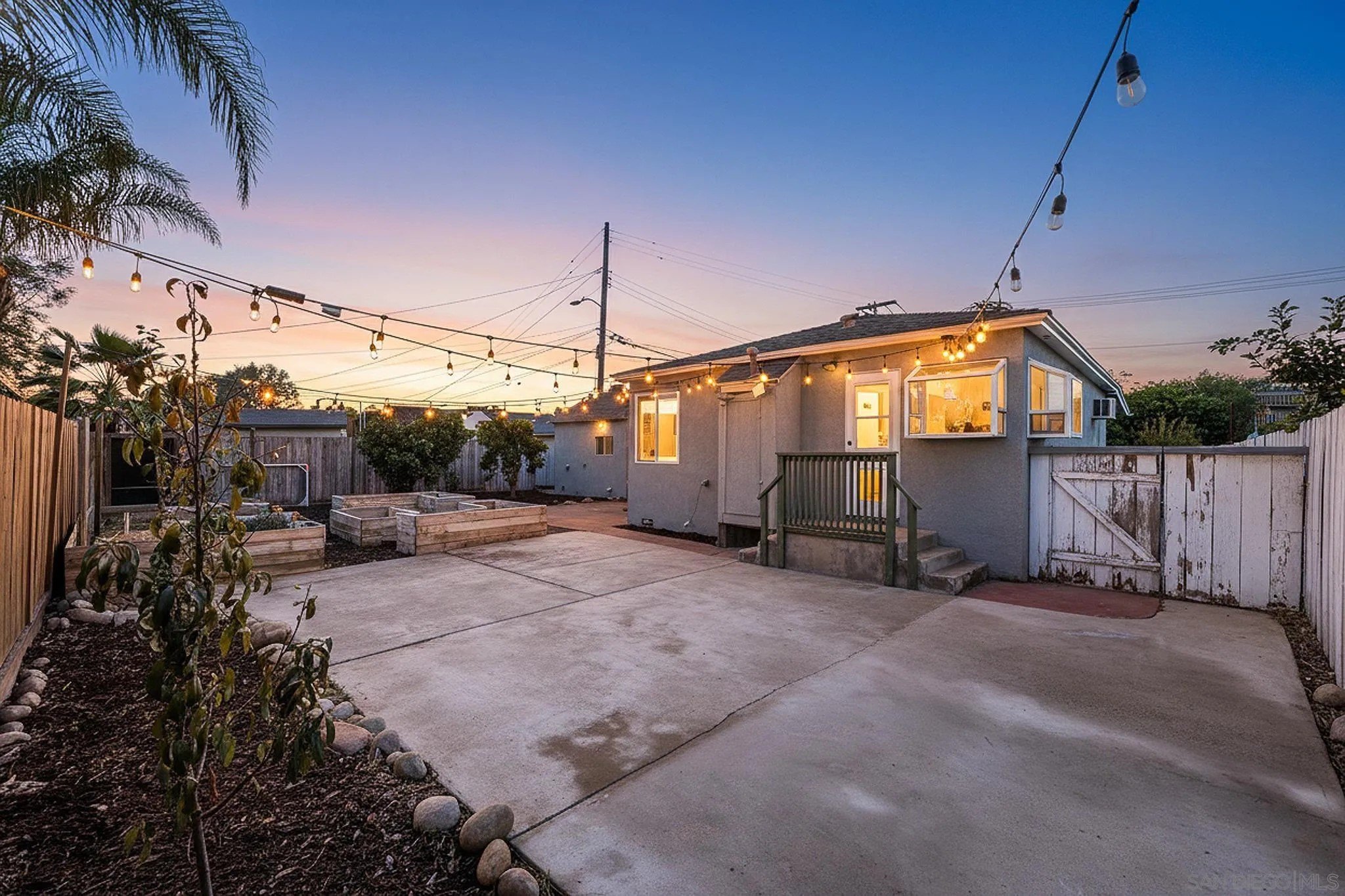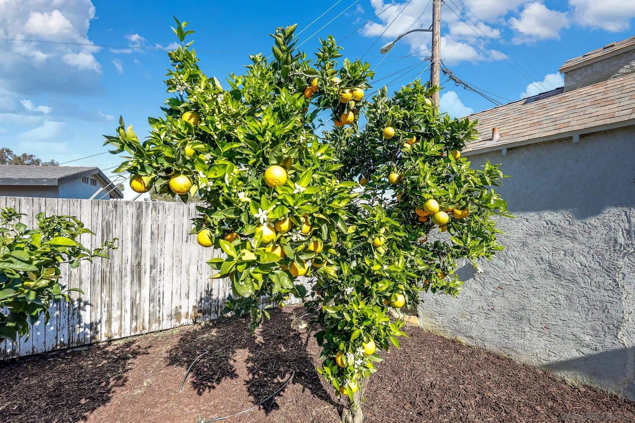 Tucked away at the end of a private road, this serene property offers a rare blend of privacy, space, and peaceful charm. Once the gates close, you're welcomed by hummingbirds and a quiet, retreat with room to spread out and unwind. Set on an expansive 8,712 sq ft lot, the property features 12 fruit trees, including seven citrus varieties-lemon, lime, tangerine, and navel orange-along with pomegranate, fig, loquat, plum, and nectarine trees. A large, secure chicken coop, five raised garden beds, and a generous front yard with RV or trailer clean-out provide excellent opportunities for sustainable living, hobbies, plenty of parking, or future expansion. The backyard is designed for connection and entertaining, with charming string lights that set the mood for relaxed evenings with friends and family. A detached shed with washer and dryer offers abundant storage and added functionality. Inside the home, enjoy thoughtful upgrades including a Bosch dishwasher and an AquaSauna three-stage water filtration system. This 2-bedroom, 1.5-bath home offers a peaceful, countryside feel while remaining conveniently close to city amenities-making it a strong option for affordable San Diego living. With a generous lot size and potential to add an additional ADU, this property provides flexibility and long-term value for buyers seeking space, privacy, and a more intentional lifestyle.