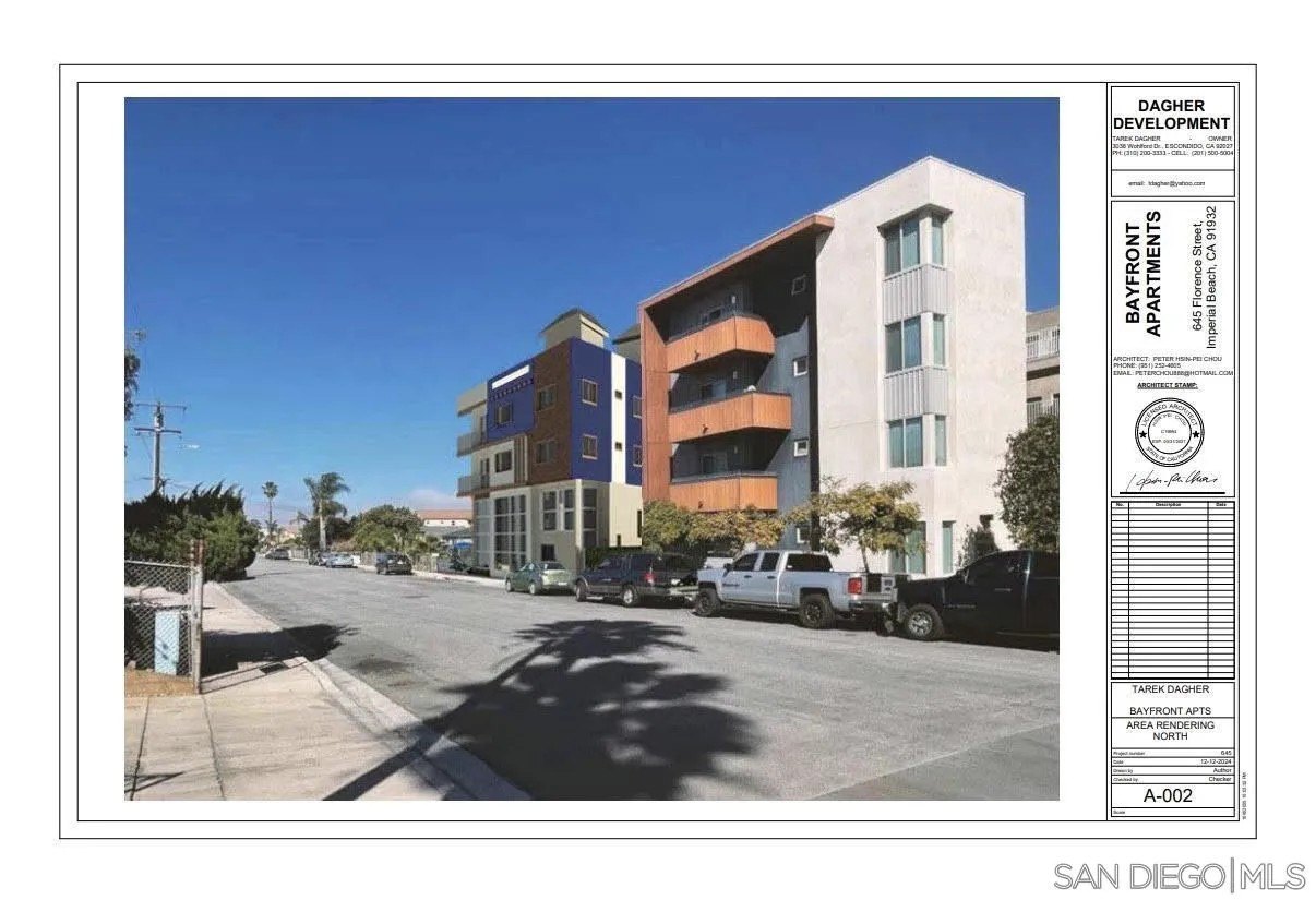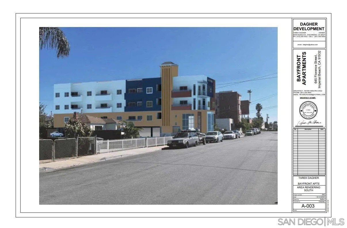 Prime development opportunity! This rare coastal asset is a shovel-ready mixed-use development opportunity with fully approved building and grading plans for a 10-unit apartment building plus 1 ground-floor commercial space in the core of Imperial Beach. The approved design maximizes density and unit efficiency while capitalizing on potential future ocean and Downtown San Diego skyline views. The project is ideally positioned to attract long-term tenants and commercial users due to its proximity to the beach, major employment centers, retail corridors, and regional transit. The unit mix and modern design provide strong rent growth potential and favorable operating efficiencies. With entitlements secured, developers potentially benefit from a shortened construction timeline, reduced entitlement risk, and immediate vertical development potential. This asset offers multiple exit strategies, including long-term hold for stabilized cash flow, refinance upon lease-up, or sale as a newly constructed coastal multifamily investment in a supply-constrained market. This is a turnkey opportunity to develop a premium mixed-use project in one of Southern California's fastest growing coastal communities.
