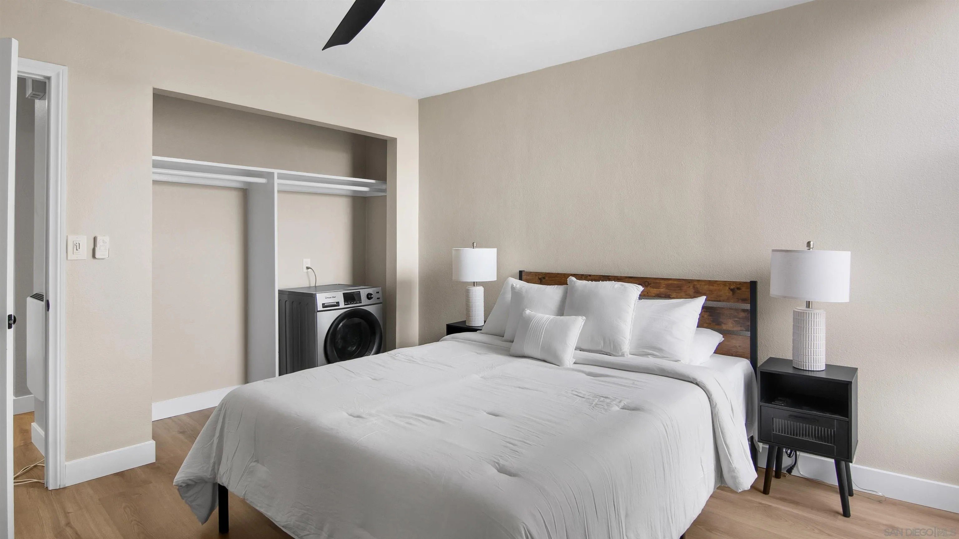 Step into your own slice of paradise in this beautifully updated 1 bedroom/1 bathroom condo, nestled within the lush Pacific Isle community in Point Loma. This fresh and move-in ready unit features stainless steel appliances and an IN-UNIT washer and dryer, with a large shared laundry facility also available. Enjoy resort-style amenities including an oversized heated pool, spa, saunas, fitness center, game/billiard room, lighted tennis court, sand volleyball, clubhouse, serene koi pond, and multiple BBQ areas. Community offers 24-hour security. Condo also includes an assigned parking space conveniently located near the unit, plus additional storage. Prime location just minutes from Downtown San Diego, SeaWorld, Liberty Station, beaches, and a wide variety of shopping, dining, and entertainment options. Ideal opportunity to enjoy a resort-style lifestyle in a highly desirable community.