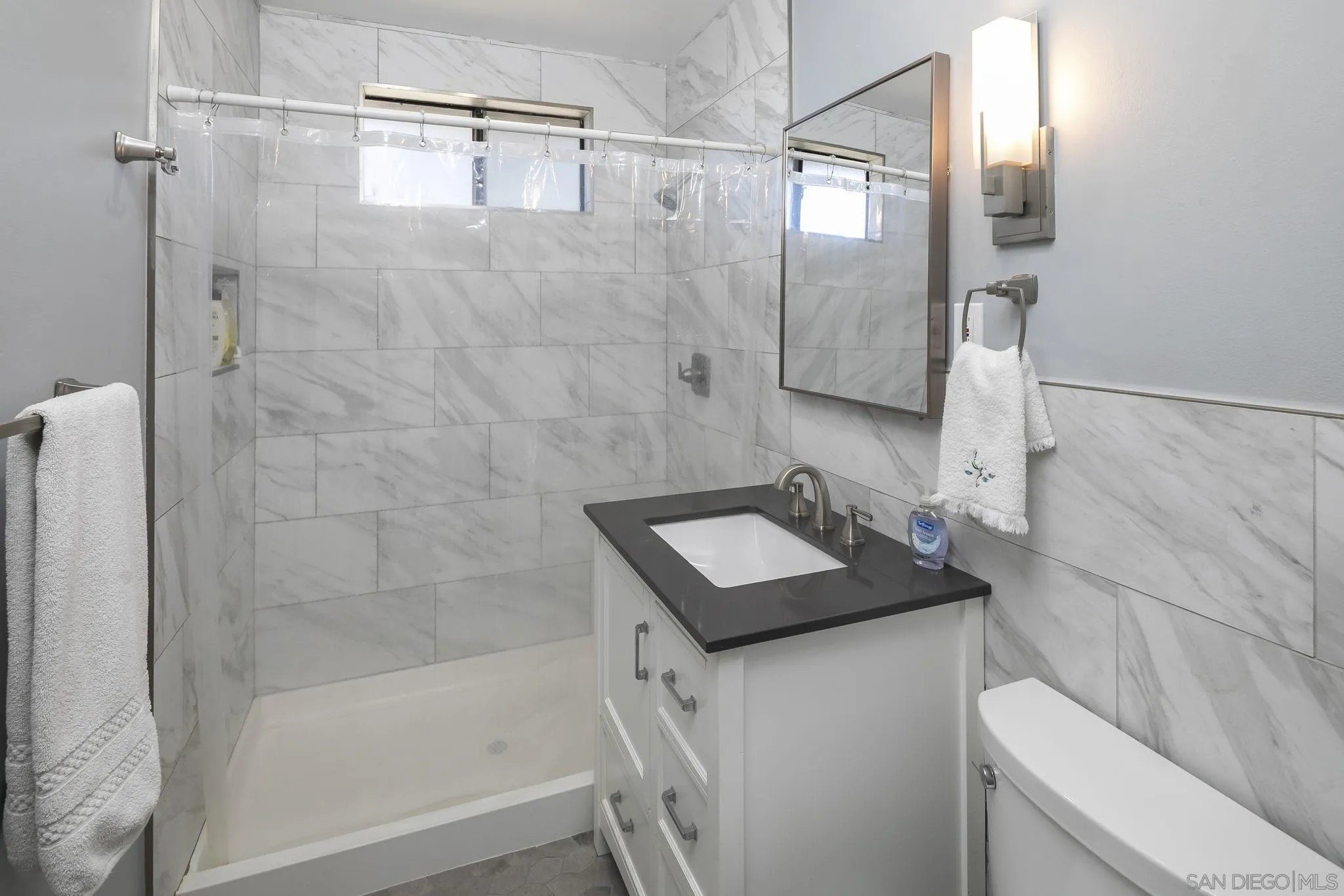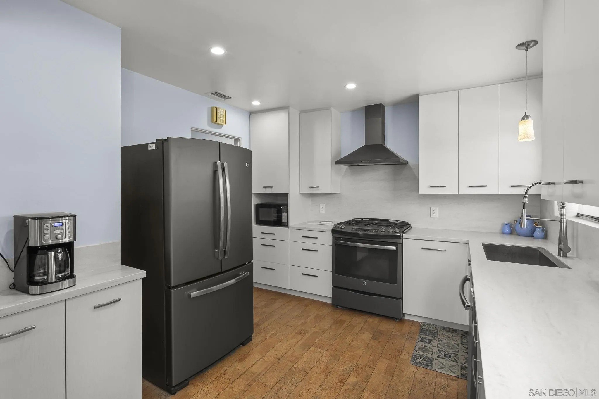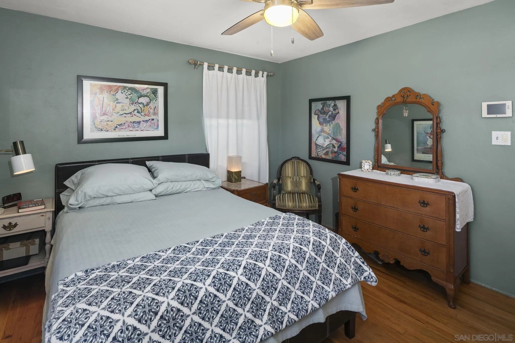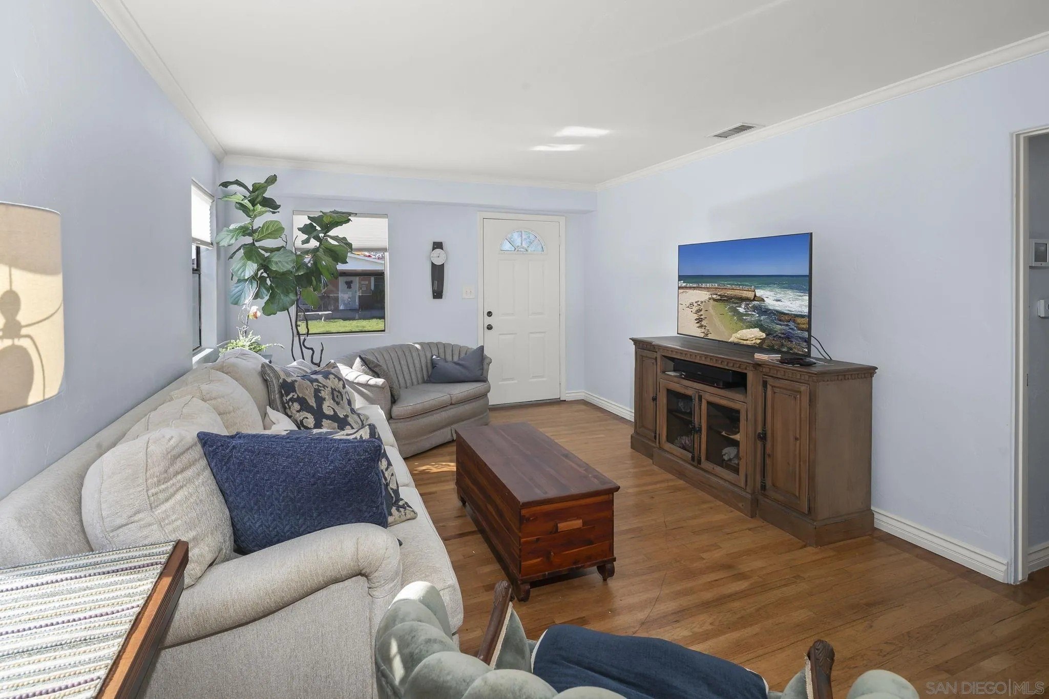 Nestled in the La Mesa neighborhood of Vista La Mesa, this charming 1073 square foot single-family home features 3 bedrooms and a beautifully remodeled bath. The remodeled kitchen shines with neutral corian like counters & backsplash along with stainless steel appliances, a gas range, recessed lighting and cork flooring. It's a great setting for culinary creativity. Enjoy the warmth of hardwood floors and the convenience of central heating and air conditioning. The property's exterior is equally impressive with easy care turf front yard and a spacious turf far backyard perfect for play. Backyard includes a storage shed complete with electrical and AC, a rose garden and a beautiful climbing rose on one fence. The "middle yard" features a shade tree (great for relaxing), patio and a detached studio which is also equipped with lighting and AC. The studio has functional windows and a fireplace along with a wall ac unit. Seller has used this as a work space. The home's two-car detached garage and long driveway ensure ample parking, while the upgraded 200-amp electrical system meets modern demands effortlessly. This home is a practical choice for those seeking both tranquility and accessibility.