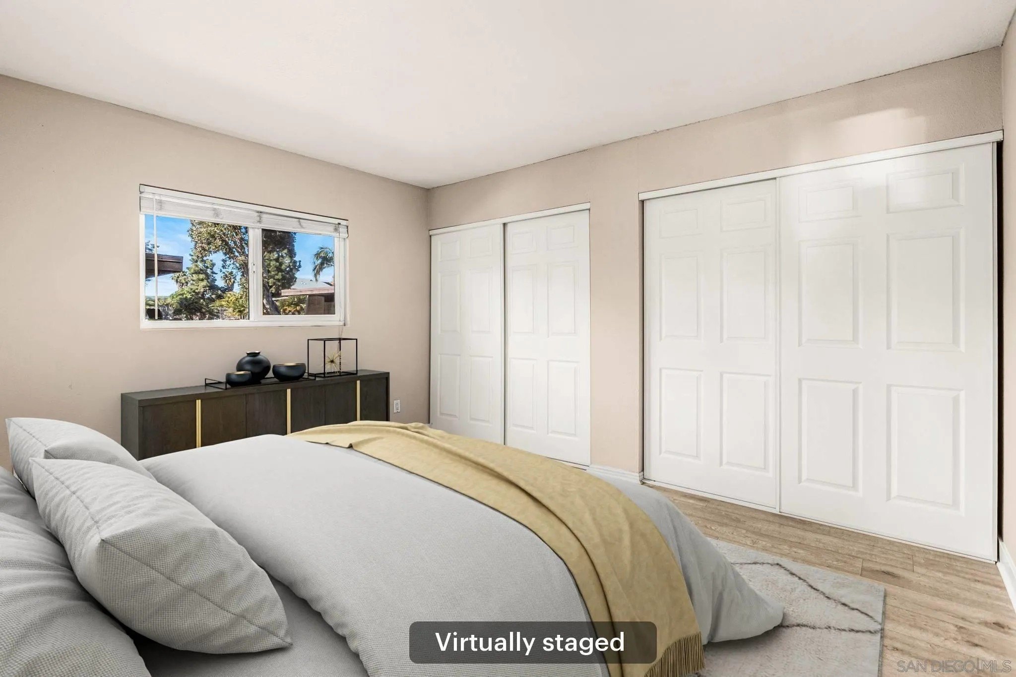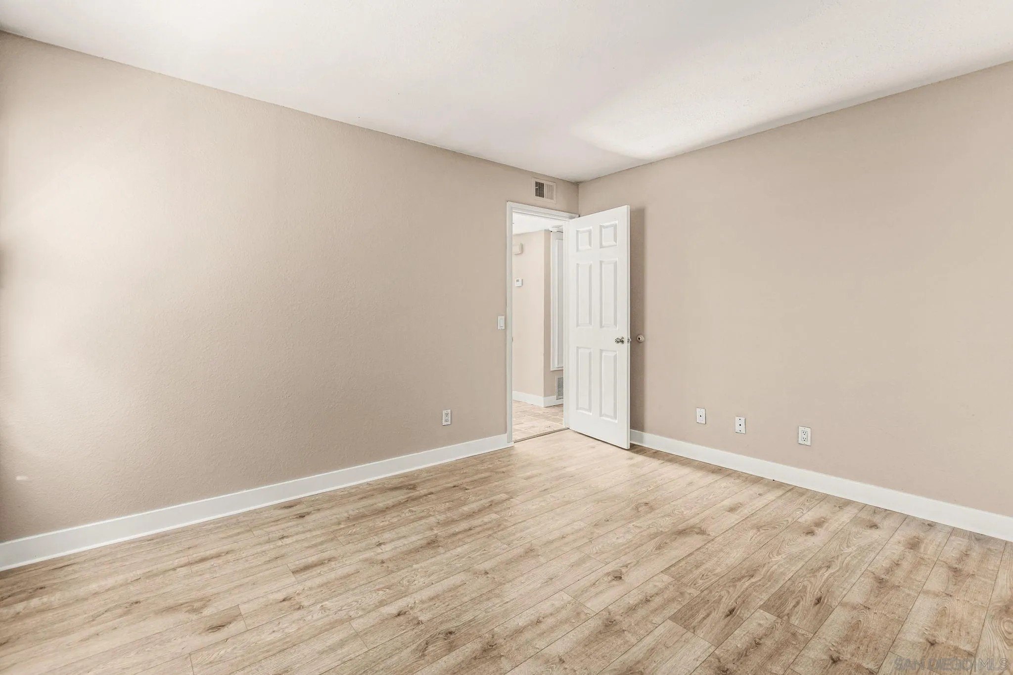 Lakeshore Villas is ideally located adjacent to Oceanside's Libby Lake Park, offering walking trails, a playground, and expansive green spaces just steps away. Tucked at the end of a quiet cul-de-sac, this desirable community features a resort-style swimming pool and spa. The residence showcases an updated kitchen with new cabinetry and countertops, along with a refreshed bathroom featuring a new vanity. Tile flooring spans the living areas and kitchen, while stylish wood-look vinyl plank flooring enhances both bedrooms. Enjoy a covered patio with a full-size washer and dryer closet, plus a covered parking space conveniently located next to the unit.