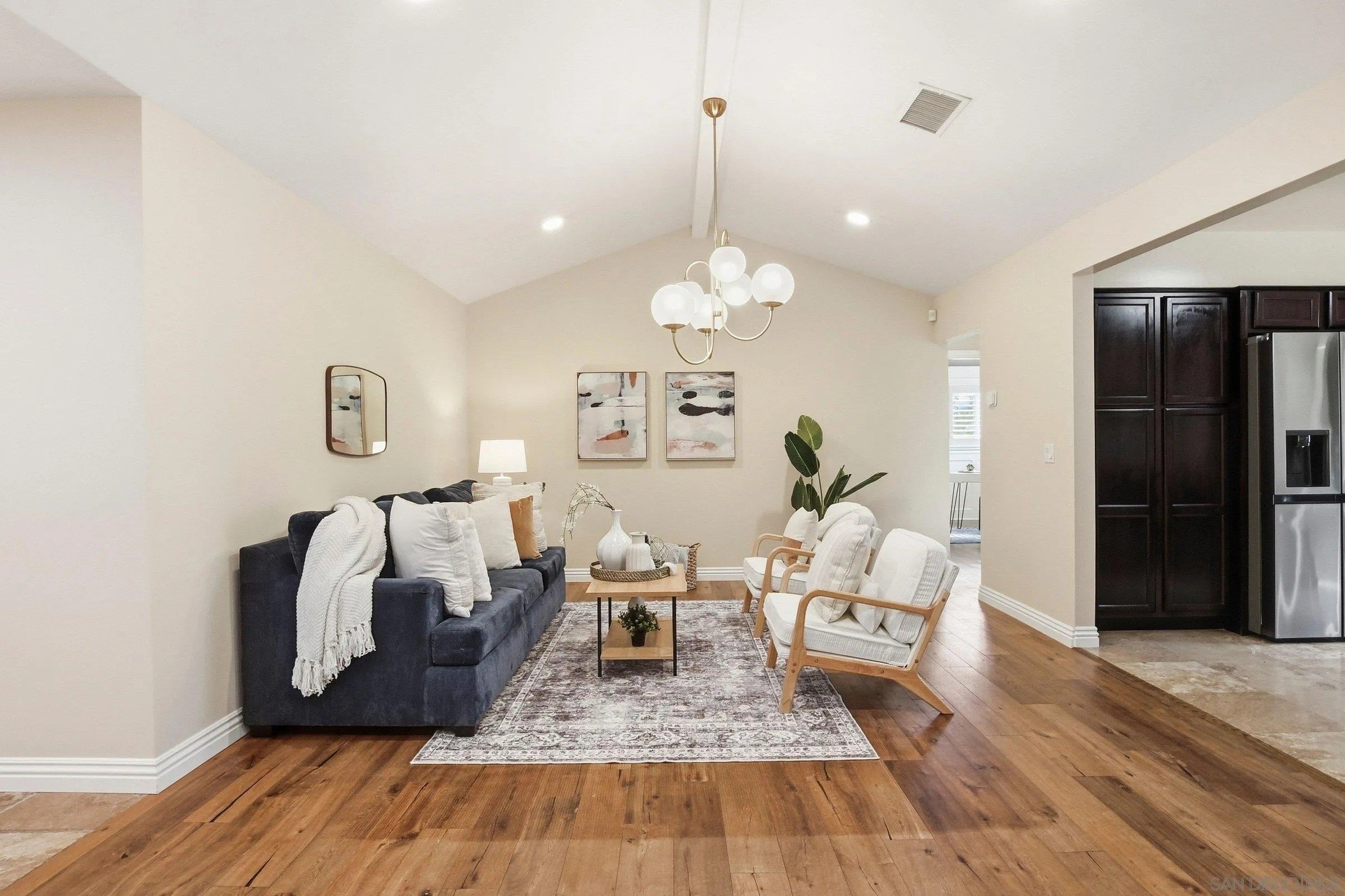A thoughtfully designed 4-bedroom, 2.5-bath home in Mount Helix that balances comfort, flexibility, and indoor-outdoor living. Inside, the split-bedroom layout creates natural separation-ideal for a home office, playroom, or long-term guests without sacrificing privacy. The kitchen opens to an oversized dining space built for real gatherings, not just everyday meals. The living room centers around a fireplace that makes the space feel grounded and inviting. All bedrooms are generously sized, and the primary suite delivers with a substantial walk-in closet and room to truly spread out. Step outside and the property shifts into retreat mode: a flat grassy yard, expansive covered deck, pergola lounge area, and potential outdoor kitchen setup already wired for additional electrical-ready for whatever upgrades you envision. Fruit trees line the side yard, adding character and function. In a location that consistently holds long-term value, this Mount Helix home offers space to live now and flexibility to grow into. Fully paid off solar, new kitchen appliances, a whole house water softener system, and much more complete this home. A rare opportunity to own a private hillside escape in one of San Diego's most desirable communities.