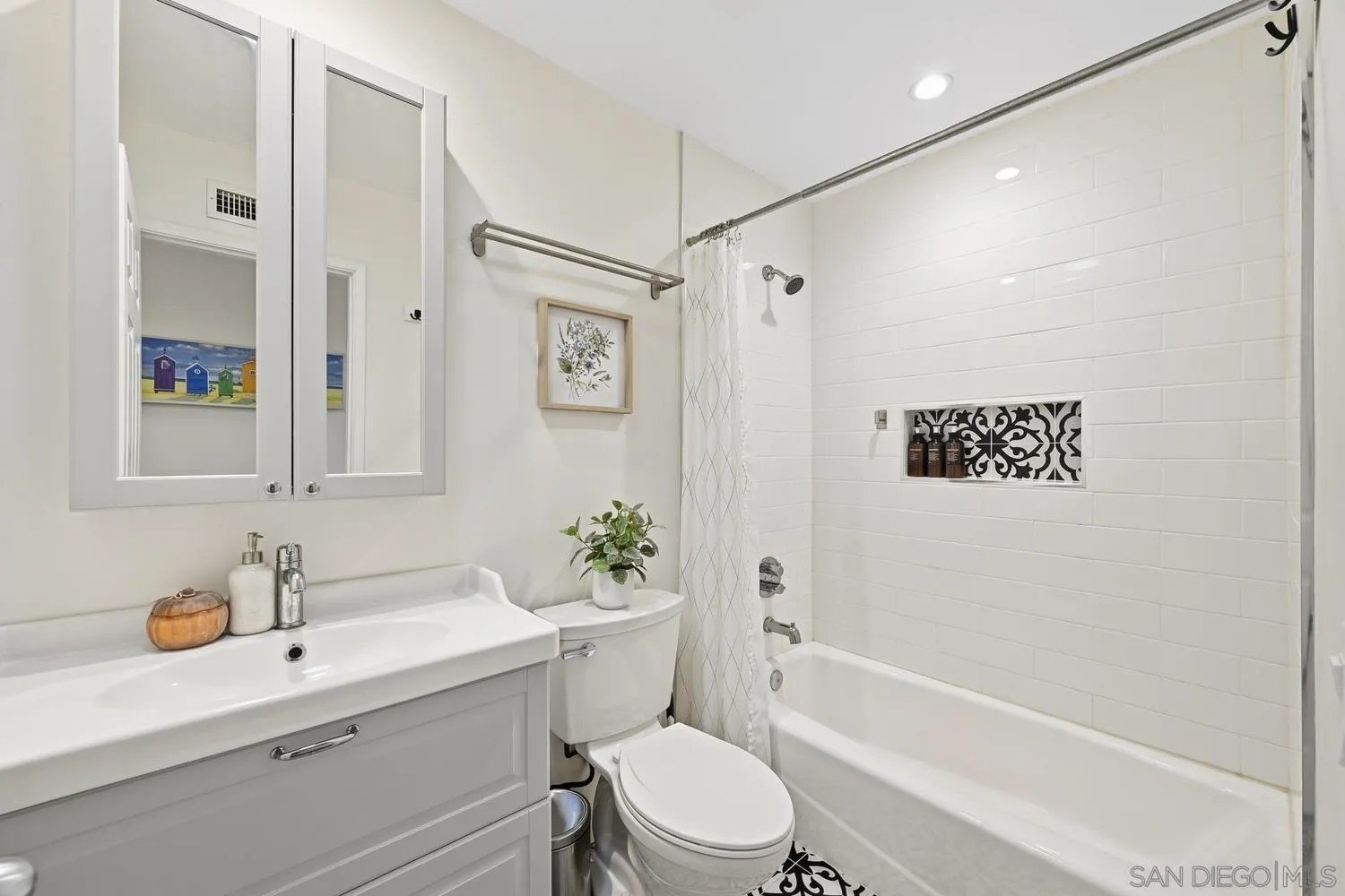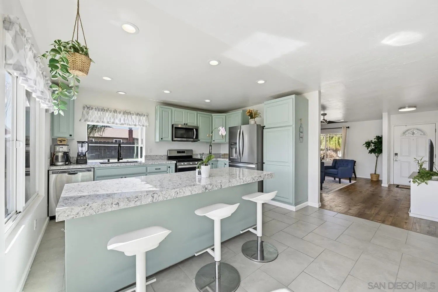Set on an elevated corner lot in one of San Marcos' most established neighborhoods, this beautifully updated single-story residence combines privacy, space, and everyday comfort. The expansive 0.21-acre lot captures cooling coastal breezes and glowing sunset skies, while offering the rare convenience of RV parking and an easy-care exterior with standout curb appeal. Inside, the home is filled with natural light and an open, welcoming atmosphere. The living area is bright and spacious, framed by oversized windows and recessed lighting that create a relaxed yet polished feel. At the heart of the home, the remodeled kitchen impresses with quartz countertops, refinished cabinetry, stainless steel appliances, and an oversized island that anchors both casual meals and larger gatherings. A generous dining area provides the perfect setting for hosting and everyday living alike. Step outside to a remarkably private backyard designed for entertaining or unwinding at the end of the day-whether you're hosting friends or enjoying a quiet sunset moment. Thoughtful upgrades include newer flooring throughout, a 220-amp electrical panel, updated bathrooms, solar tubes that enhance natural light, and solar for energy efficiency. Ideally located near award-winning schools and just moments from Woodland Park, residents can enjoy playgrounds, shaded picnic areas, scenic ponds, and the nearby community pool featuring a slide, diving board, lessons, and family swim events.