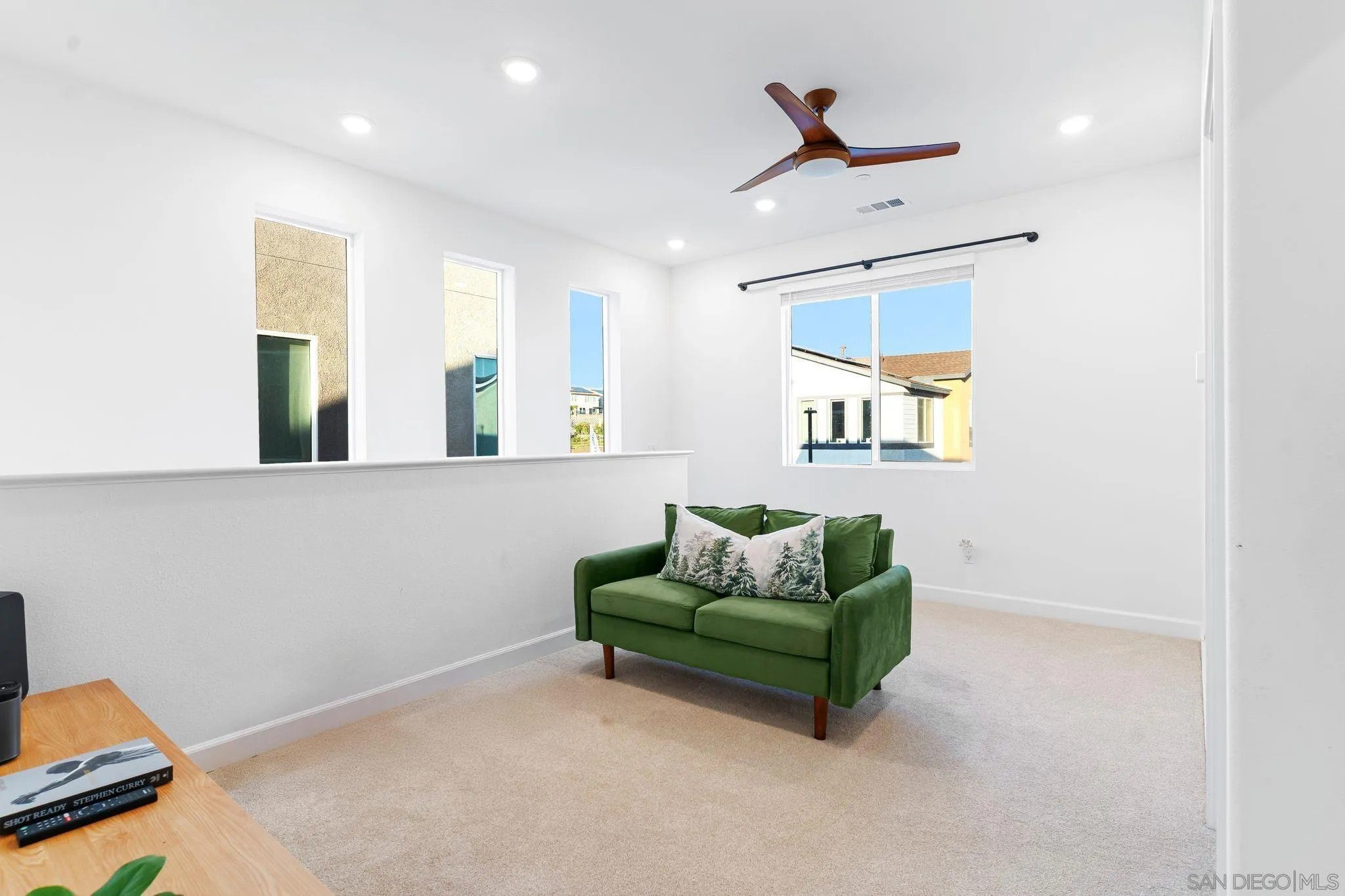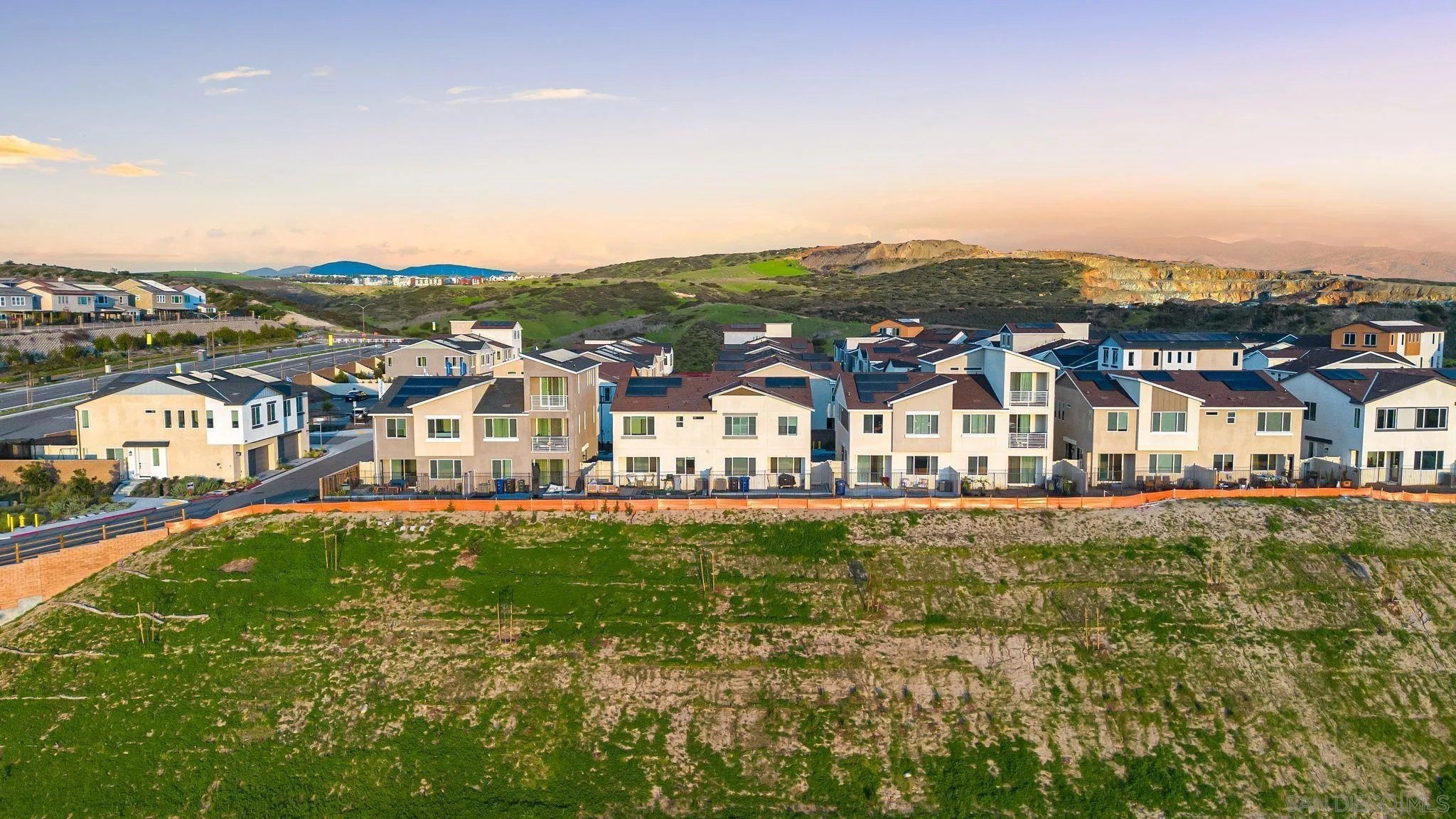Welcome to one of the most sought-after homes in Anden @ Escaya, where the right location meets intentional upgrades. This west-facing 3 bedroom, 2.5 bath townhome sits on one of the community's premier lots, offering open views, added privacy, and a setting that truly stands apart. The interior is bright, modern, and ready to live in, with a smart layout, clean finishes, and an owned solar system with battery designed to keep energy costs low. Outside, the upgraded patio creates an easy extension of your living space, ideal for sunset dinners, laid-back weekends, or winding down at the end of the day. Upstairs, the loft offers flexible space for a lounge, home office, or second living area. The primary suite is a standout, with a large west-facing window that frames nightly sunsets as the focal point. With construction phases behind you, this home offers immediate move-in and a more established feel. As future phases are completed, the location will become even more insulated, adding to the sense of calm and privacy. Escaya delivers a walkable, community-focused lifestyle with parks, schools, local dining, and a resort-style pool and wellness center just steps away. If you want new construction quality in the best location available, this is the one to see.