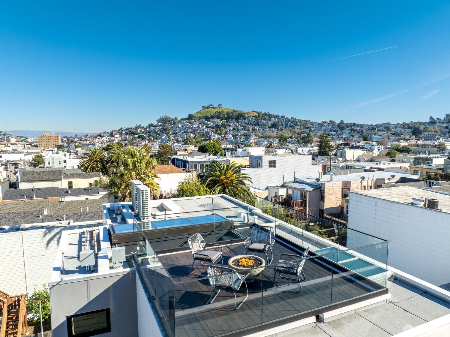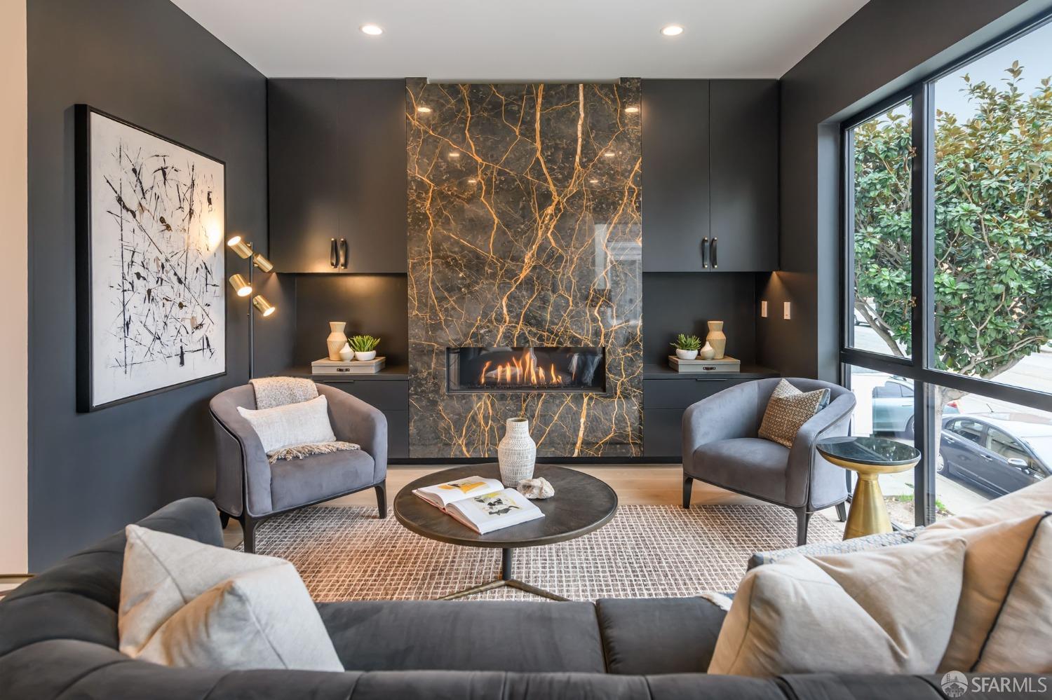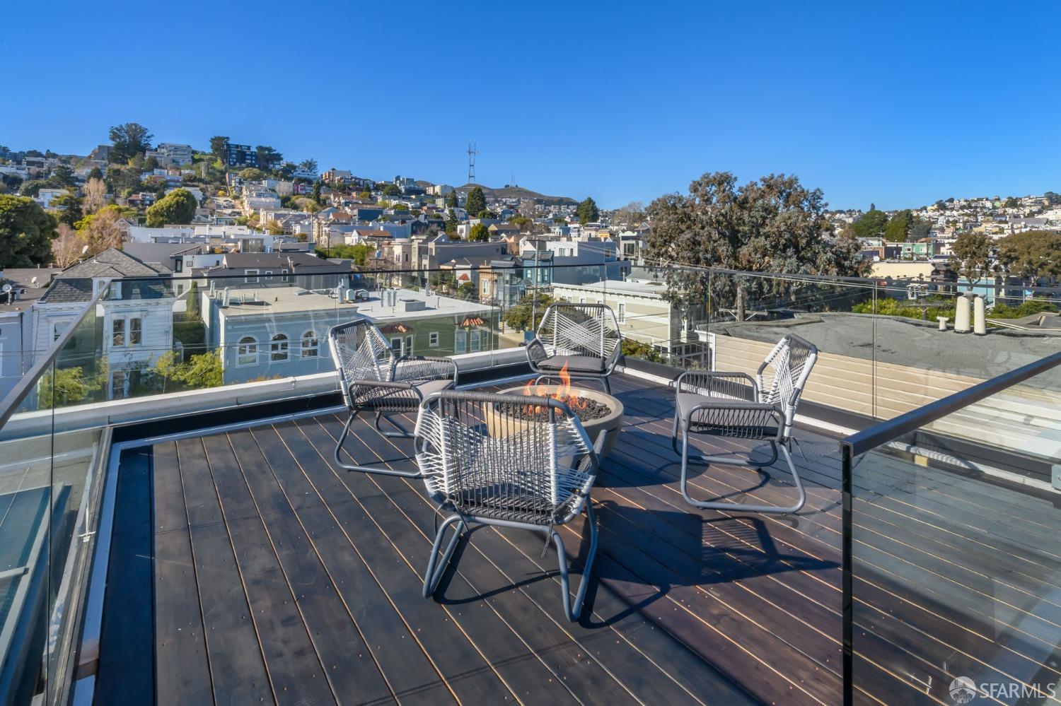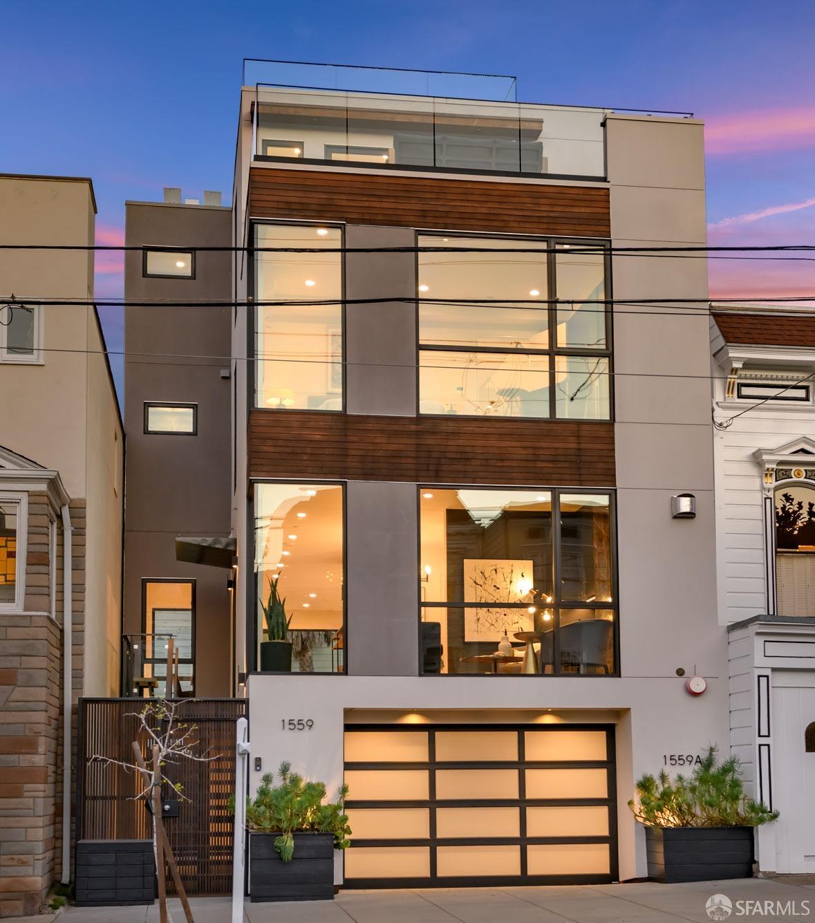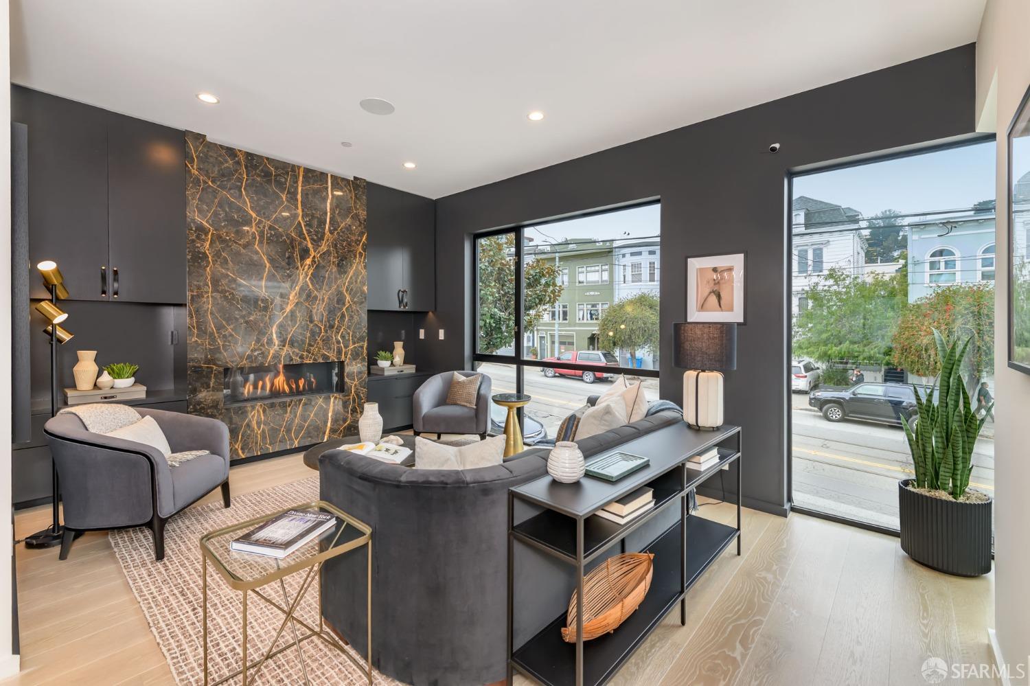 Stunning contemporary property in the heart of Noe Valley! Highlighting architecturally bold design, this gorgeous property offers 4 levels of spacious living, featuring 5 beds and 4.5 baths. Flanked by floor to ceiling windows on two sides, the main level begins with an inviting foyer with powder room and flows seamlessly into the exquisite living room with a striking marble fireplace. This level continues with an exceptionally stylish kitchen boasting sleek, modern cabinets and chef quality appliances, a spacious dining area and a family room with direct access to a large outdoor patio. The 2 upper levels enjoy a large primary suite featuring a magazine worthy primary bath, plus 3 spacious bedrooms, 2 equally bold and stylish baths, and a spectacular top floor family room with a full wet bar and access to yet another generous outdoor patio and an amazing roof-top deck with a gas fire pit. The lower level features a spacious legal one bedroom in-law apartment with a modern kitchen, bath and laundry, and direct access to the large, level backyard with a tall palm tree and a fire feature. A 2 car garage completes this level. All of this, plus multi-zone A/C, radiant heat, full building water filtration, built-in speakers and easy access the best of Noe Valley!