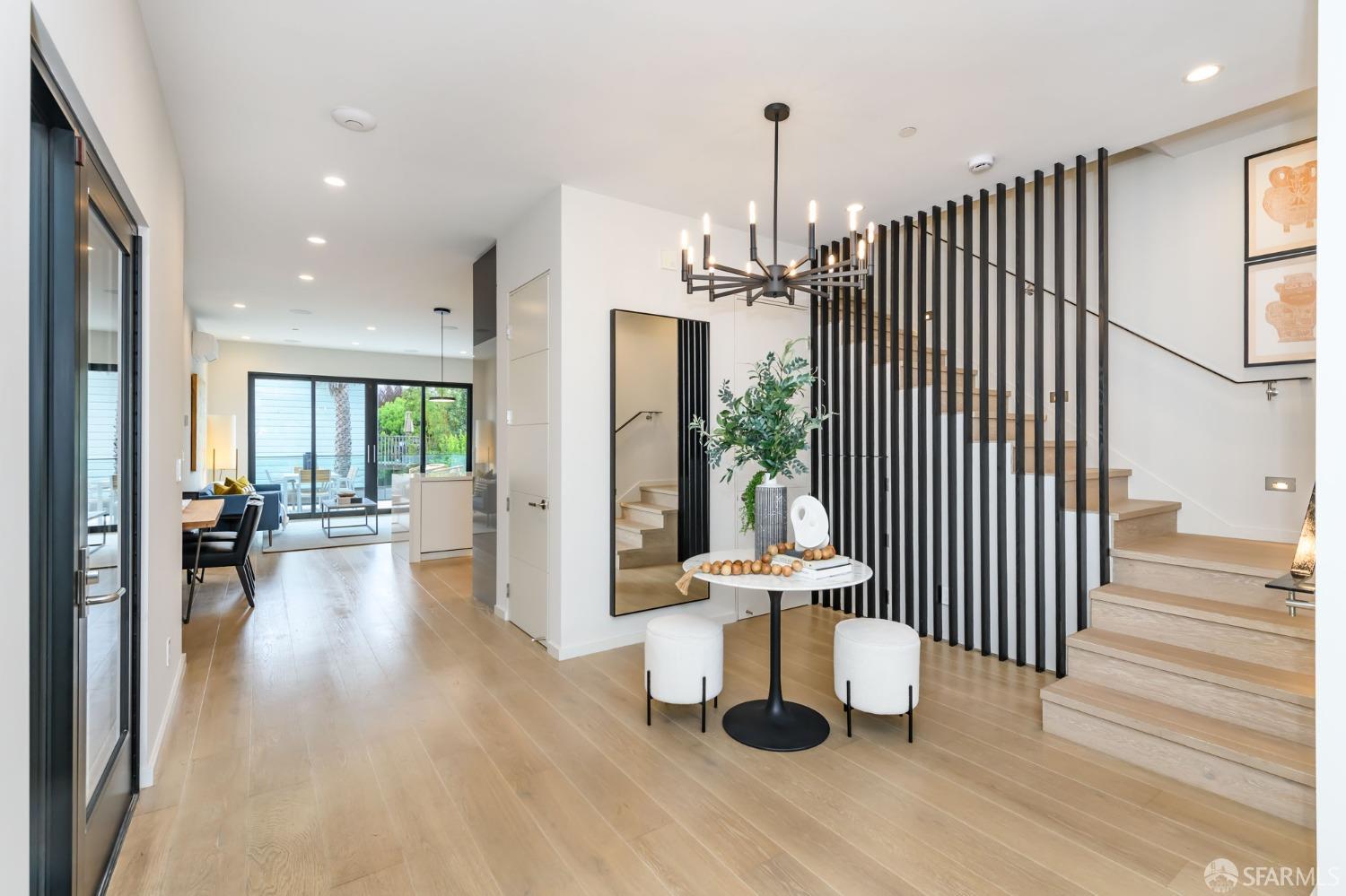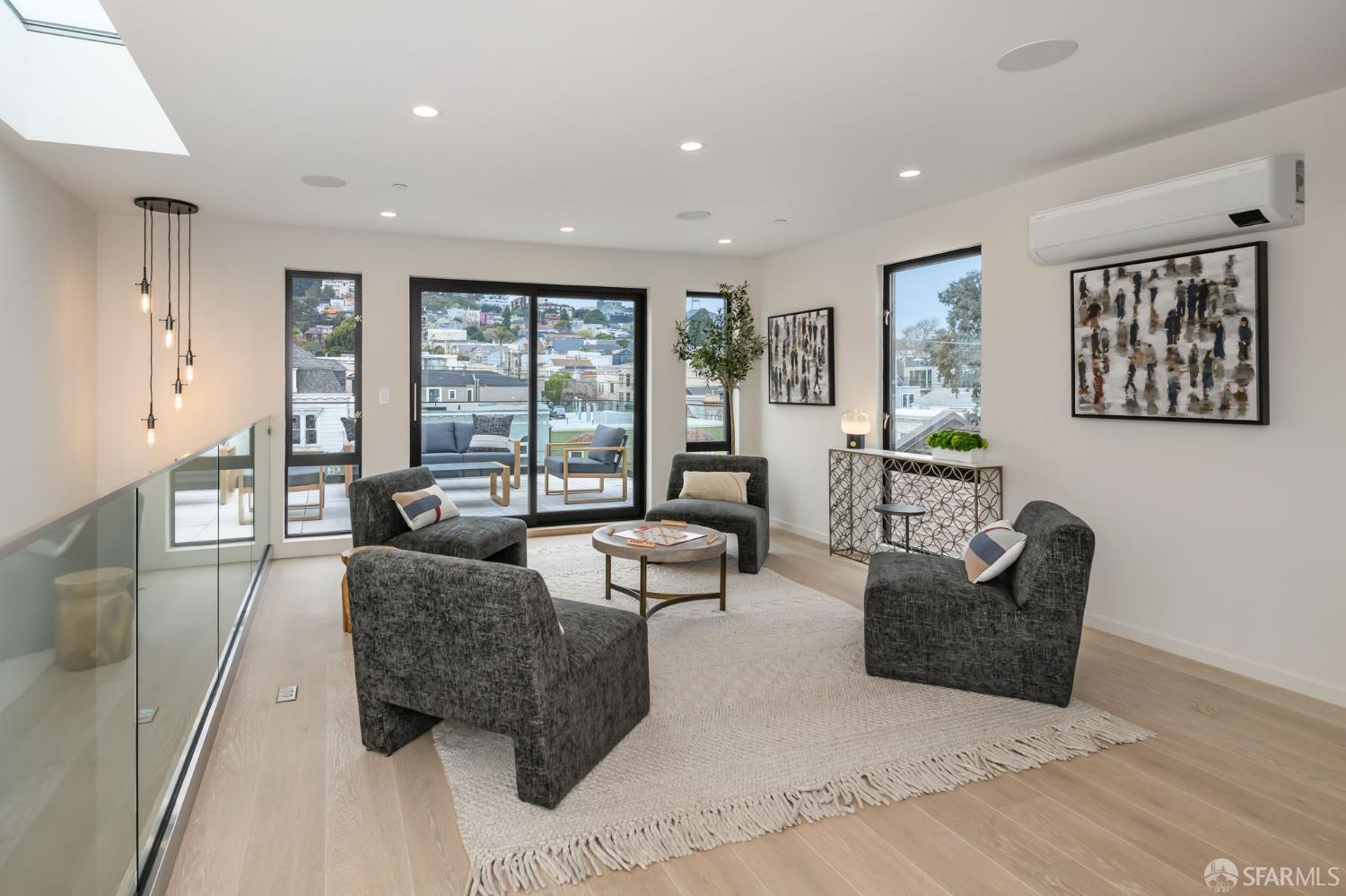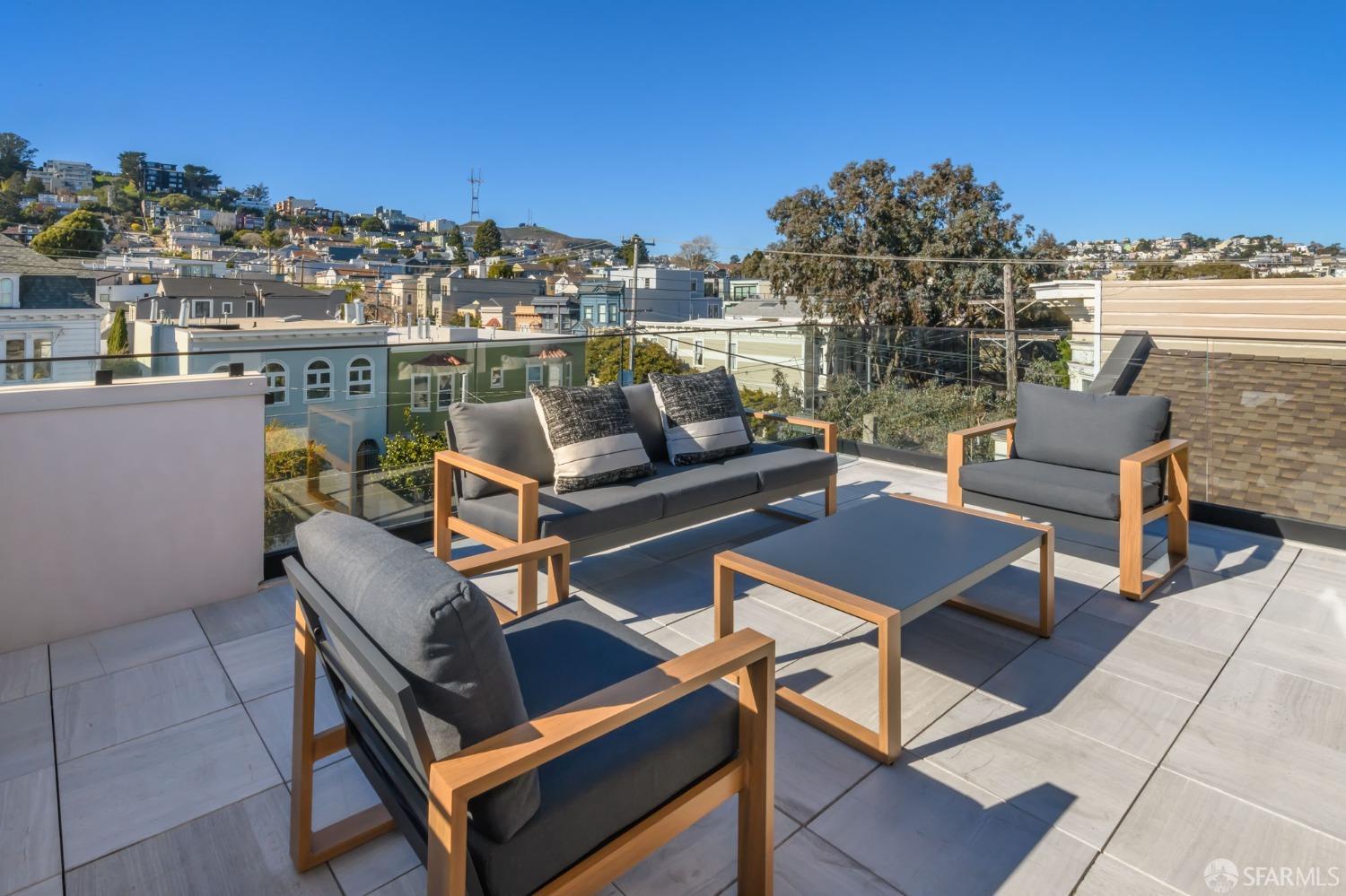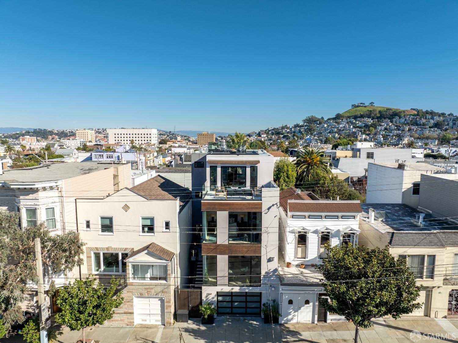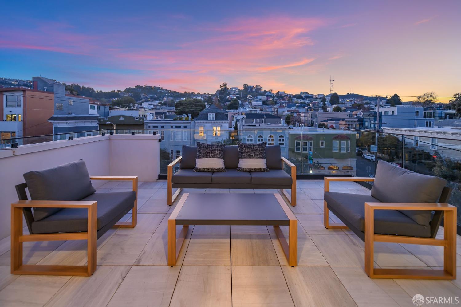 Stunning contemporary property in the heart of Noe Valley! Highlighting architecturally bold design, this gorgeous property offers 4 levels of spacious living, featuring 5 beds and 4.5 baths. Flanked by floor to ceiling windows on two sides, the main level begins with an inviting foyer with powder room and flows seamlessly into the exquisite living room with a striking marble fireplace. This level continues with an exceptionally stylish kitchen boasting sleek, modern cabinets and chef quality appliances, a spacious dining area and a family room with direct access to a large outdoor patio. The 2 upper levels enjoy a large primary suite featuring a magazine worthy primary bath, plus 3 spacious bedrooms, 2 equally bold and stylish baths, and a spectacular top floor family room with a full wet bar and access to yet another generous outdoor patio and an amazing roof-top deck with a gas fire pit. The lower level features a spacious legal one bedroom in-law apartment with a modern kitchen, bath and laundry, and direct access to the large, level backyard with a tall palm tree and a fire feature. A 2 car garage completes this level. All of this, plus multi-zone A/C, radiant heat, full building water filtration, built-in speakers and easy access the best of Noe Valley!
