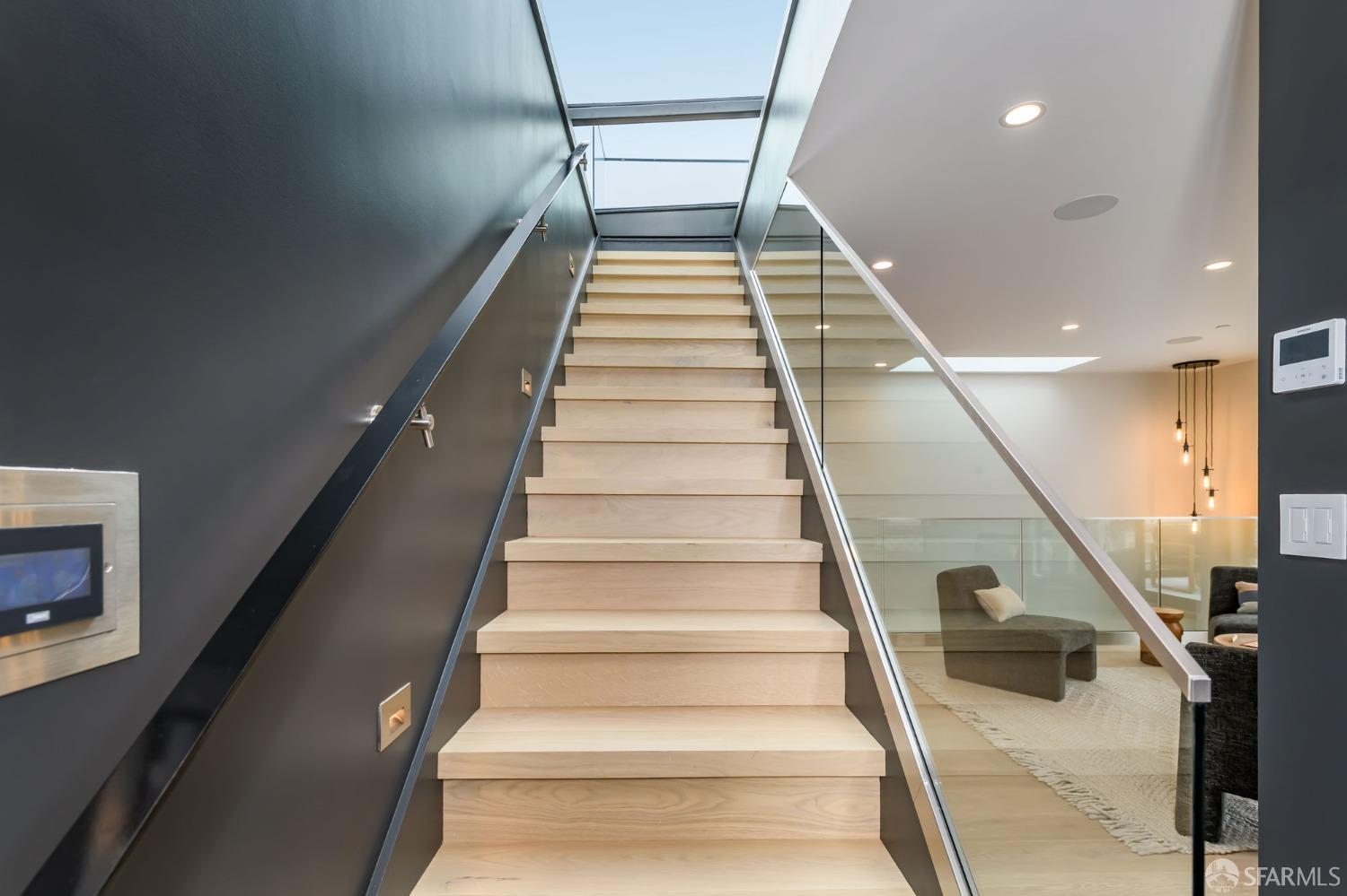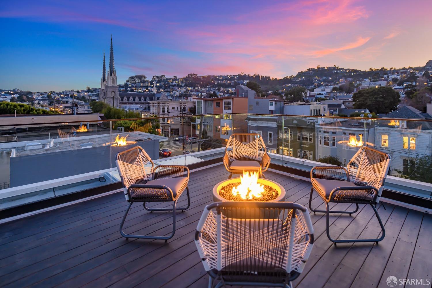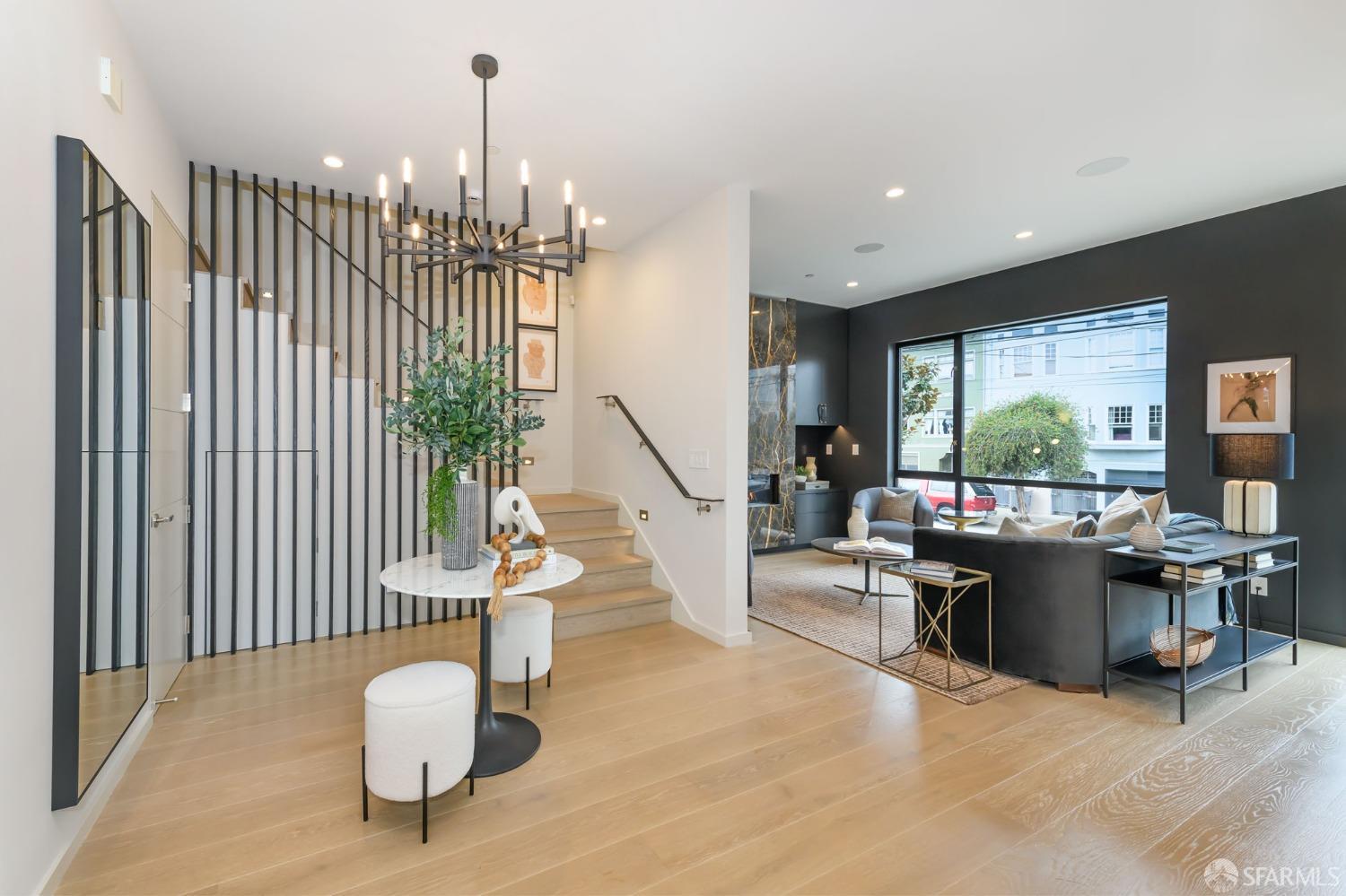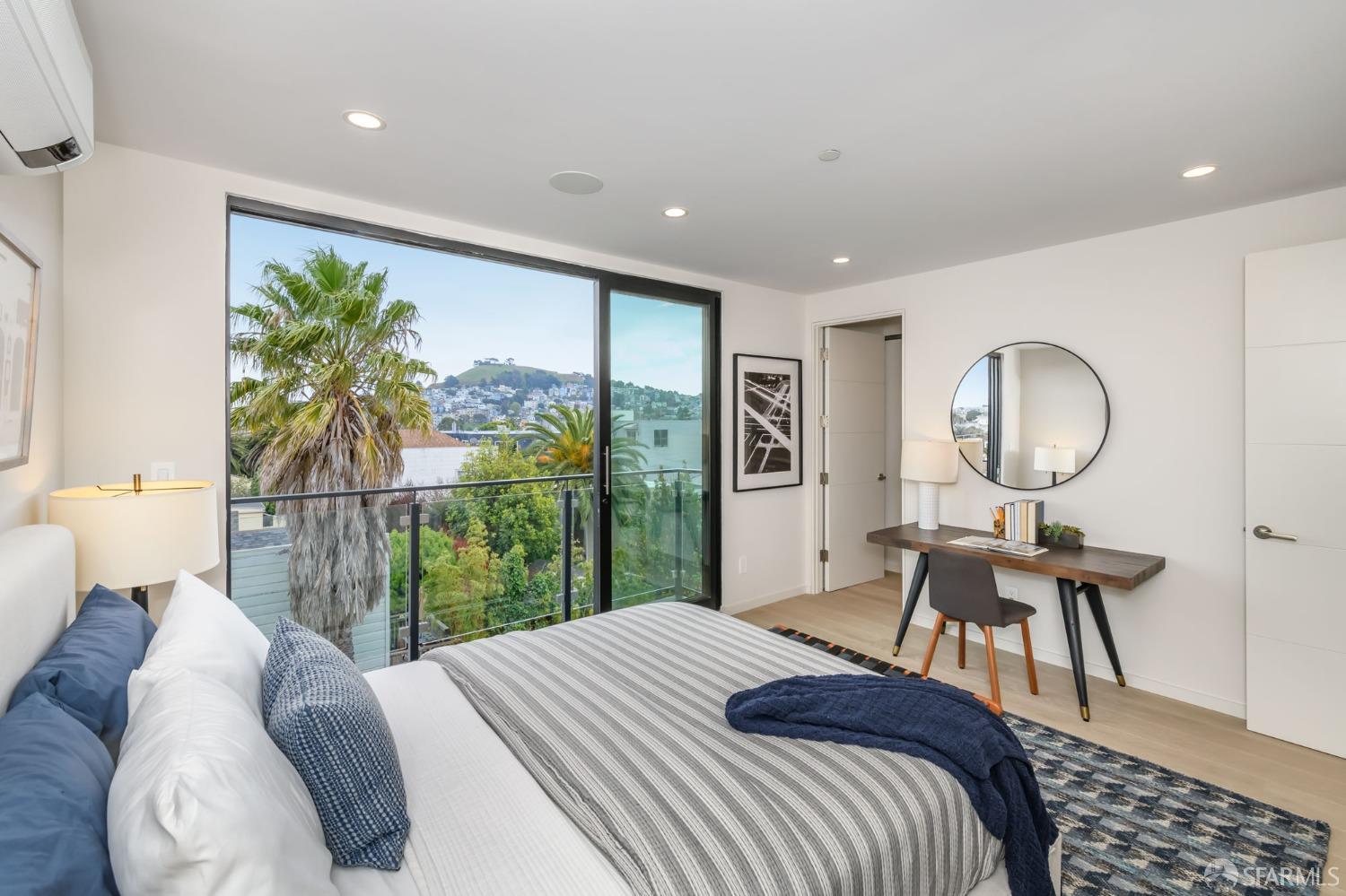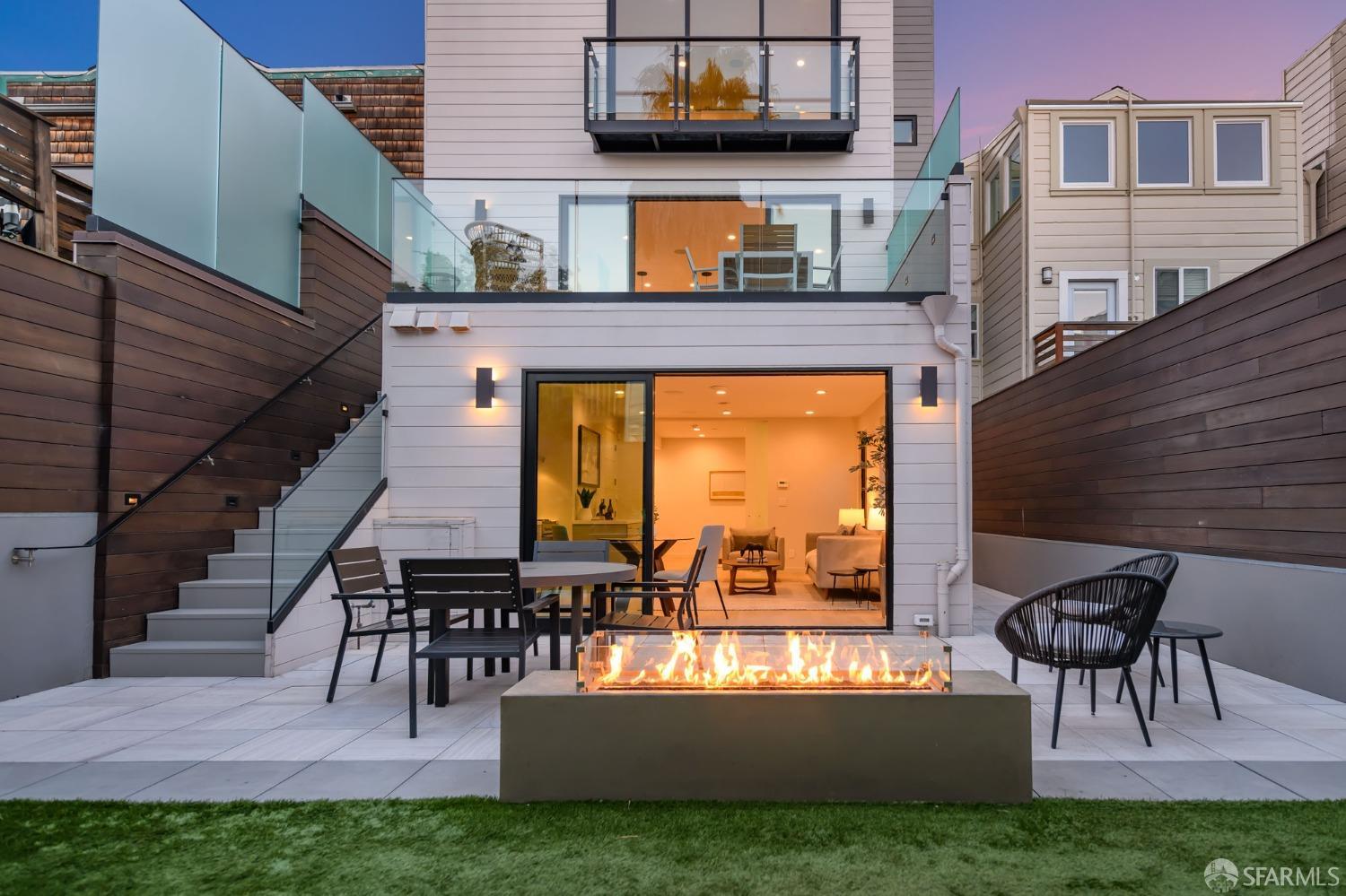 Stunning contemporary property in the heart of Noe Valley! Highlighting architecturally bold design, this gorgeous property offers 4 levels of spacious living, featuring 5 beds and 4.5 baths. Flanked by floor to ceiling windows on two sides, the main level begins with an inviting foyer with powder room and flows seamlessly into the exquisite living room with a striking marble fireplace. This level continues with an exceptionally stylish kitchen boasting sleek, modern cabinets and chef quality appliances, a spacious dining area and a family room with direct access to a large outdoor patio. The 2 upper levels enjoy a large primary suite featuring a magazine worthy primary bath, plus 3 spacious bedrooms, 2 equally bold and stylish baths, and a spectacular top floor family room with a full wet bar and access to yet another generous outdoor patio and an amazing roof-top deck with a gas fire pit. The lower level features a spacious legal one bedroom in-law apartment with a modern kitchen, bath and laundry, and direct access to the large, level backyard with a tall palm tree and a fire feature. A 2 car garage completes this level. All of this, plus multi-zone A/C, radiant heat, full building water filtration, built-in speakers and easy access the best of Noe Valley!