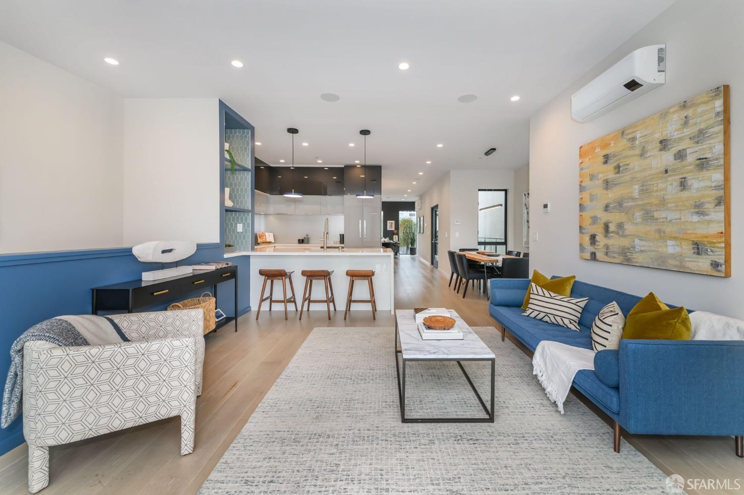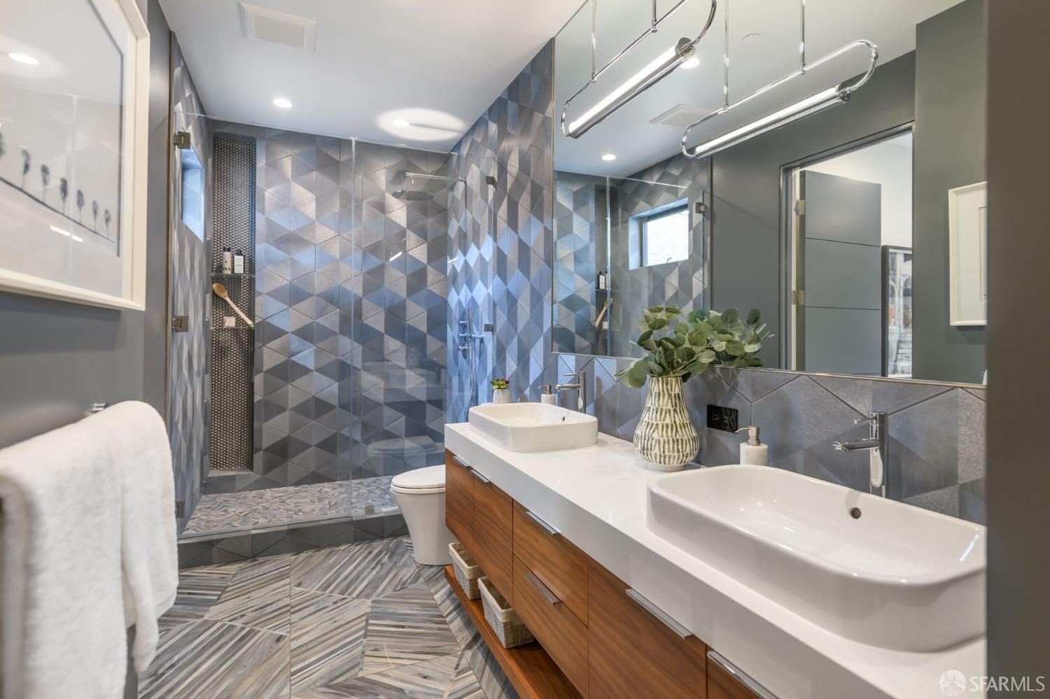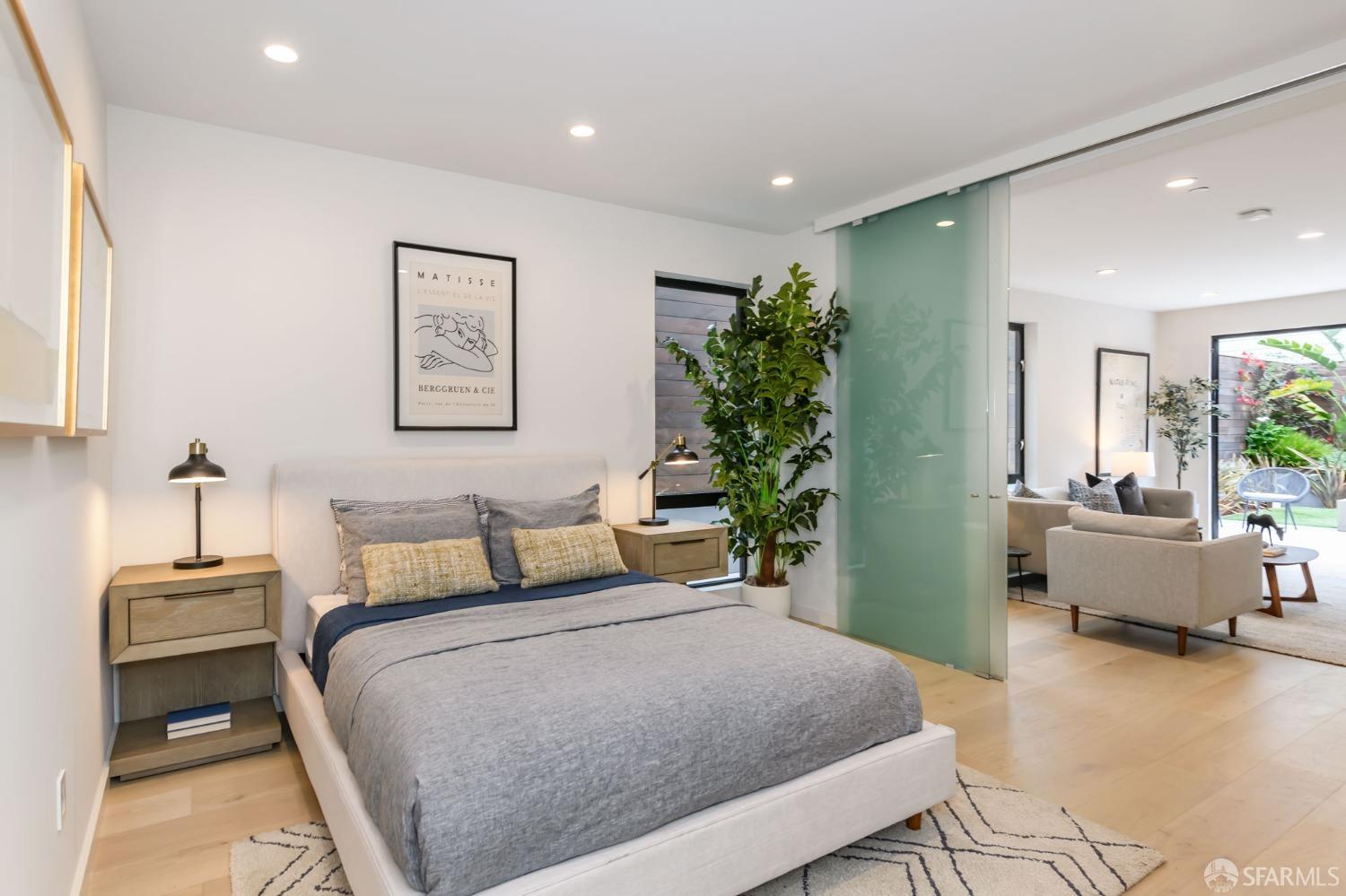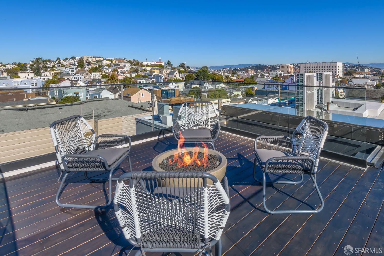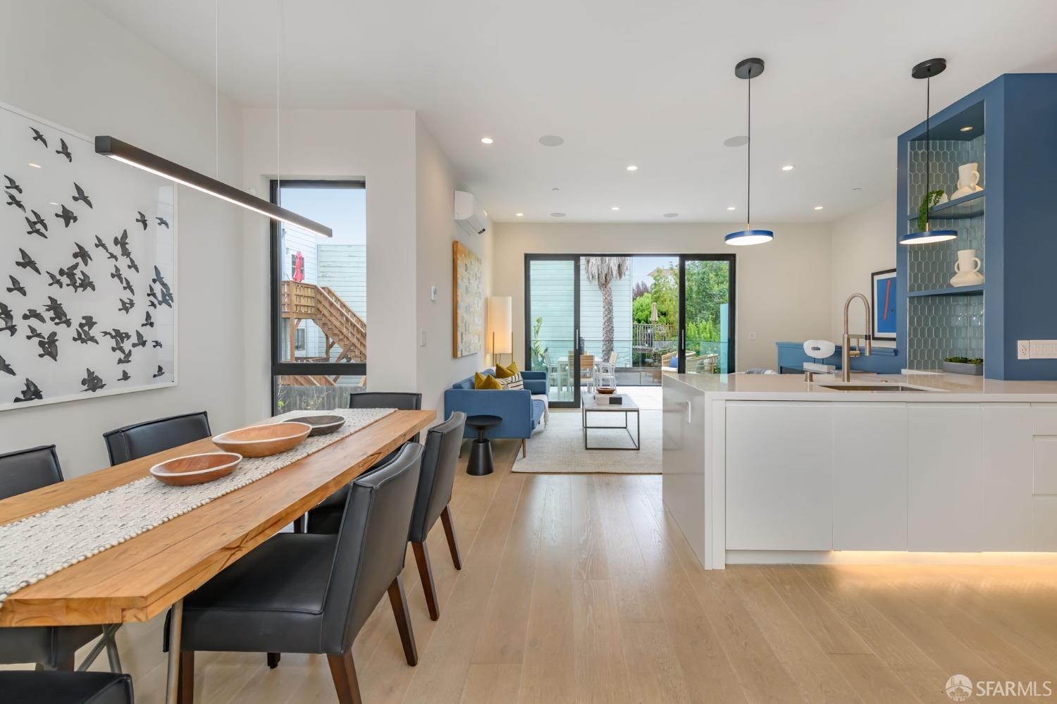 Stunning contemporary property in the heart of Noe Valley! Highlighting architecturally bold design, this gorgeous property offers 4 levels of spacious living, featuring 5 beds and 4.5 baths. Flanked by floor to ceiling windows on two sides, the main level begins with an inviting foyer with powder room and flows seamlessly into the exquisite living room with a striking marble fireplace. This level continues with an exceptionally stylish kitchen boasting sleek, modern cabinets and chef quality appliances, a spacious dining area and a family room with direct access to a large outdoor patio. The 2 upper levels enjoy a large primary suite featuring a magazine worthy primary bath, plus 3 spacious bedrooms, 2 equally bold and stylish baths, and a spectacular top floor family room with a full wet bar and access to yet another generous outdoor patio and an amazing roof-top deck with a gas fire pit. The lower level features a spacious legal one bedroom in-law apartment with a modern kitchen, bath and laundry, and direct access to the large, level backyard with a tall palm tree and a fire feature. A 2 car garage completes this level. All of this, plus multi-zone A/C, radiant heat, full building water filtration, built-in speakers and easy access the best of Noe Valley!
