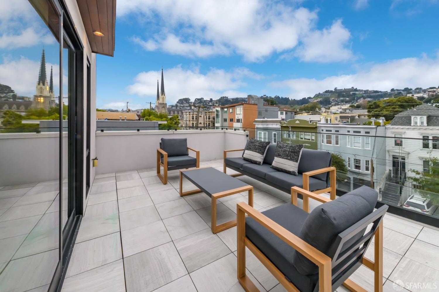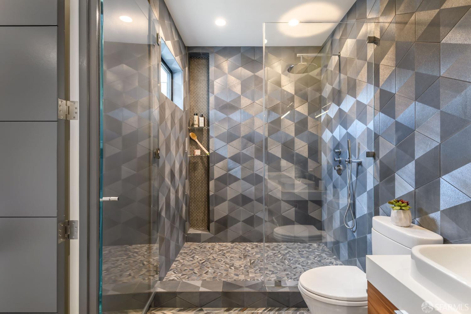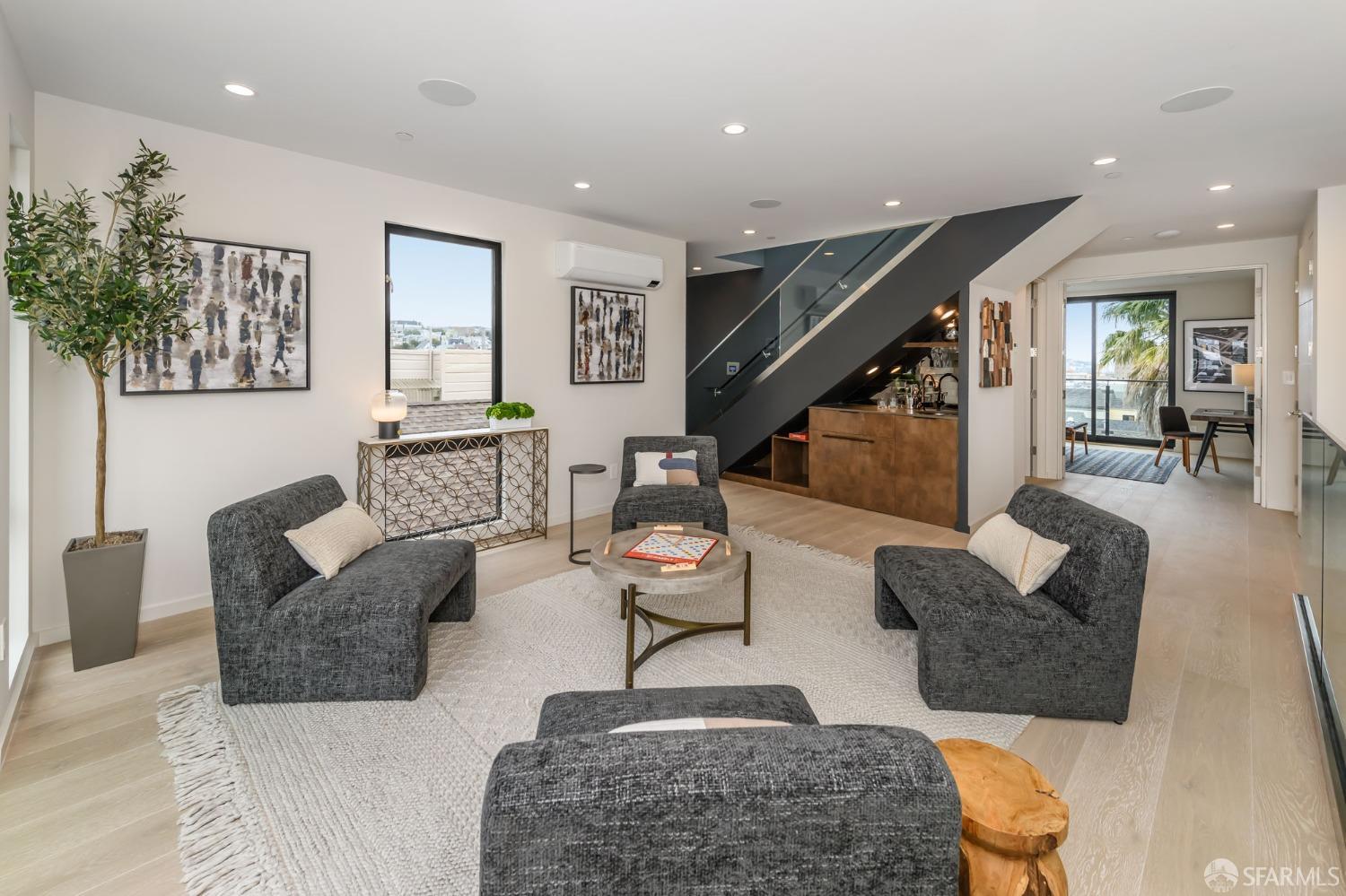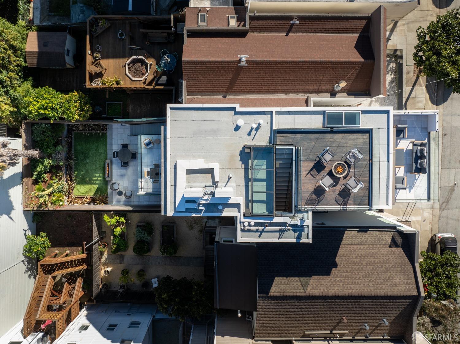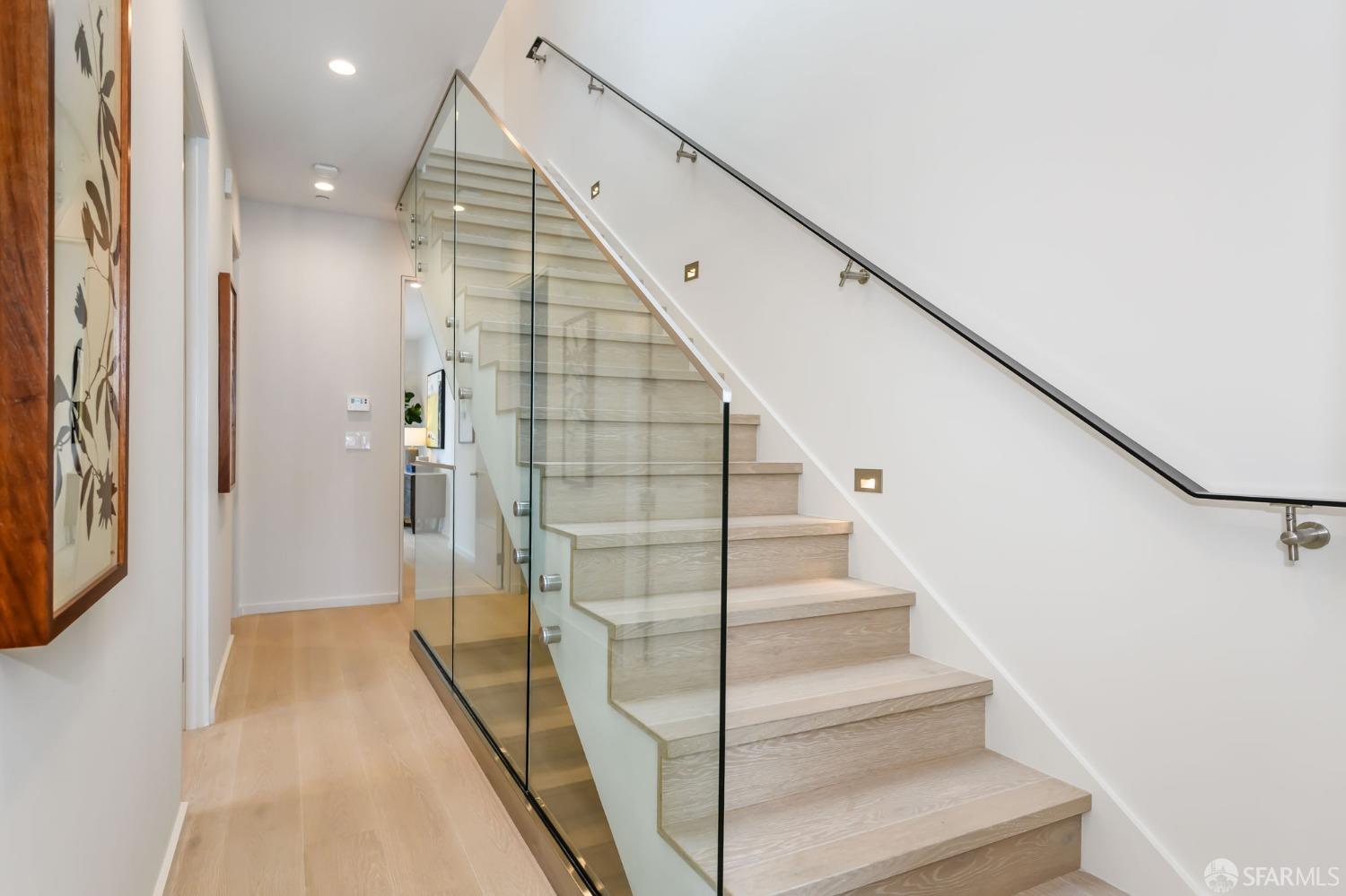 Stunning contemporary property in the heart of Noe Valley! Highlighting architecturally bold design, this gorgeous property offers 4 levels of spacious living, featuring 5 beds and 4.5 baths. Flanked by floor to ceiling windows on two sides, the main level begins with an inviting foyer with powder room and flows seamlessly into the exquisite living room with a striking marble fireplace. This level continues with an exceptionally stylish kitchen boasting sleek, modern cabinets and chef quality appliances, a spacious dining area and a family room with direct access to a large outdoor patio. The 2 upper levels enjoy a large primary suite featuring a magazine worthy primary bath, plus 3 spacious bedrooms, 2 equally bold and stylish baths, and a spectacular top floor family room with a full wet bar and access to yet another generous outdoor patio and an amazing roof-top deck with a gas fire pit. The lower level features a spacious legal one bedroom in-law apartment with a modern kitchen, bath and laundry, and direct access to the large, level backyard with a tall palm tree and a fire feature. A 2 car garage completes this level. All of this, plus multi-zone A/C, radiant heat, full building water filtration, built-in speakers and easy access the best of Noe Valley!