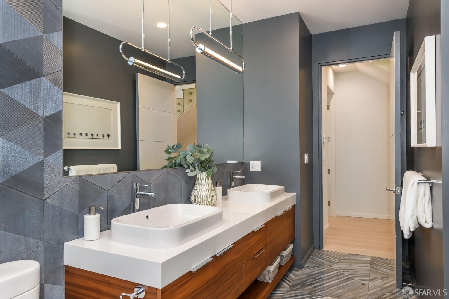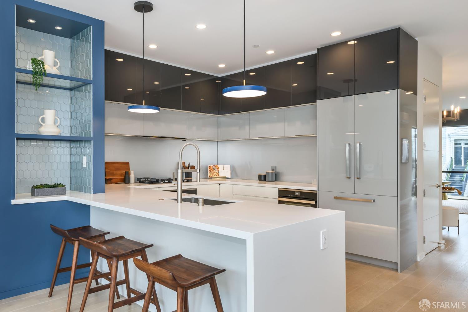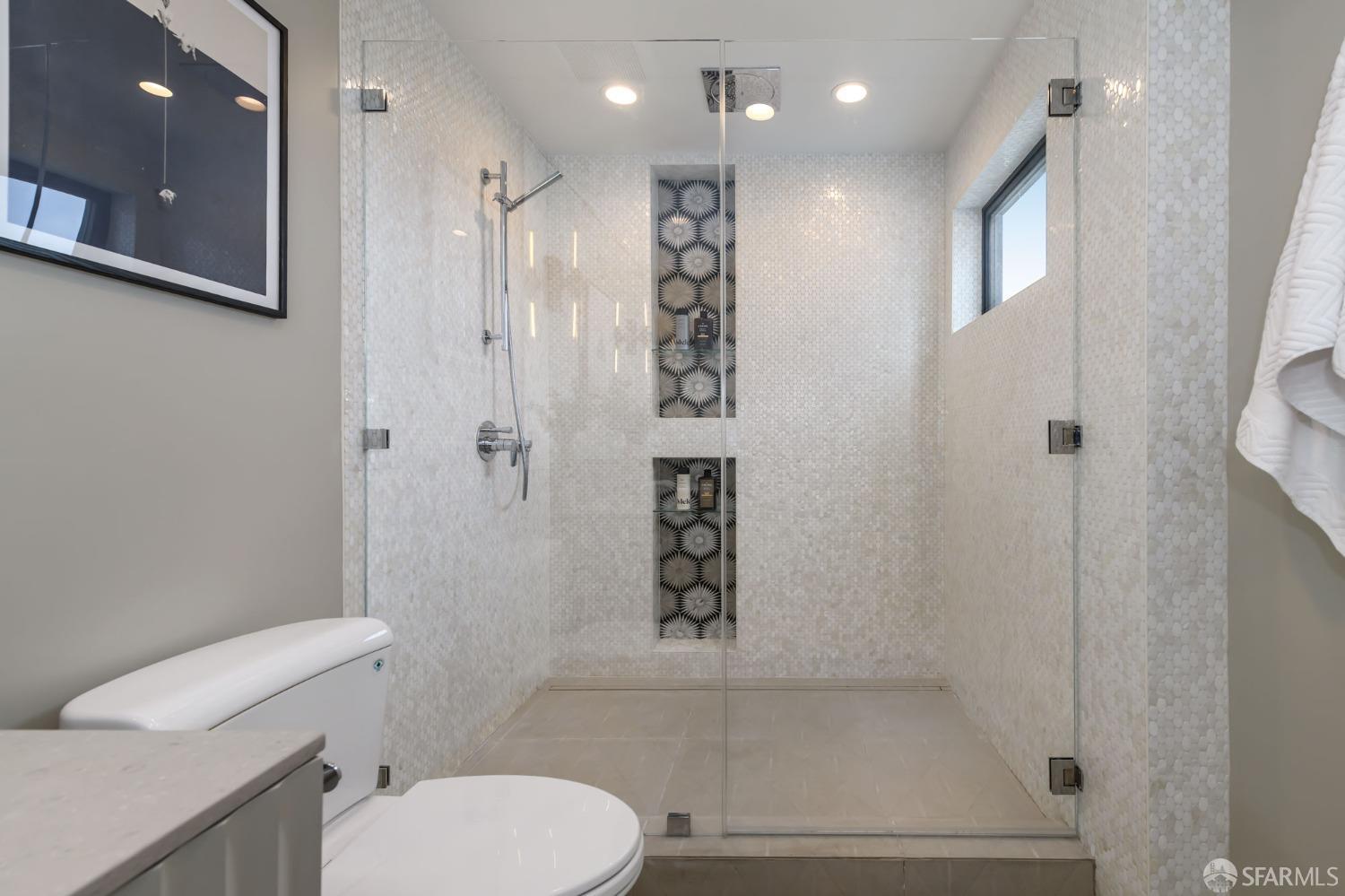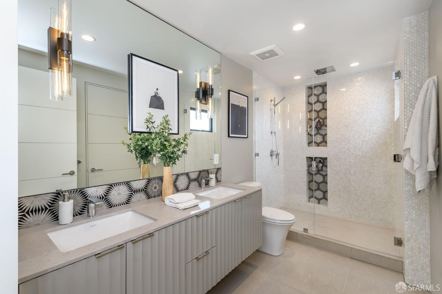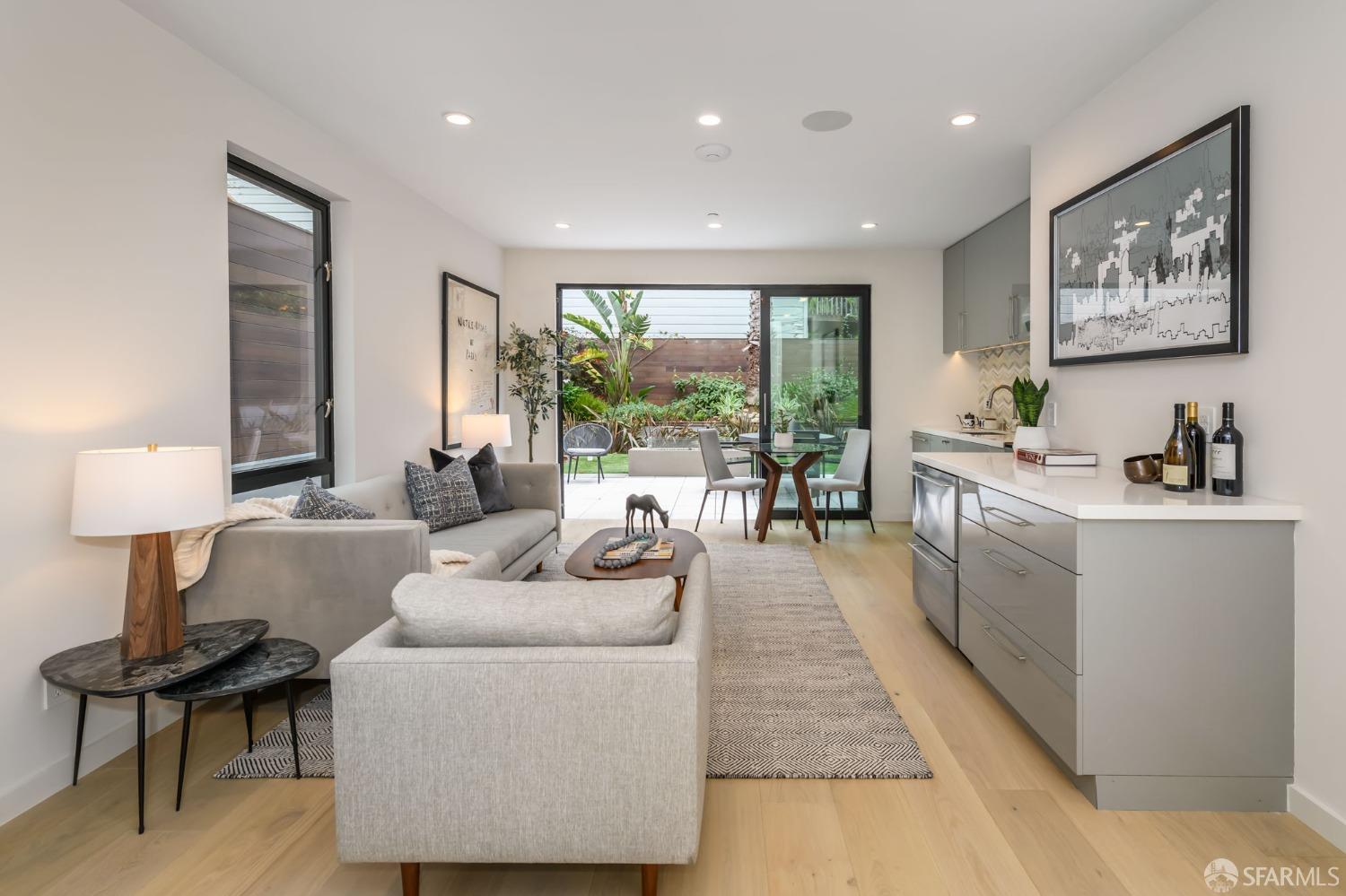 Stunning contemporary property in the heart of Noe Valley! Highlighting architecturally bold design, this gorgeous property offers 4 levels of spacious living, featuring 5 beds and 4.5 baths. Flanked by floor to ceiling windows on two sides, the main level begins with an inviting foyer with powder room and flows seamlessly into the exquisite living room with a striking marble fireplace. This level continues with an exceptionally stylish kitchen boasting sleek, modern cabinets and chef quality appliances, a spacious dining area and a family room with direct access to a large outdoor patio. The 2 upper levels enjoy a large primary suite featuring a magazine worthy primary bath, plus 3 spacious bedrooms, 2 equally bold and stylish baths, and a spectacular top floor family room with a full wet bar and access to yet another generous outdoor patio and an amazing roof-top deck with a gas fire pit. The lower level features a spacious legal one bedroom in-law apartment with a modern kitchen, bath and laundry, and direct access to the large, level backyard with a tall palm tree and a fire feature. A 2 car garage completes this level. All of this, plus multi-zone A/C, radiant heat, full building water filtration, built-in speakers and easy access the best of Noe Valley!