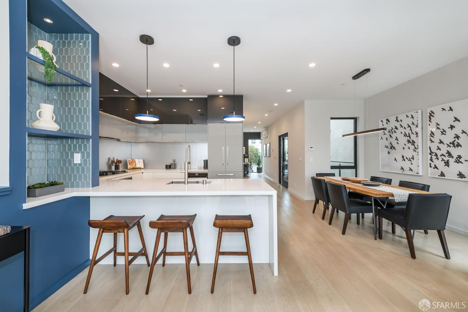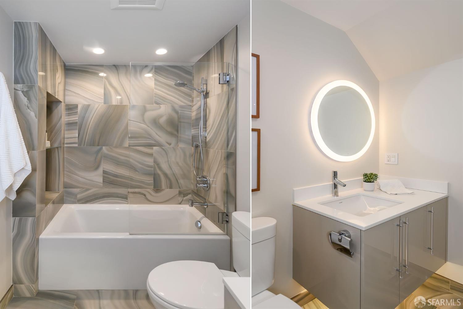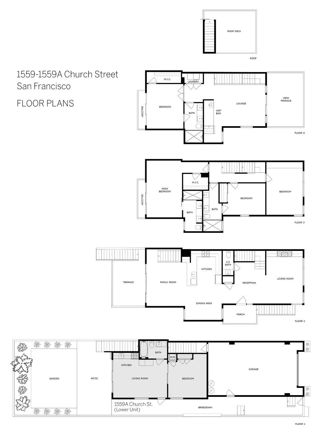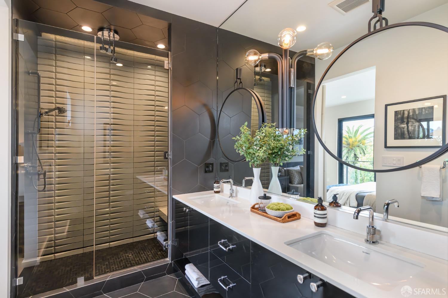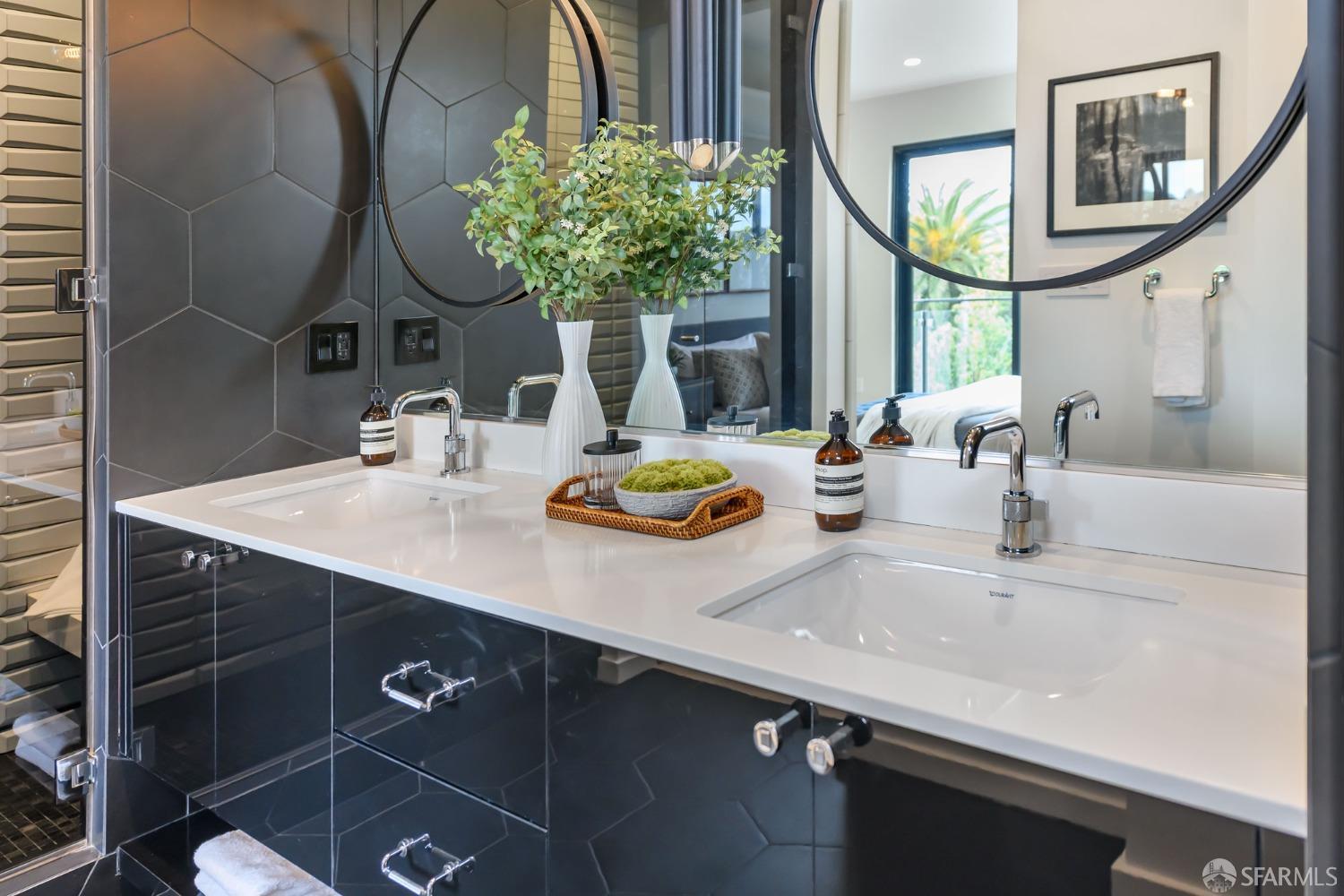 Stunning contemporary property in the heart of Noe Valley! Highlighting architecturally bold design, this gorgeous property offers 4 levels of spacious living, featuring 5 beds and 4.5 baths. Flanked by floor to ceiling windows on two sides, the main level begins with an inviting foyer with powder room and flows seamlessly into the exquisite living room with a striking marble fireplace. This level continues with an exceptionally stylish kitchen boasting sleek, modern cabinets and chef quality appliances, a spacious dining area and a family room with direct access to a large outdoor patio. The 2 upper levels enjoy a large primary suite featuring a magazine worthy primary bath, plus 3 spacious bedrooms, 2 equally bold and stylish baths, and a spectacular top floor family room with a full wet bar and access to yet another generous outdoor patio and an amazing roof-top deck with a gas fire pit. The lower level features a spacious legal one bedroom in-law apartment with a modern kitchen, bath and laundry, and direct access to the large, level backyard with a tall palm tree and a fire feature. A 2 car garage completes this level. All of this, plus multi-zone A/C, radiant heat, full building water filtration, built-in speakers and easy access the best of Noe Valley!