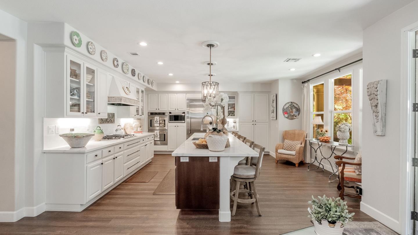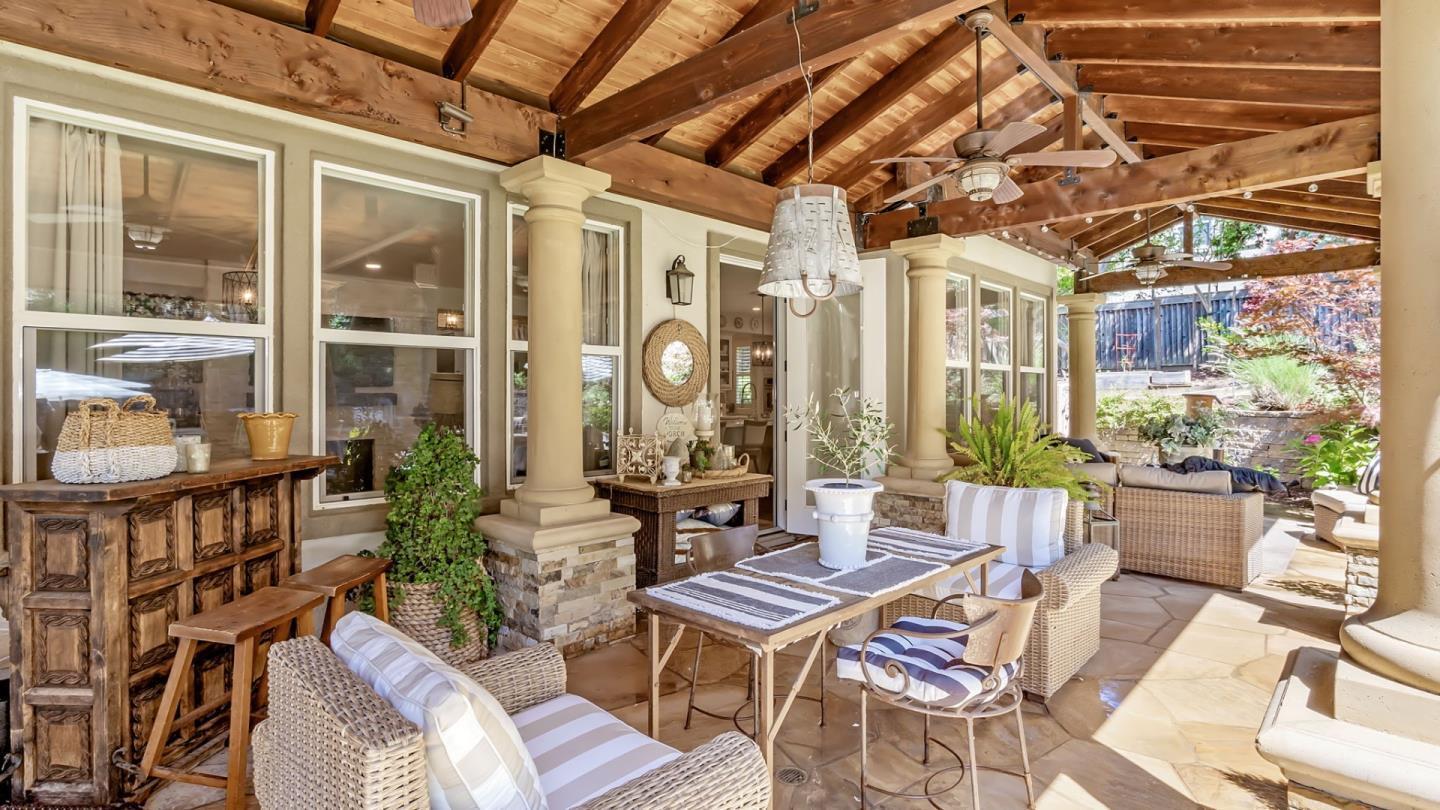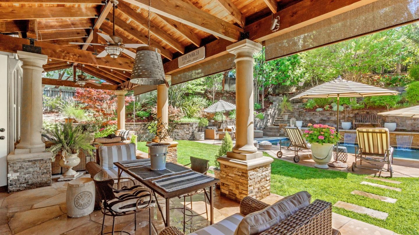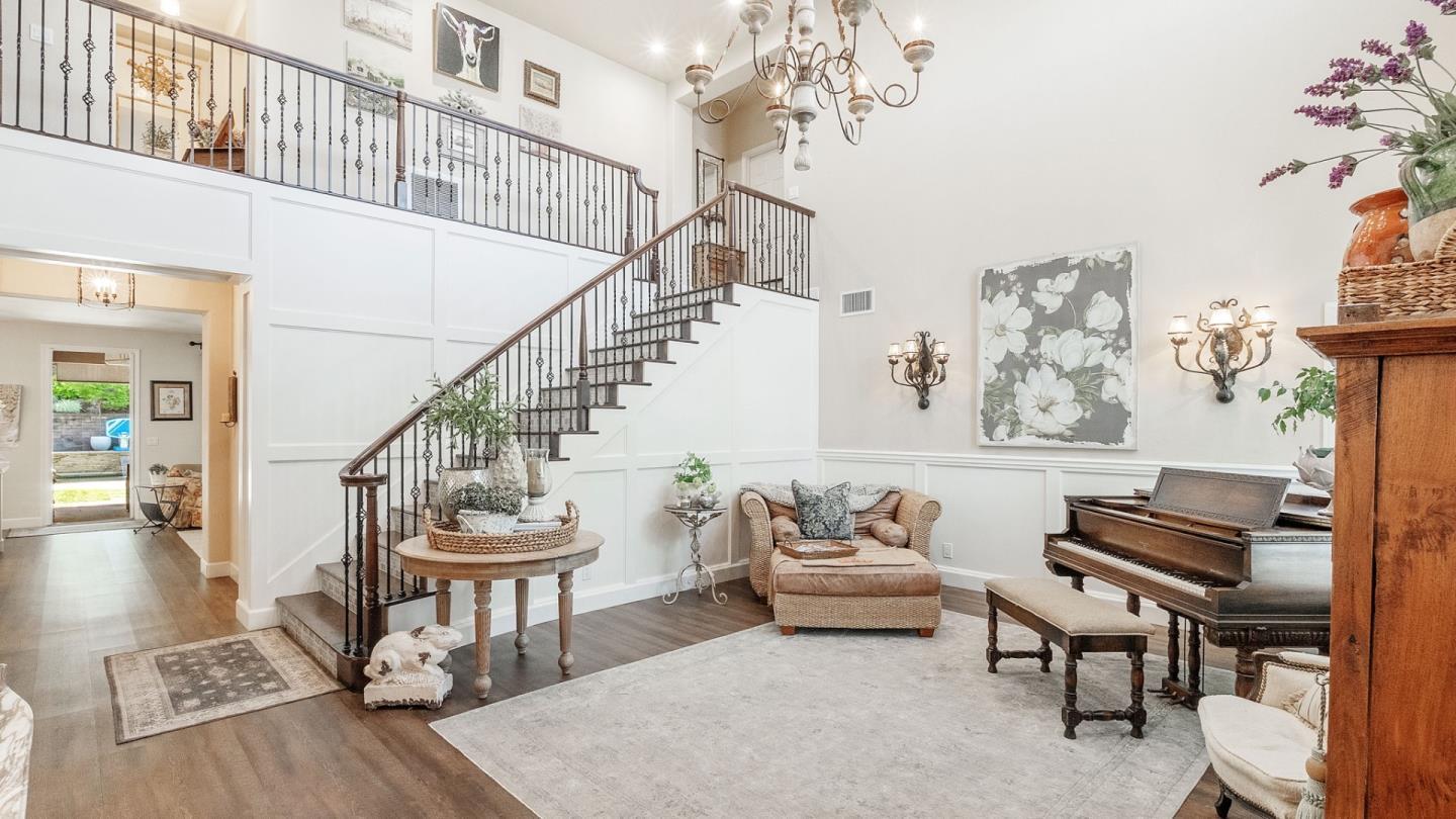 Experience the epitome of luxury living in this stunning 5 bedroom home with a private bedroom and bath downstairs. This home is a work of art, boasting 3,996 square feet of living space on a spacious 13,939 square foot lot. From the moment you arrive, you will be captivated by the grandeur of this property. Step inside to find a gourmet kitchen equipped with top-of-the-line SS Sub-Zero french door refrigerator, a spacious living area with high ceilings adorned with custom tile, millwork, and lighting. The home features new windows, wrought iron details, a wet bar, and a cozy fireplace. The primary suite is a true oasis, complete with a luxurious spa-like bath and stunning views. Venture outside to discover a resort-like outdoor living space perfect for entertaining or simply unwinding. The outdoor area includes a sparkling pool, spa, outdoor kitchen, and a firepit on the upper deck, providing an ideal setting for relaxing under the stars. The property also boasts a majestic oak tree surrounded by fragrant fruit trees. This unique property is filled with custom finishes and upgrades, making it a truly exceptional home. The neighborhood offers a family-friendly atmosphere and convenient access to amenities such as the golf course and clubhouse.