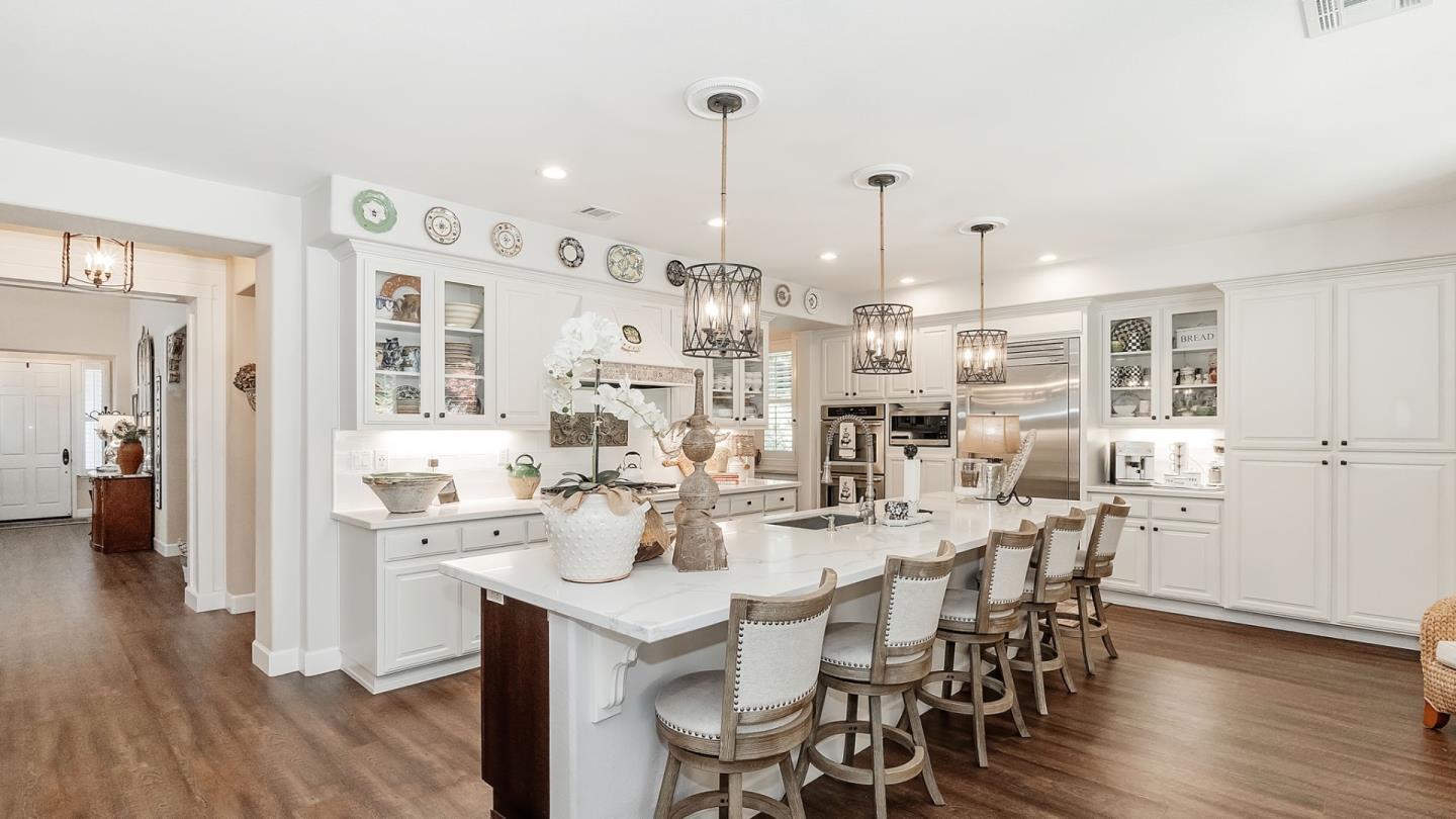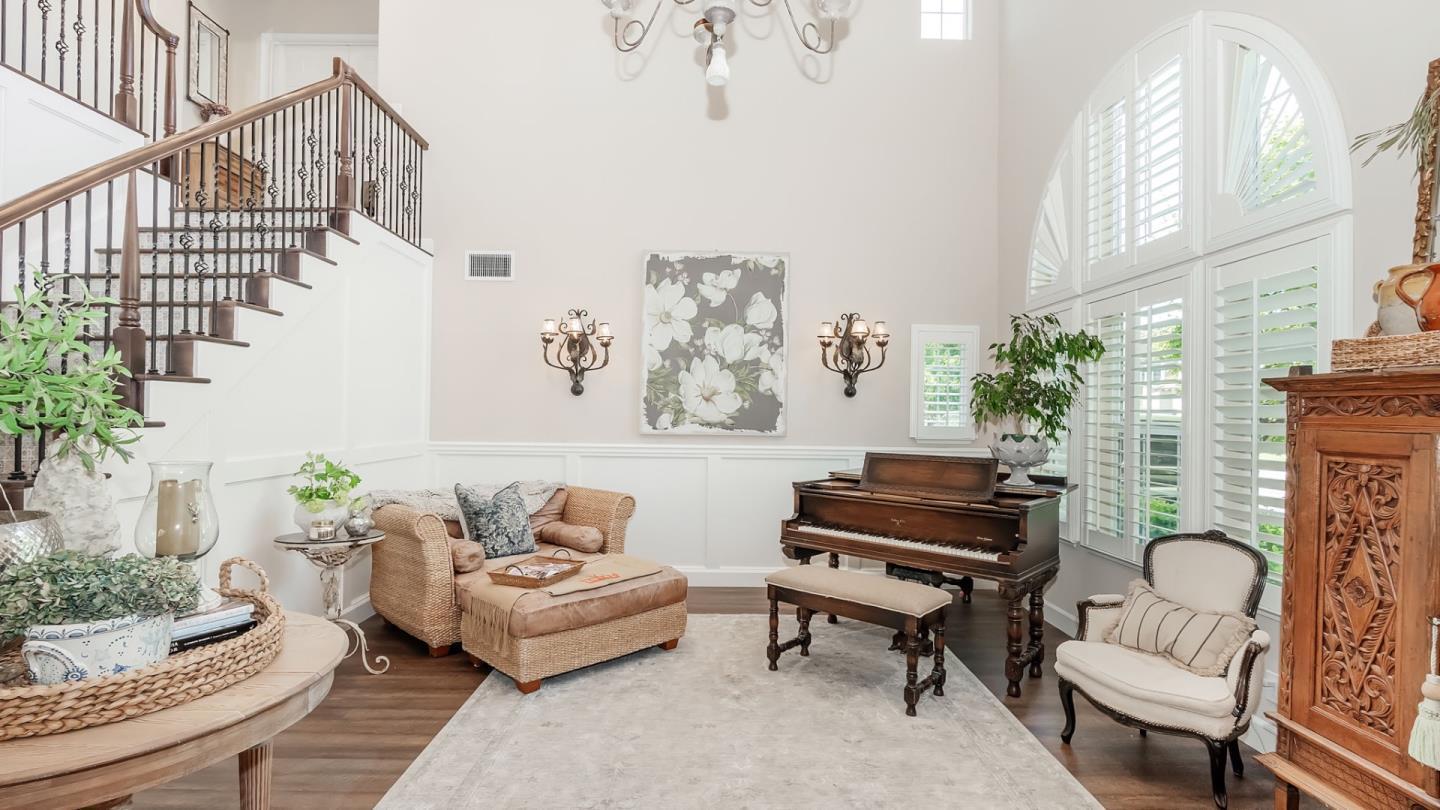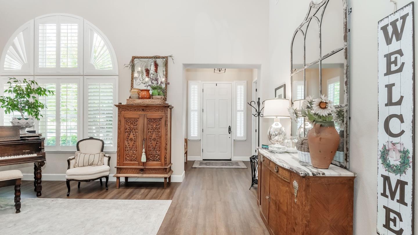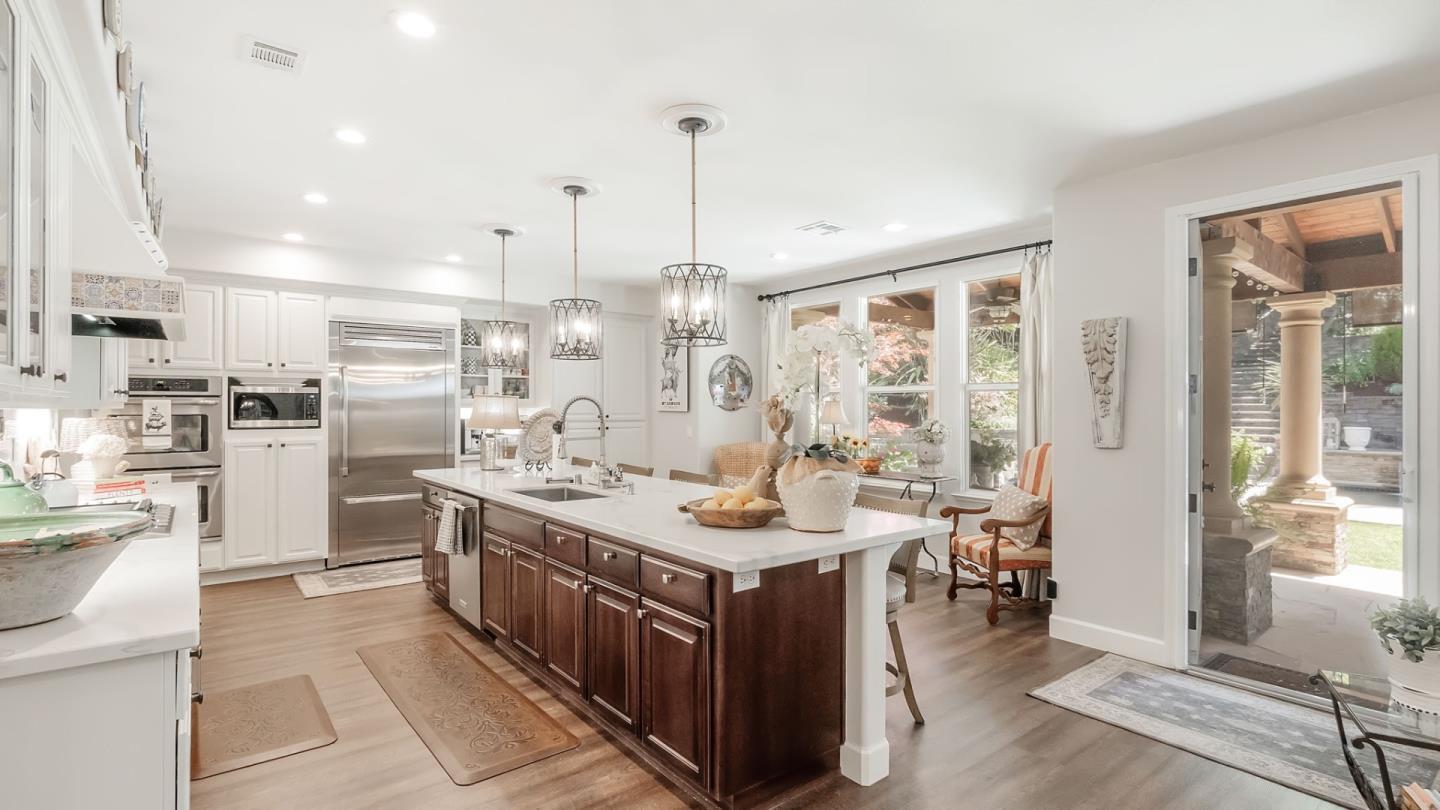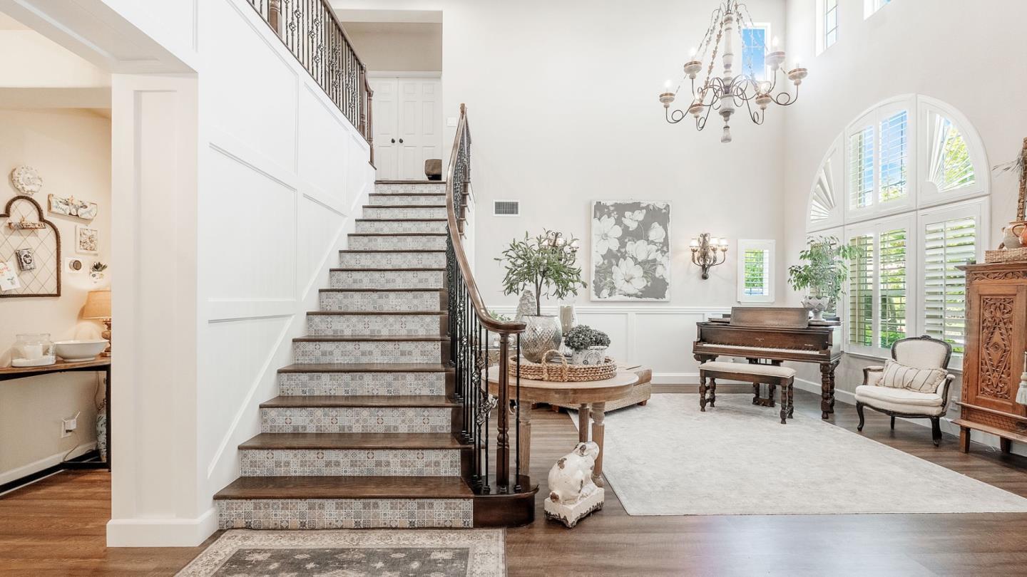 Experience the epitome of luxury living in this stunning 5 bedroom home with a private bedroom and bath downstairs. This home is a work of art, boasting 3,996 square feet of living space on a spacious 13,939 square foot lot. From the moment you arrive, you will be captivated by the grandeur of this property. Step inside to find a gourmet kitchen equipped with top-of-the-line SS Sub-Zero french door refrigerator, a spacious living area with high ceilings adorned with custom tile, millwork, and lighting. The home features new windows, wrought iron details, a wet bar, and a cozy fireplace. The primary suite is a true oasis, complete with a luxurious spa-like bath and stunning views. Venture outside to discover a resort-like outdoor living space perfect for entertaining or simply unwinding. The outdoor area includes a sparkling pool, spa, outdoor kitchen, and a firepit on the upper deck, providing an ideal setting for relaxing under the stars. The property also boasts a majestic oak tree surrounded by fragrant fruit trees. This unique property is filled with custom finishes and upgrades, making it a truly exceptional home. The neighborhood offers a family-friendly atmosphere and convenient access to amenities such as the golf course and clubhouse.