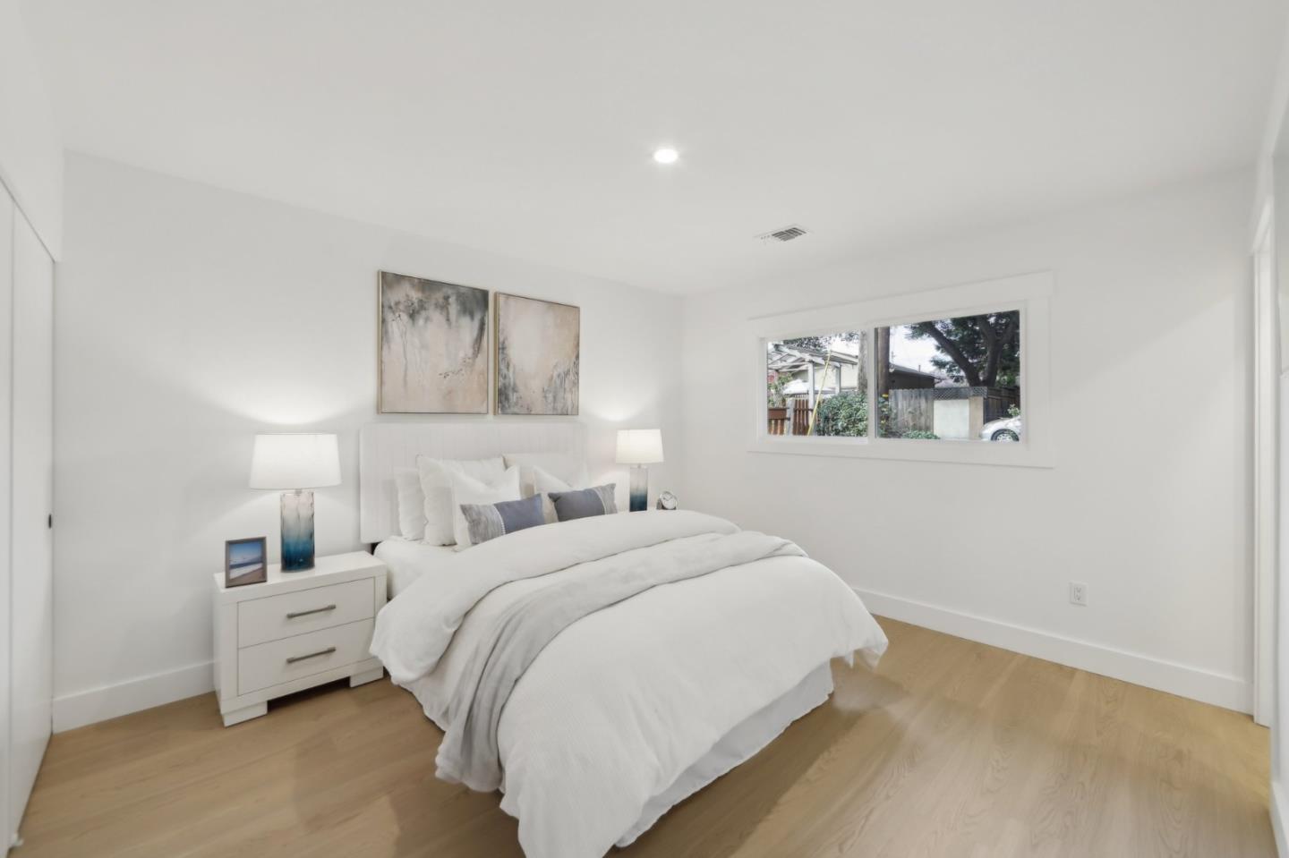 Nestled in the heart of a quiet East Palo Alto neighborhood is this completely remodeled ranch-style home offering a captivating blend of luxury and convenience! Step inside to discover over 1100 sq/ft feet of airy, light-filled living space thoughtfully arranged to cater to a contemporary lifestyle. Upon entrance one is greeted with an open concept floor plan perfect for modern living. The gourmet kitchen features quartz countertops, backsplash, stylish custom cabinets, and stainless-steel appliances. The kitchen opens seamlessly to a large dining room/family room with a fireplace perfect for entertaining friends/family. A large primary suite and extra-large bedroom with guest bath round out the main living space. Sliding glass doors open to a well-appointed backyard with swimming pool and a 100' sq/ft auxiliary unit perfect for a workout studio or office! Completely remodeled from top to bottom with new plumbing/electrical, master bath, LVP floors, furnace/tankless water heater, new roof, windows and much more! Centrally located to all the Silicon Valley has to offer. Close to major transportation routes, technology campuses and great shopping /dining in downtown Palo Alto/Mid Peninsula.