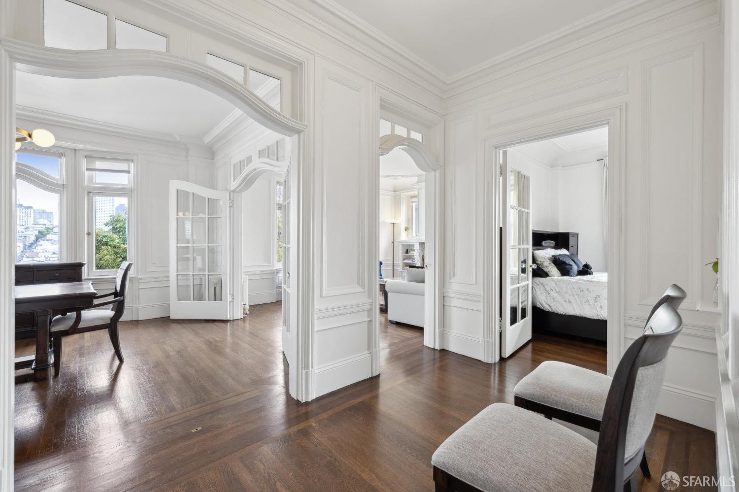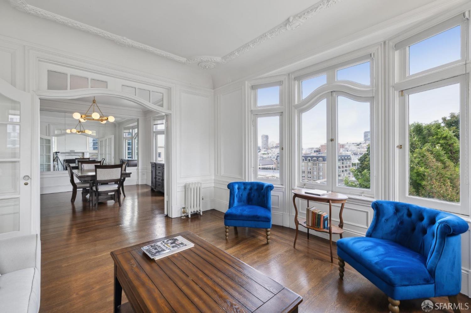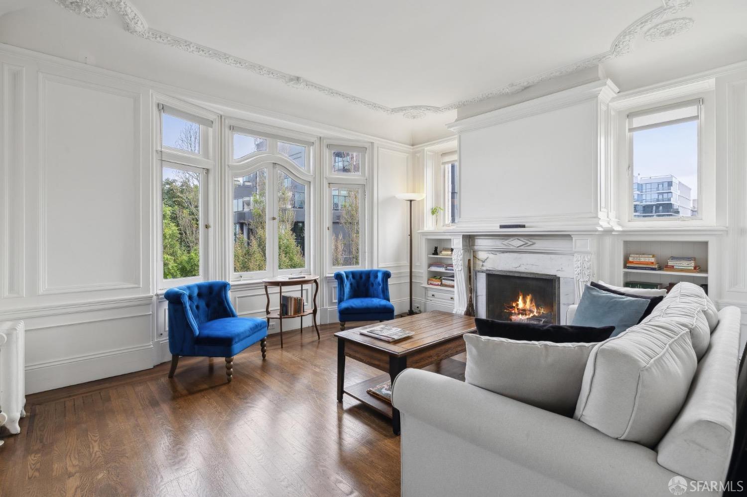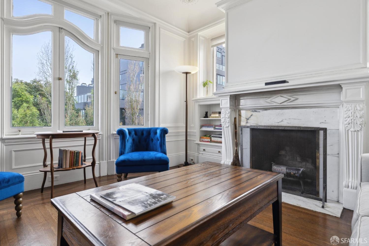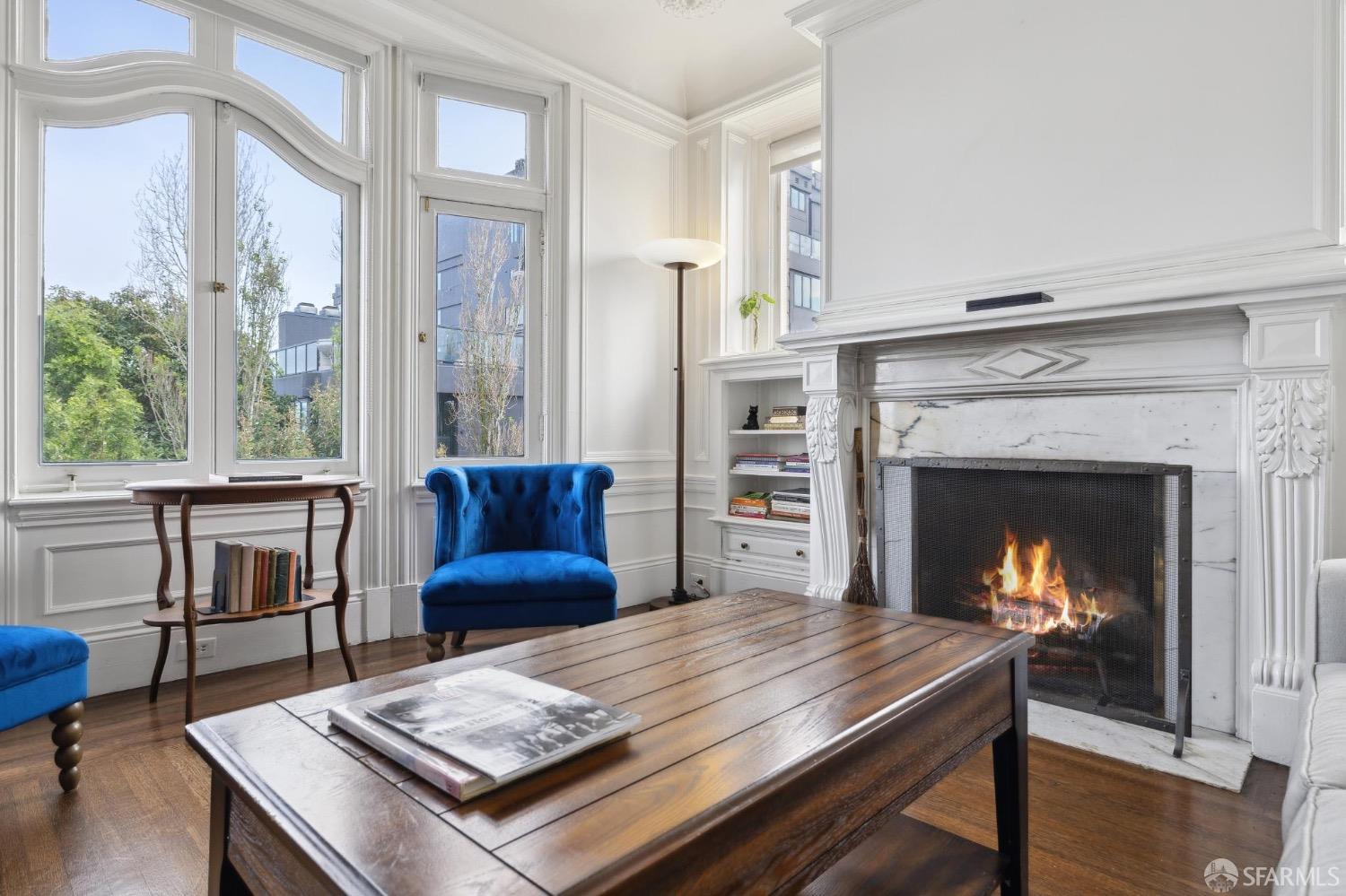 Attention please. What a Fantastic Price!!! This beautiful Edwardian condominium has breathtaking views of the city! Upon entering you'll fall in love with all the original detail at every turn, blending historic charm with modern comforts! Filled with natural sunlight, the main level offers beautiful hardwood floors throughout, sunny, spacious living room with an elegant gas fireplace where you can entertain or relax. Formal dining room and chef style kitchen flows seamlessly. 3 bedrooms with ample closet space, full bath plus a guest 1/2 bath. Walk across the street to Whole Foods and 1 block from Van Ness to access the entire city of San Francisco from this iconic location. Monthly parking available on California Street.