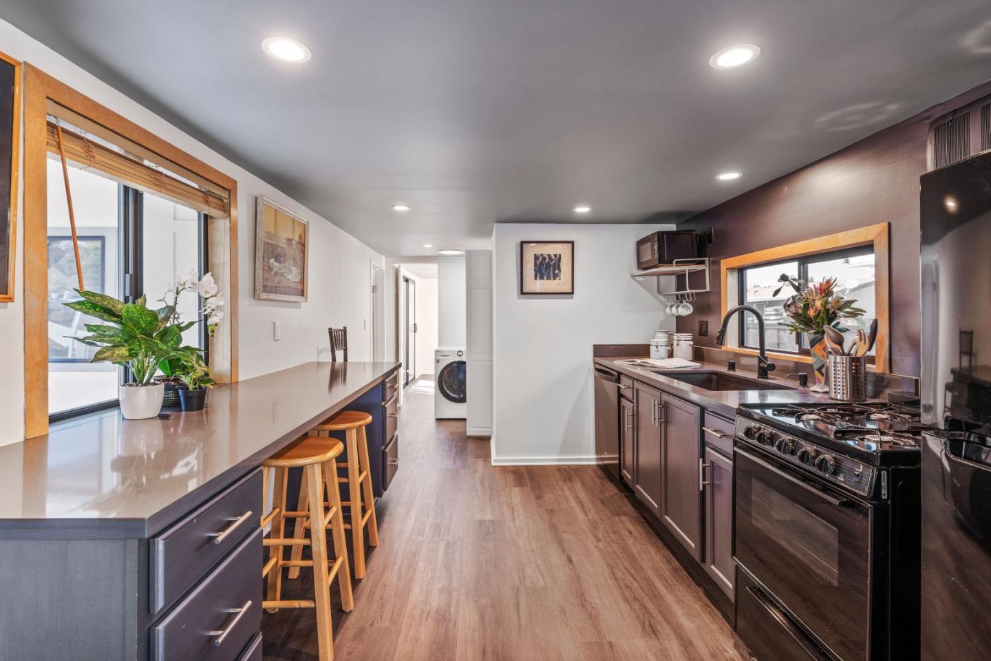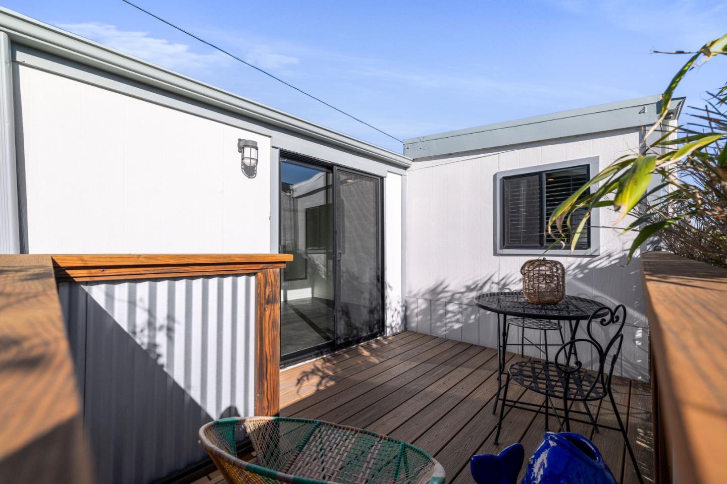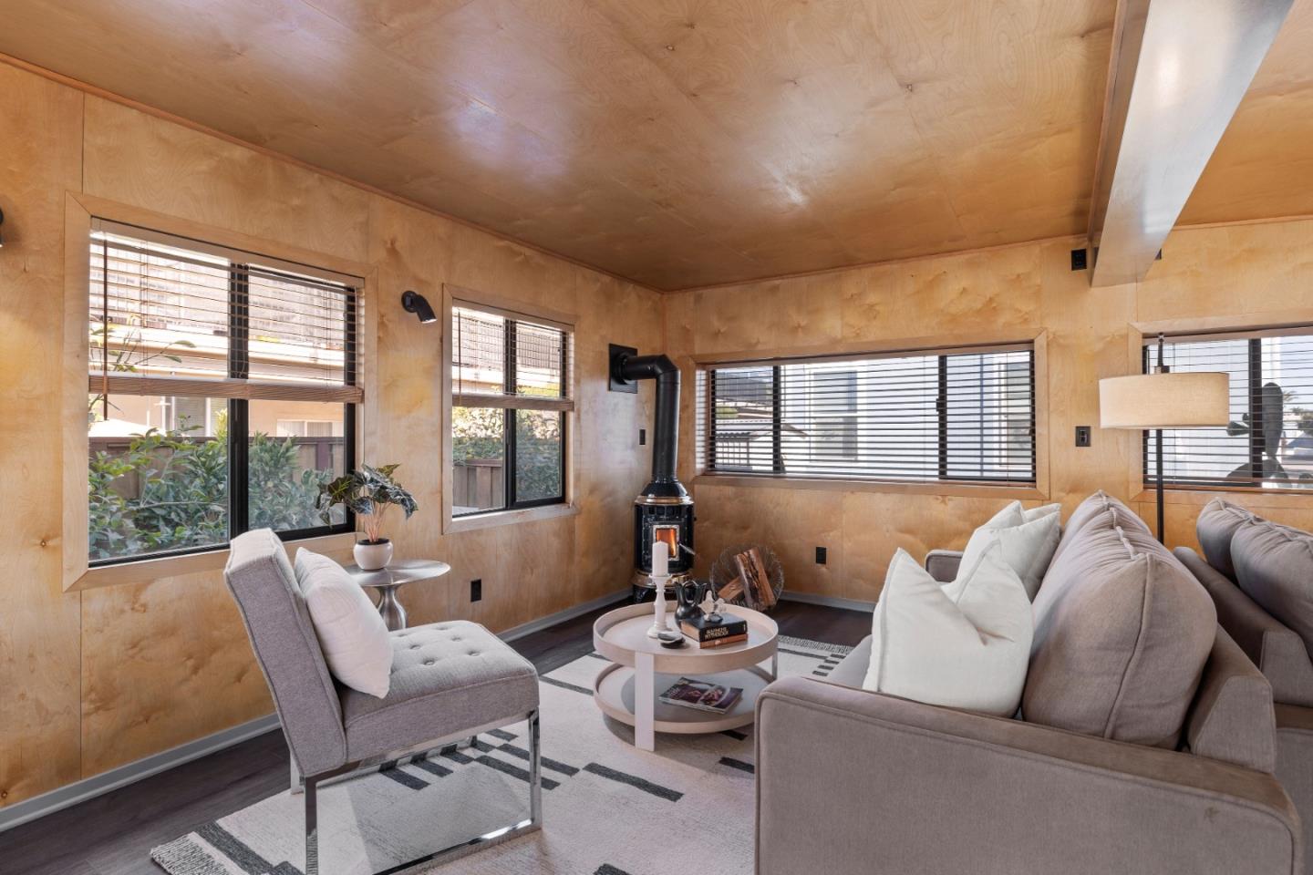 Pleasure Point living in Bay Park! Nicely remodeled 2 bedroom 1 bath that is ready to move in! Great new laminate floors throughout, just freshly painted interior, light wood paneled walls in living room, quartzite counters in kitchen and breakfast bar, quality kitchen fixtures, newly remodeled tile bathroom, private sunny deck off primary bedroom with new trex decking, nice lighting plus skylight, in-unit washer, double pane windows, ample parking, mature citrus trees, storage shed, and all this just minutes walk to surf, shopping, restaurants, coffee shops and more! Cozy front porch that's great for small dog and potted plants too! Perfect primary or great second home for the folks who wants a great little beach getaway! Shows beautifully and very comfortable feel! Turn key and ready to move in!
