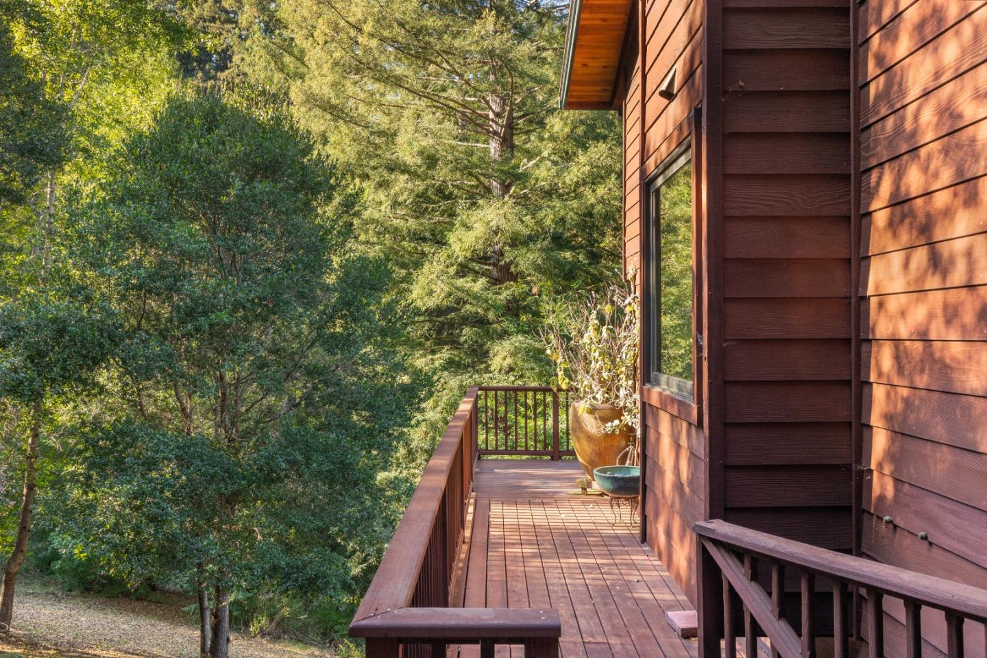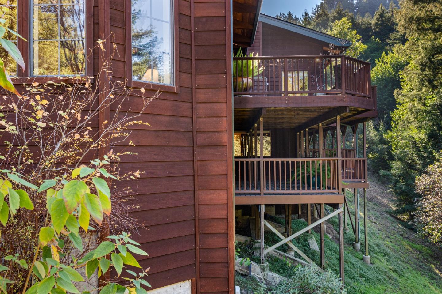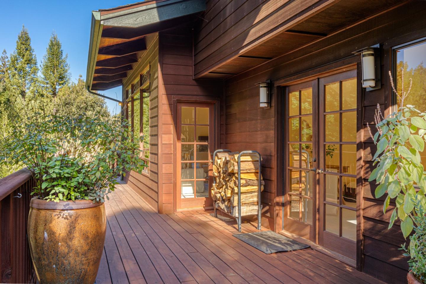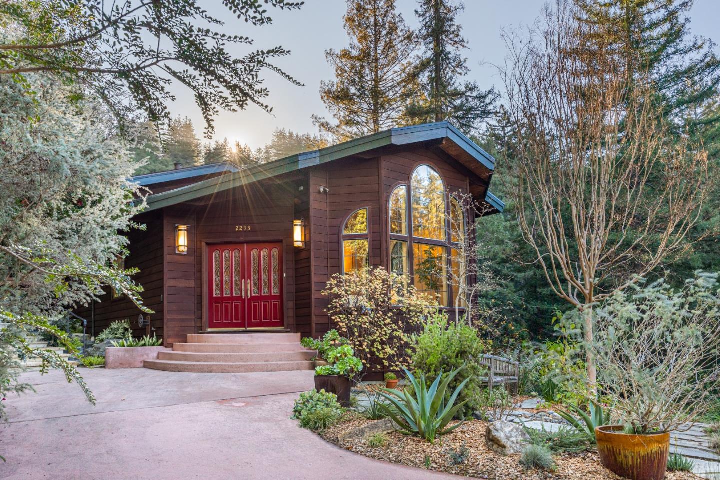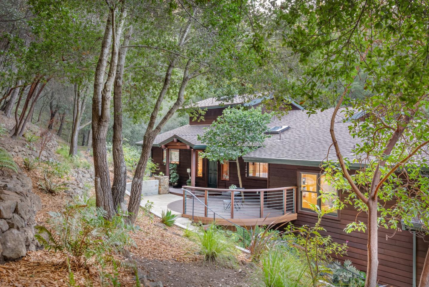 A Serene Mountain Retreat in Soquel with easy access to Highway 17, Silicon Valley, the conveniences of Santa Cruz, and the beaches from Aptos to Capitola. Nestled in the redwoods of Soquel Hills, 2293 Laurel Glen Road offers tranquil mountain living with modern amenities and Set on 5.5 pristine acres, this property provides peace, privacy, and stunning natural beauty. Inside, you'll find a thoughtfully designed 3-bedroom home with a bonus room, 2 full baths, and 2 half baths. The primary suite features custom cabinetry, countertops, and a slipper tub, while the secondary bath includes a stone-tile shower and Italian accents. The gourmet kitchen boasts a Sub-Zero refrigerator, Wolf 6-burner range, Miele steam and warming ovens, dual sinks, ample storage, and a walk-in pantry. The formal living room showcases soaring open-beam ceilings, a built-in bookcase, and forest views, while the family room offers a cozy fireplace and large plate-glass windows. Outside, enjoy an expansive wrap-around deck, a custom stone staircase leading to a shaded semi-circular deck, and fully irrigated landscaping. Practical amenities include a detached 2-car garage, 14kW back-up generator, 5,000-gallon well and fire tanks.