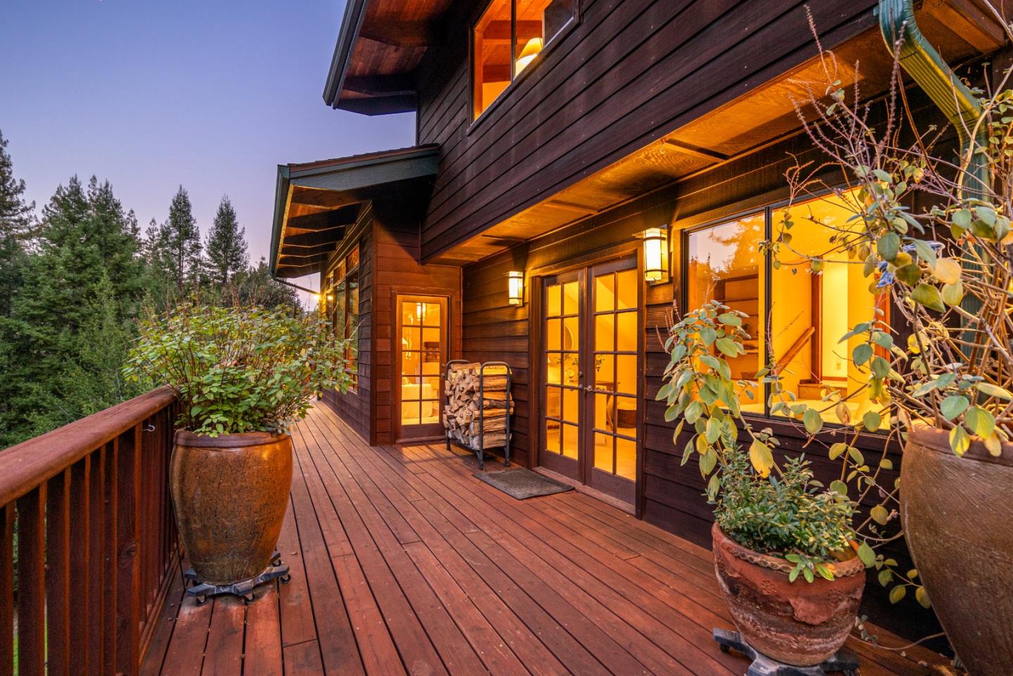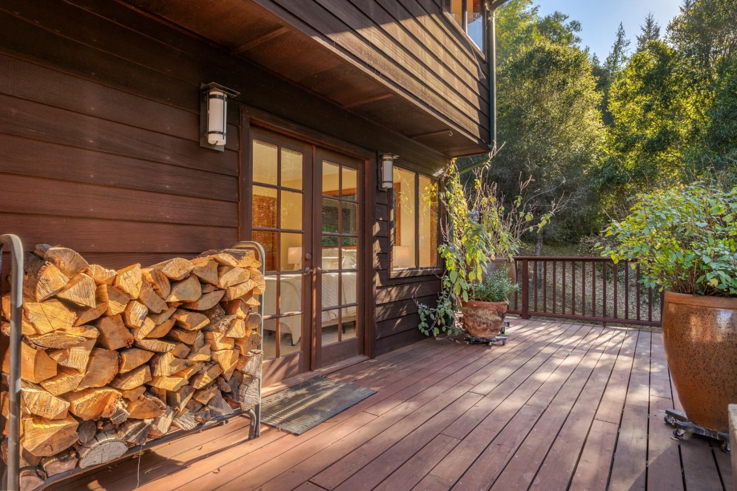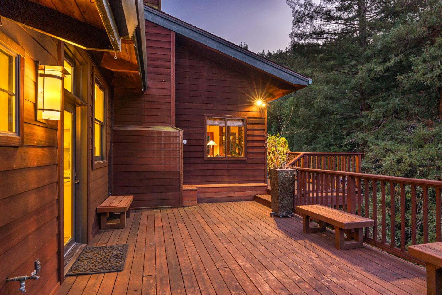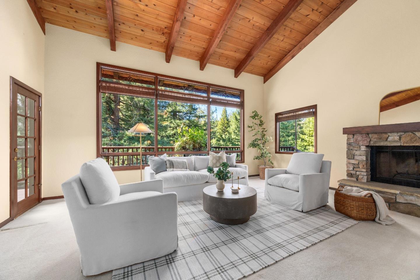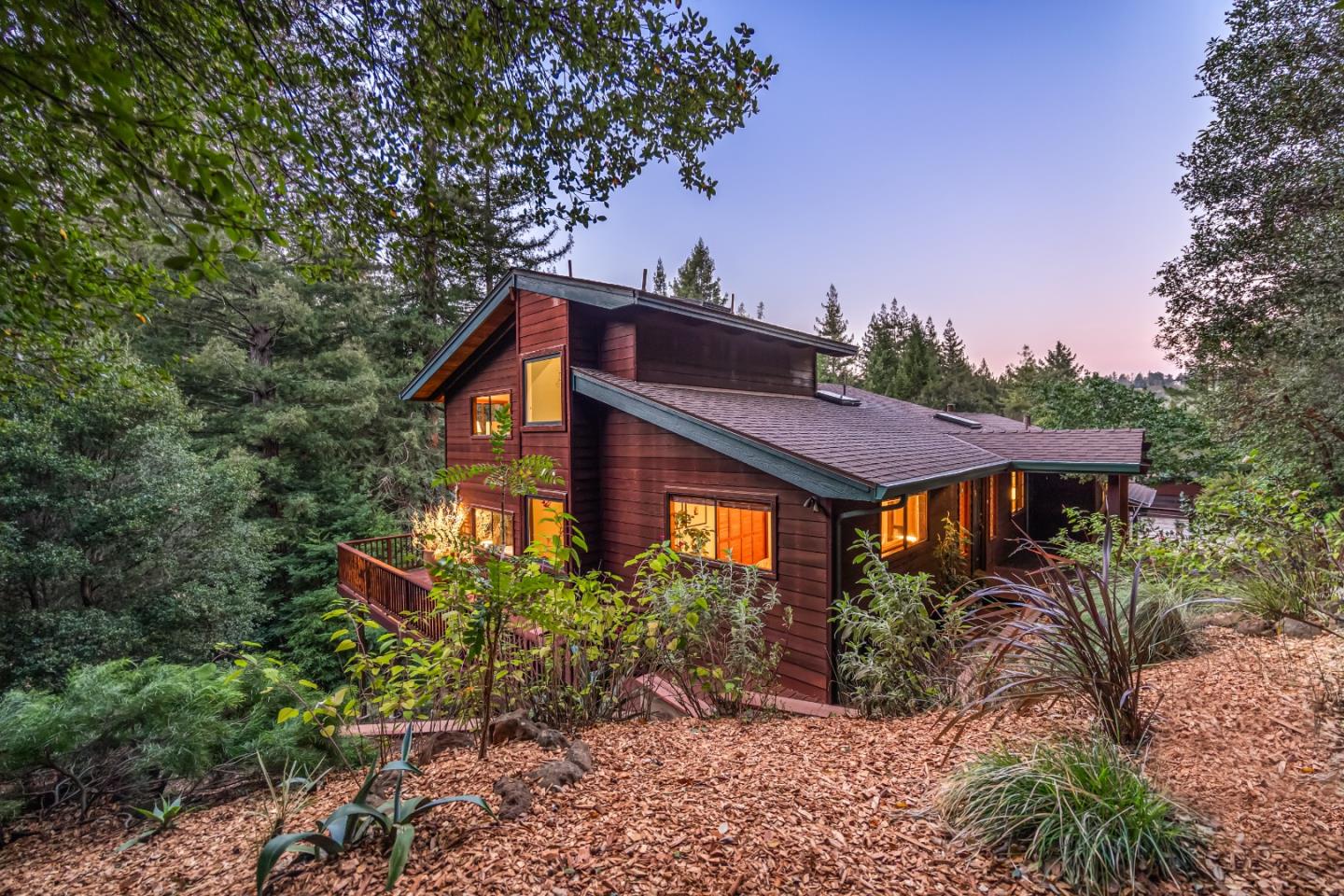 A Serene Mountain Retreat in Soquel with easy access to Highway 17, Silicon Valley, the conveniences of Santa Cruz, and the beaches from Aptos to Capitola. Nestled in the redwoods of Soquel Hills, 2293 Laurel Glen Road offers tranquil mountain living with modern amenities and Set on 5.5 pristine acres, this property provides peace, privacy, and stunning natural beauty. Inside, you'll find a thoughtfully designed 3-bedroom home with a bonus room, 2 full baths, and 2 half baths. The primary suite features custom cabinetry, countertops, and a slipper tub, while the secondary bath includes a stone-tile shower and Italian accents. The gourmet kitchen boasts a Sub-Zero refrigerator, Wolf 6-burner range, Miele steam and warming ovens, dual sinks, ample storage, and a walk-in pantry. The formal living room showcases soaring open-beam ceilings, a built-in bookcase, and forest views, while the family room offers a cozy fireplace and large plate-glass windows. Outside, enjoy an expansive wrap-around deck, a custom stone staircase leading to a shaded semi-circular deck, and fully irrigated landscaping. Practical amenities include a detached 2-car garage, 14kW back-up generator, 5,000-gallon well and fire tanks.