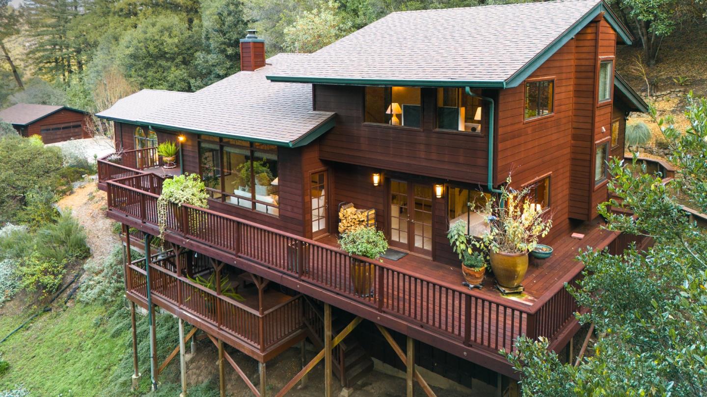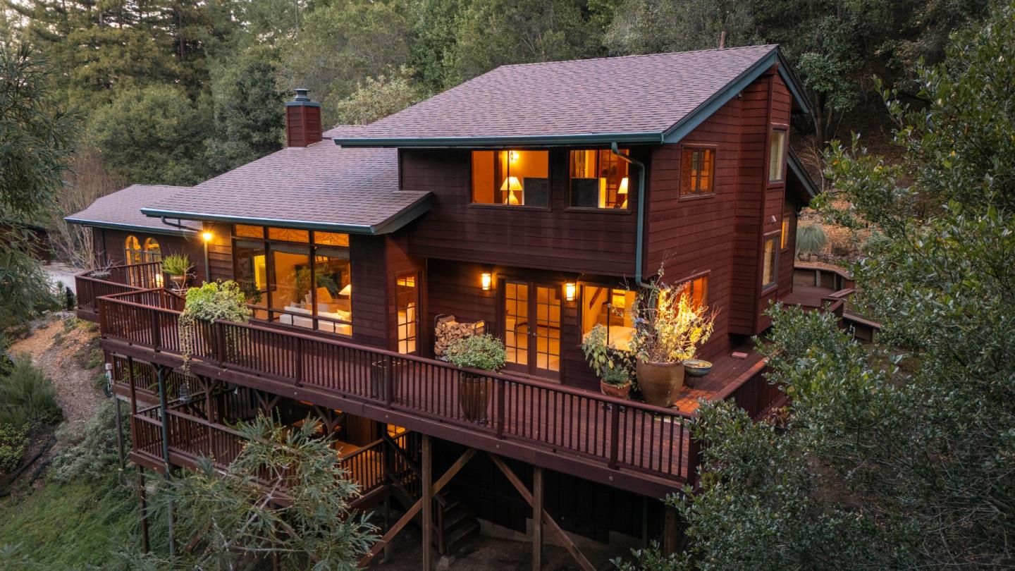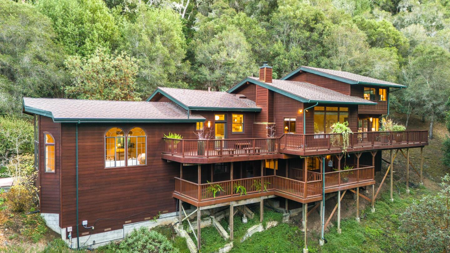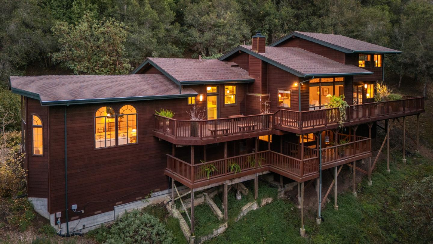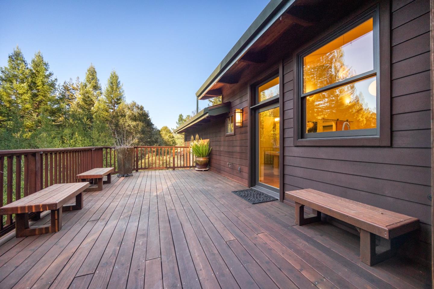 A Serene Mountain Retreat in Soquel with easy access to Highway 17, Silicon Valley, the conveniences of Santa Cruz, and the beaches from Aptos to Capitola. Nestled in the redwoods of Soquel Hills, 2293 Laurel Glen Road offers tranquil mountain living with modern amenities and Set on 5.5 pristine acres, this property provides peace, privacy, and stunning natural beauty. Inside, you'll find a thoughtfully designed 3-bedroom home with a bonus room, 2 full baths, and 2 half baths. The primary suite features custom cabinetry, countertops, and a slipper tub, while the secondary bath includes a stone-tile shower and Italian accents. The gourmet kitchen boasts a Sub-Zero refrigerator, Wolf 6-burner range, Miele steam and warming ovens, dual sinks, ample storage, and a walk-in pantry. The formal living room showcases soaring open-beam ceilings, a built-in bookcase, and forest views, while the family room offers a cozy fireplace and large plate-glass windows. Outside, enjoy an expansive wrap-around deck, a custom stone staircase leading to a shaded semi-circular deck, and fully irrigated landscaping. Practical amenities include a detached 2-car garage, 14kW back-up generator, 5,000-gallon well and fire tanks.