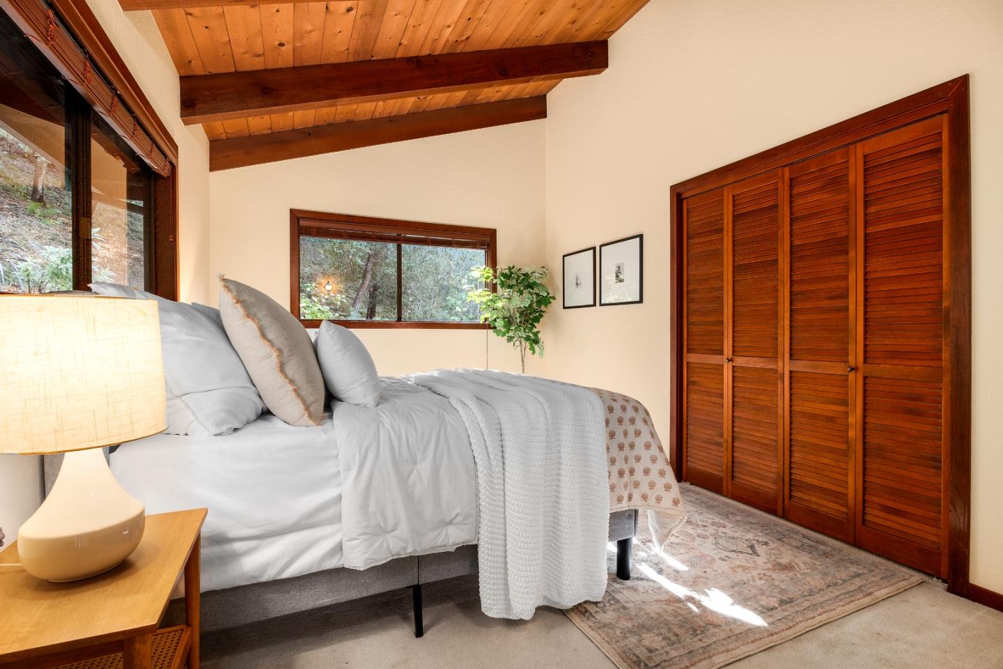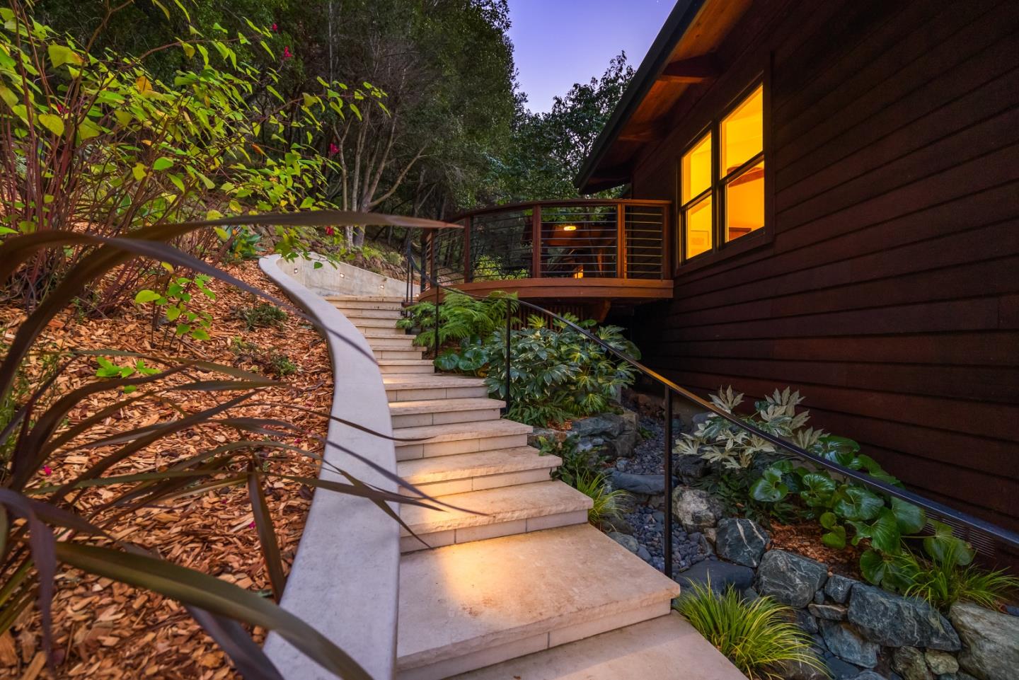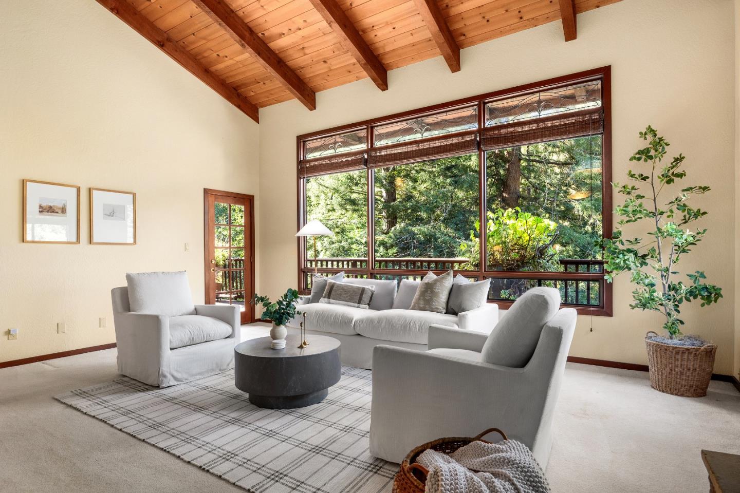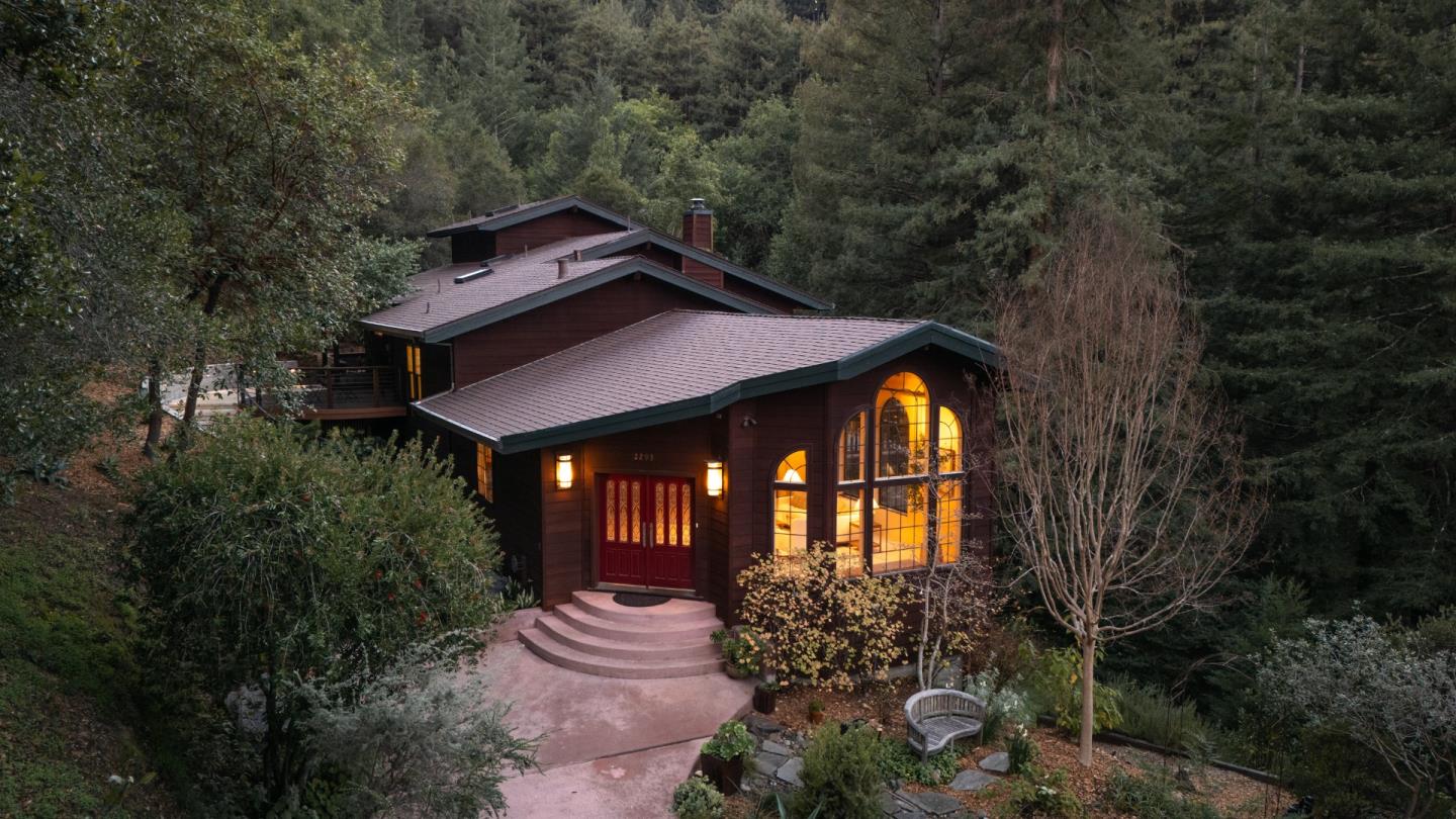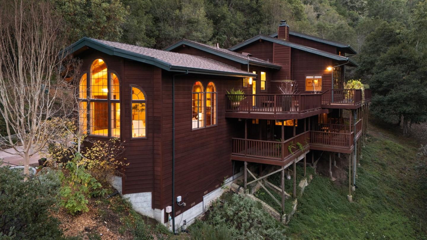 A Serene Mountain Retreat in Soquel with easy access to Highway 17, Silicon Valley, the conveniences of Santa Cruz, and the beaches from Aptos to Capitola. Nestled in the redwoods of Soquel Hills, 2293 Laurel Glen Road offers tranquil mountain living with modern amenities and Set on 5.5 pristine acres, this property provides peace, privacy, and stunning natural beauty. Inside, you'll find a thoughtfully designed 3-bedroom home with a bonus room, 2 full baths, and 2 half baths. The primary suite features custom cabinetry, countertops, and a slipper tub, while the secondary bath includes a stone-tile shower and Italian accents. The gourmet kitchen boasts a Sub-Zero refrigerator, Wolf 6-burner range, Miele steam and warming ovens, dual sinks, ample storage, and a walk-in pantry. The formal living room showcases soaring open-beam ceilings, a built-in bookcase, and forest views, while the family room offers a cozy fireplace and large plate-glass windows. Outside, enjoy an expansive wrap-around deck, a custom stone staircase leading to a shaded semi-circular deck, and fully irrigated landscaping. Practical amenities include a detached 2-car garage, 14kW back-up generator, 5,000-gallon well and fire tanks.