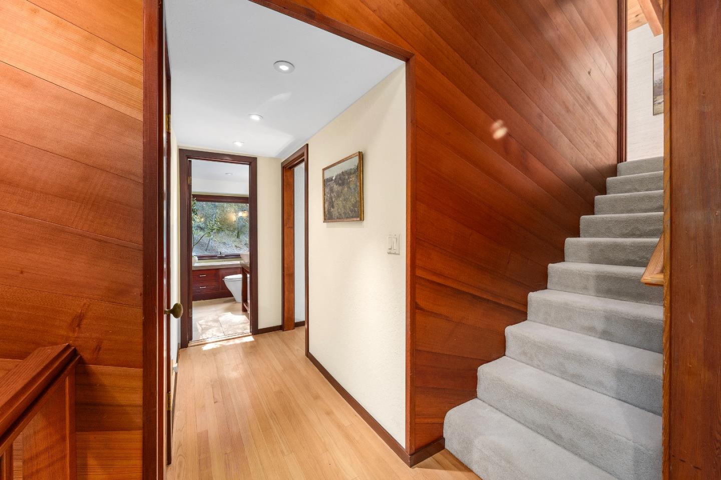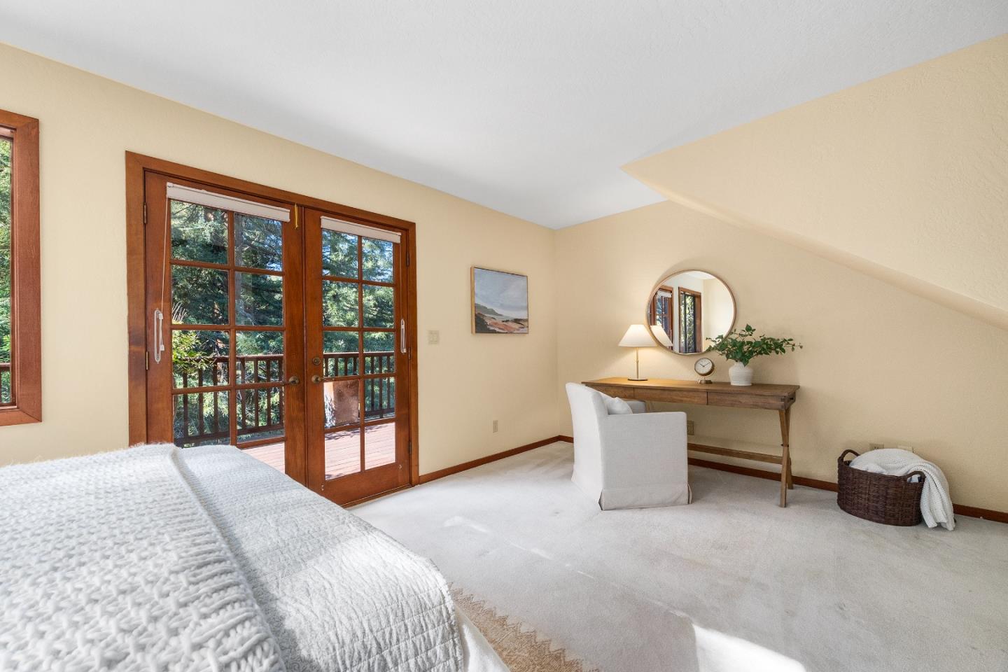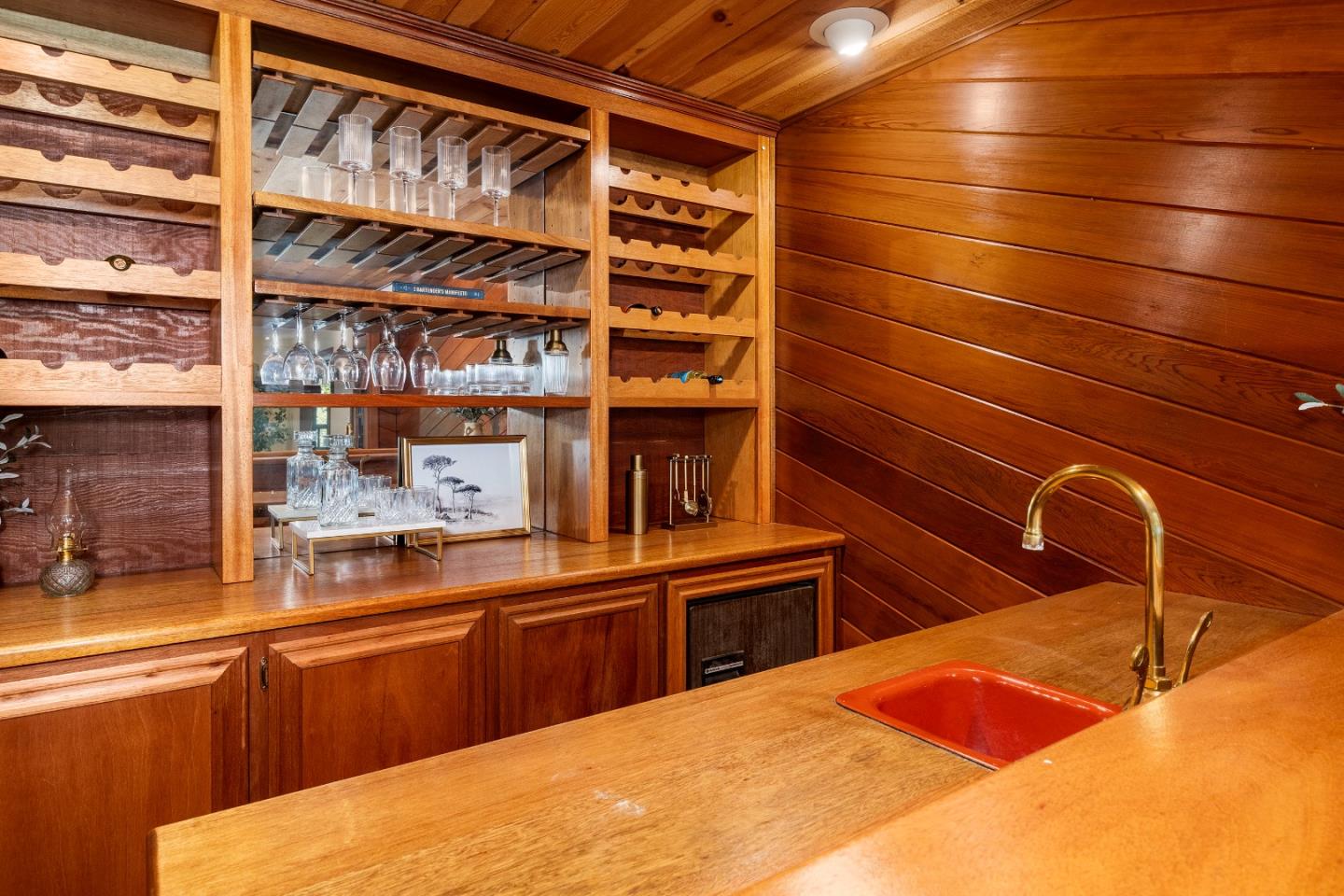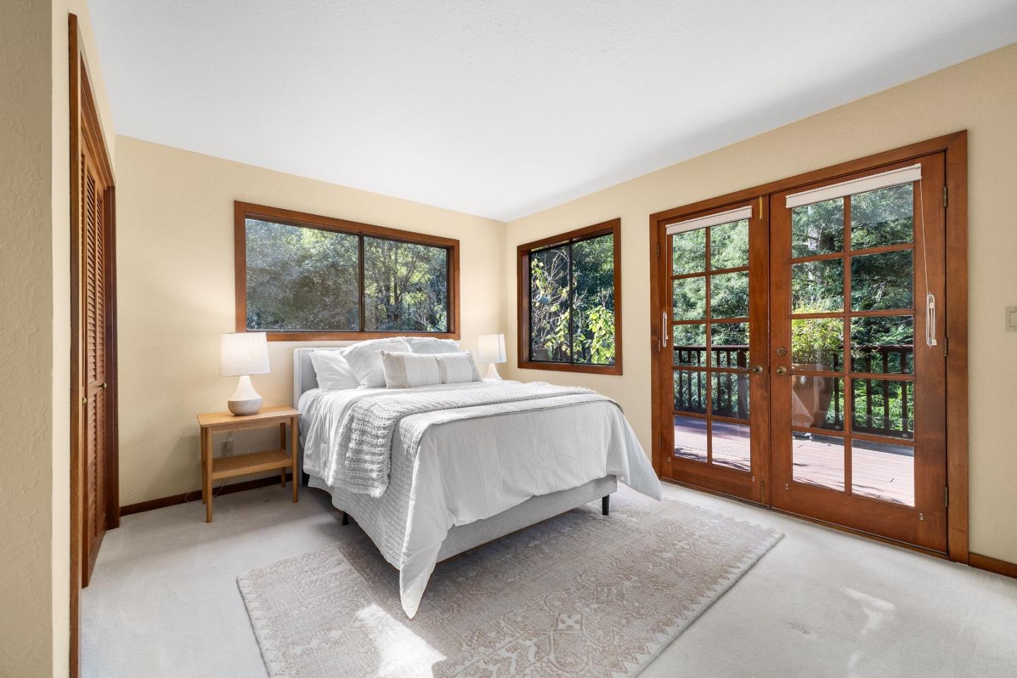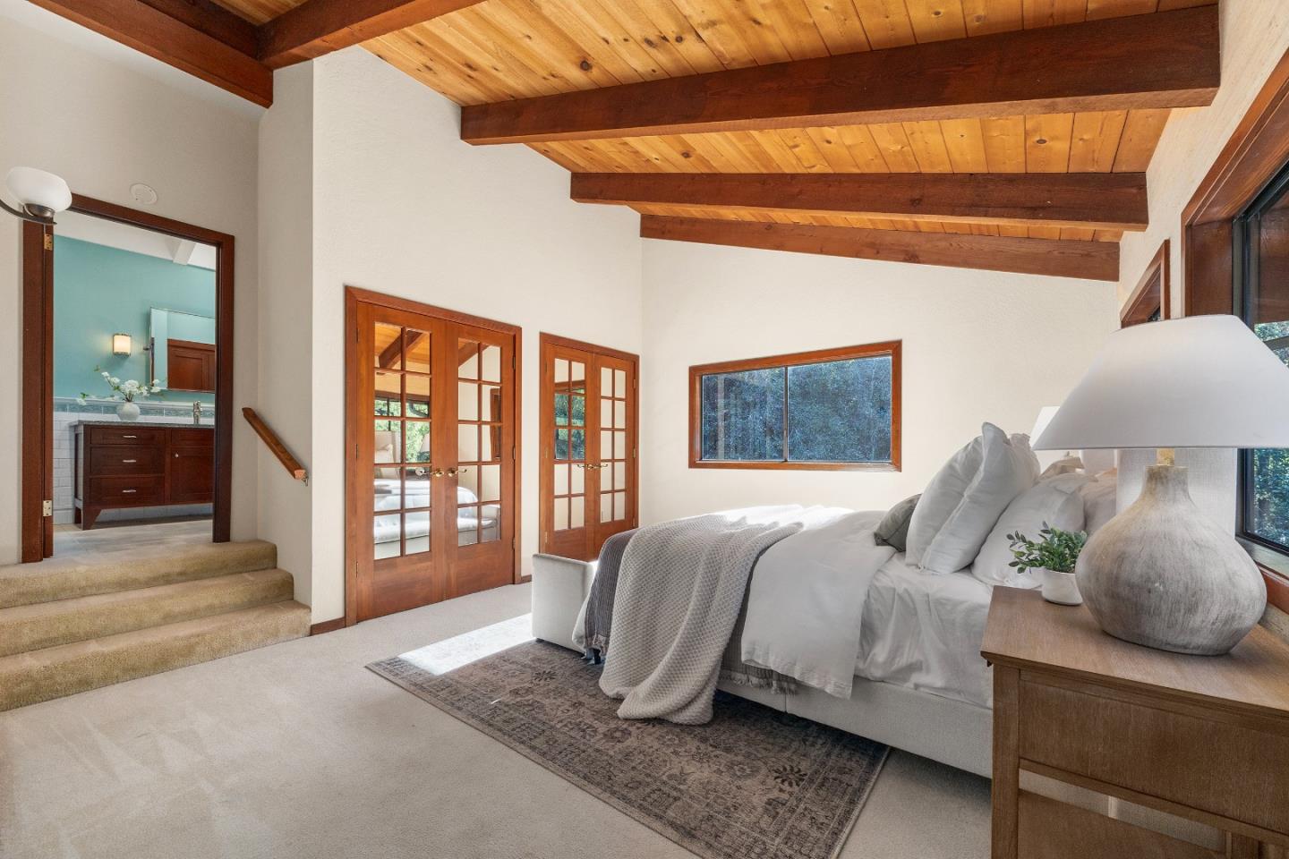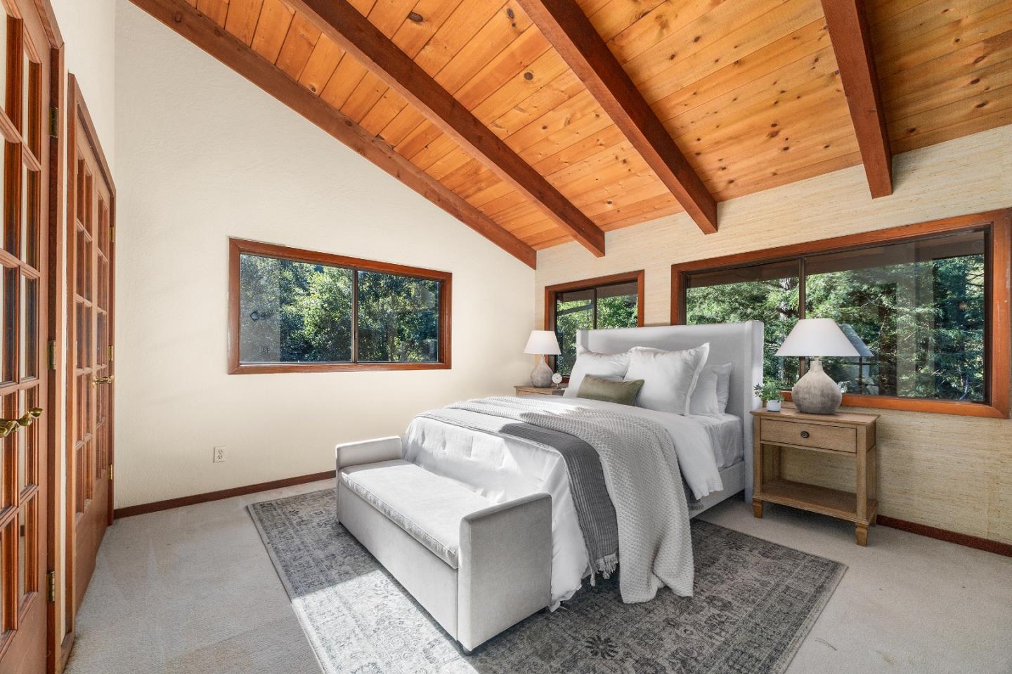 A Serene Mountain Retreat in Soquel with easy access to Highway 17, Silicon Valley, the conveniences of Santa Cruz, and the beaches from Aptos to Capitola. Nestled in the redwoods of Soquel Hills, 2293 Laurel Glen Road offers tranquil mountain living with modern amenities and Set on 5.5 pristine acres, this property provides peace, privacy, and stunning natural beauty. Inside, you'll find a thoughtfully designed 3-bedroom home with a bonus room, 2 full baths, and 2 half baths. The primary suite features custom cabinetry, countertops, and a slipper tub, while the secondary bath includes a stone-tile shower and Italian accents. The gourmet kitchen boasts a Sub-Zero refrigerator, Wolf 6-burner range, Miele steam and warming ovens, dual sinks, ample storage, and a walk-in pantry. The formal living room showcases soaring open-beam ceilings, a built-in bookcase, and forest views, while the family room offers a cozy fireplace and large plate-glass windows. Outside, enjoy an expansive wrap-around deck, a custom stone staircase leading to a shaded semi-circular deck, and fully irrigated landscaping. Practical amenities include a detached 2-car garage, 14kW back-up generator, 5,000-gallon well and fire tanks.