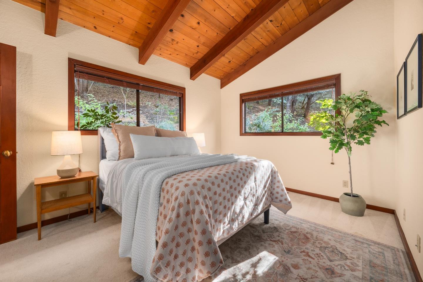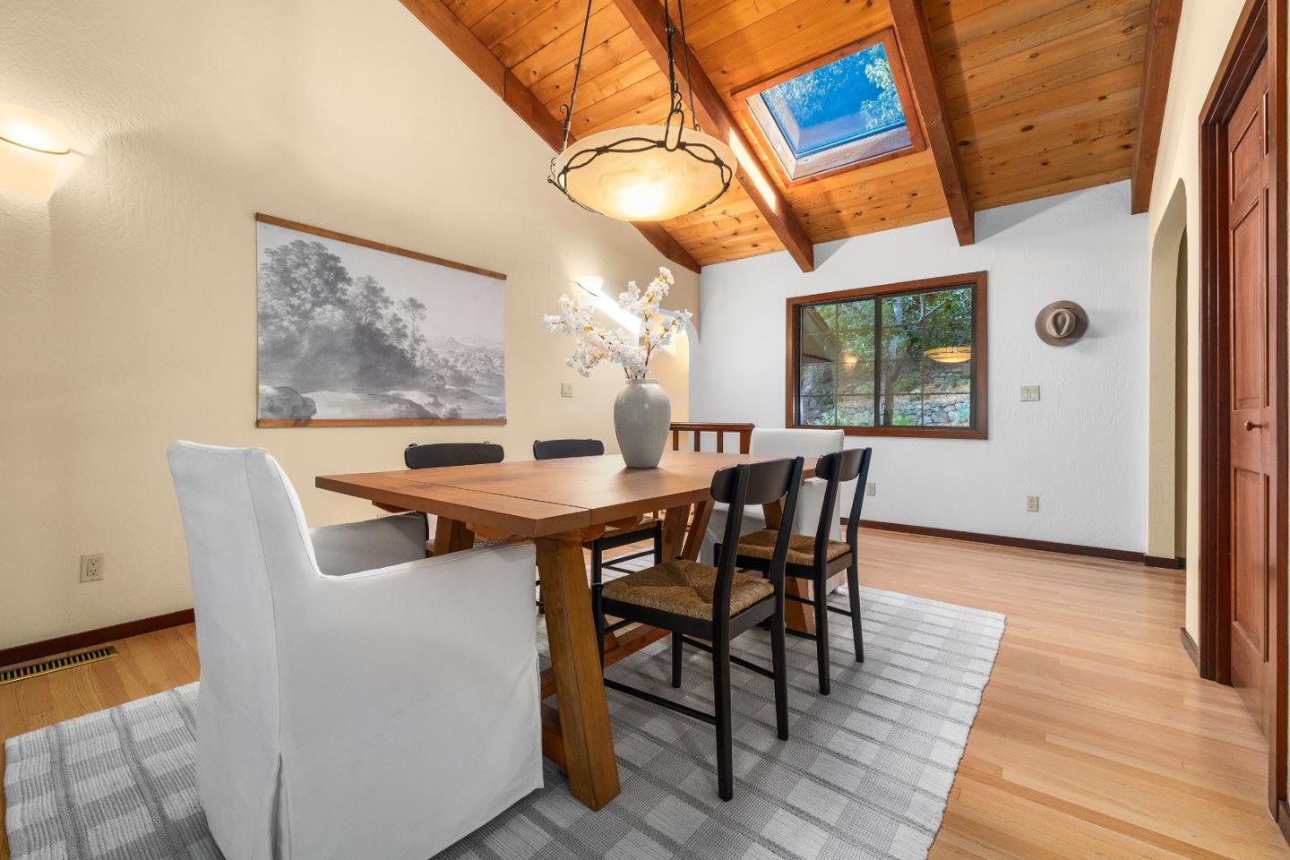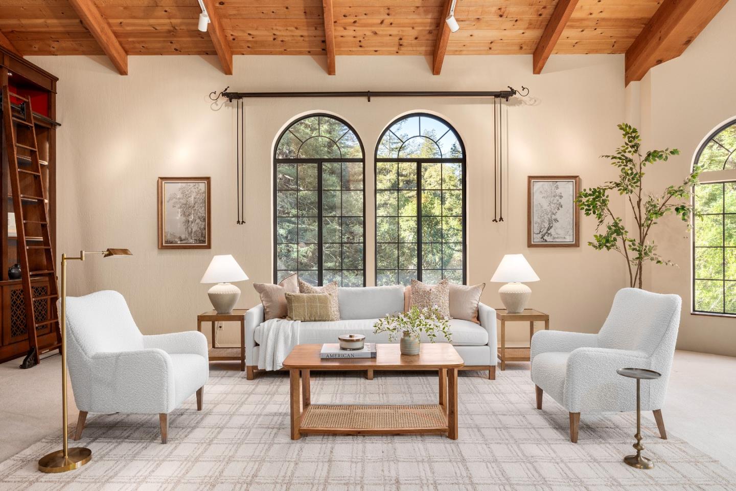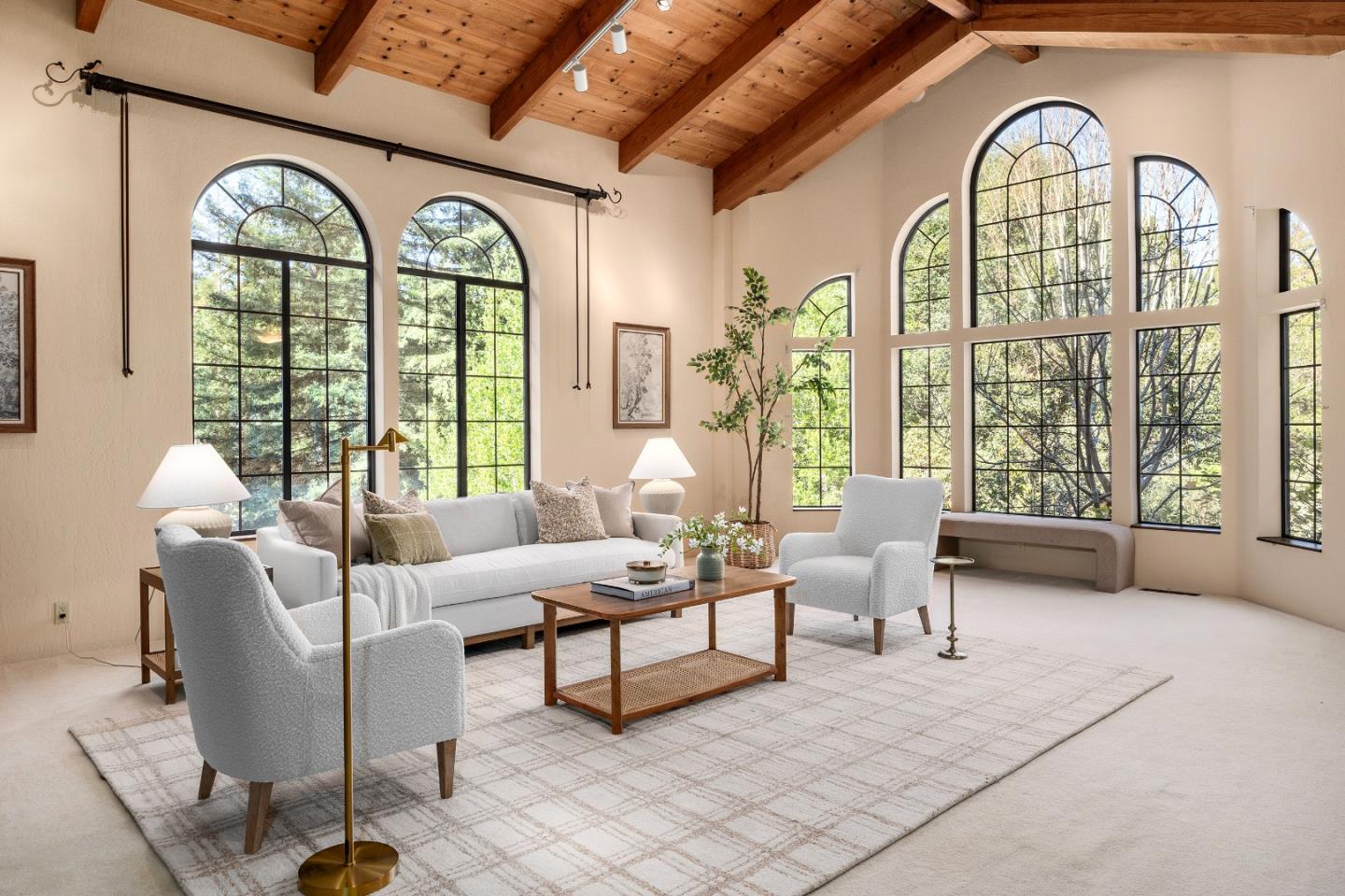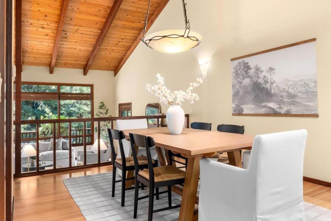 A Serene Mountain Retreat in Soquel with easy access to Highway 17, Silicon Valley, the conveniences of Santa Cruz, and the beaches from Aptos to Capitola. Nestled in the redwoods of Soquel Hills, 2293 Laurel Glen Road offers tranquil mountain living with modern amenities and Set on 5.5 pristine acres, this property provides peace, privacy, and stunning natural beauty. Inside, you'll find a thoughtfully designed 3-bedroom home with a bonus room, 2 full baths, and 2 half baths. The primary suite features custom cabinetry, countertops, and a slipper tub, while the secondary bath includes a stone-tile shower and Italian accents. The gourmet kitchen boasts a Sub-Zero refrigerator, Wolf 6-burner range, Miele steam and warming ovens, dual sinks, ample storage, and a walk-in pantry. The formal living room showcases soaring open-beam ceilings, a built-in bookcase, and forest views, while the family room offers a cozy fireplace and large plate-glass windows. Outside, enjoy an expansive wrap-around deck, a custom stone staircase leading to a shaded semi-circular deck, and fully irrigated landscaping. Practical amenities include a detached 2-car garage, 14kW back-up generator, 5,000-gallon well and fire tanks.