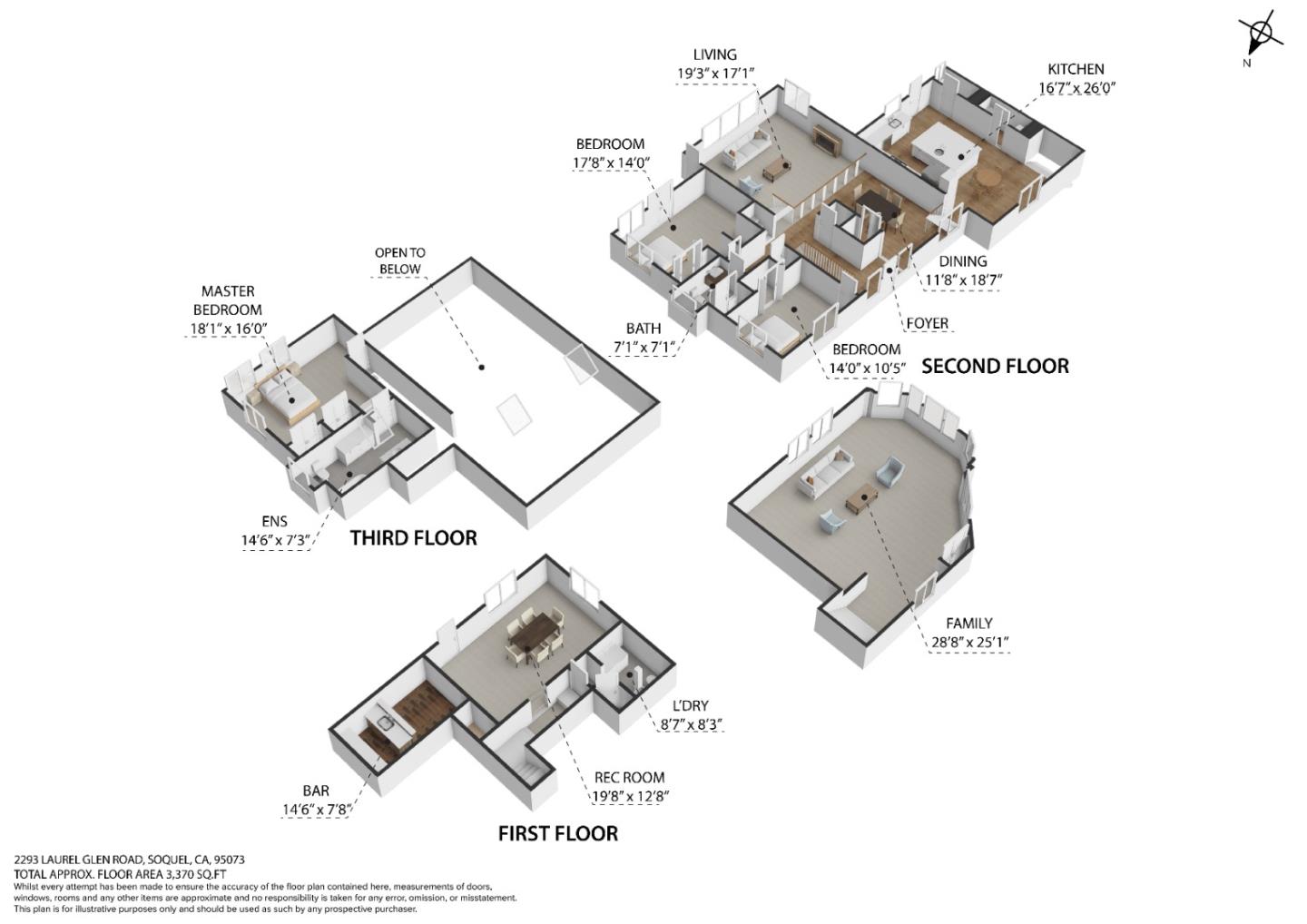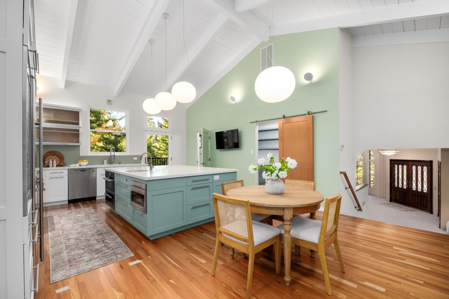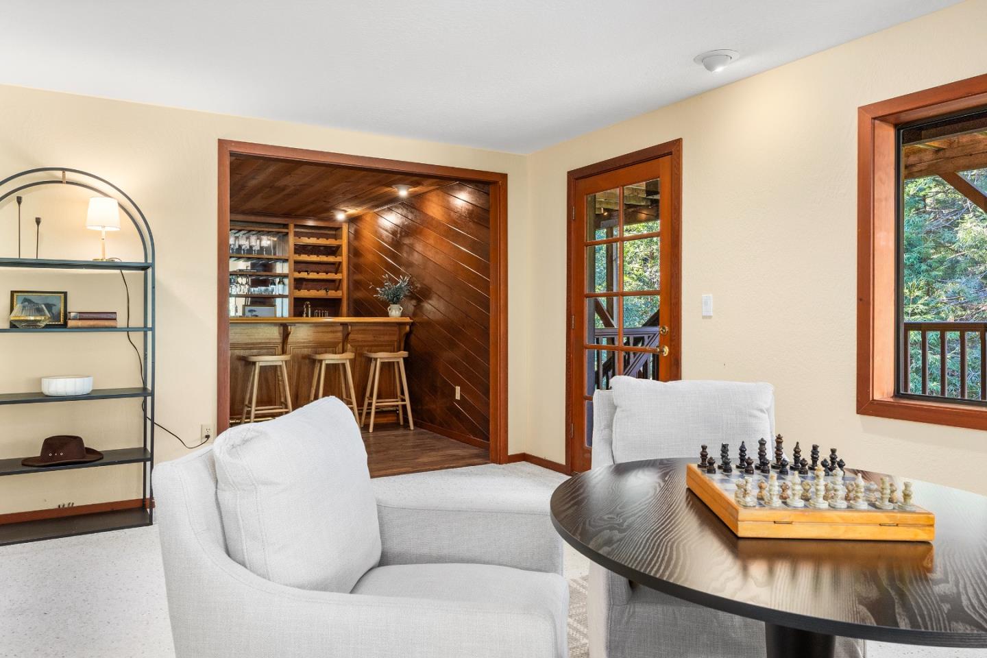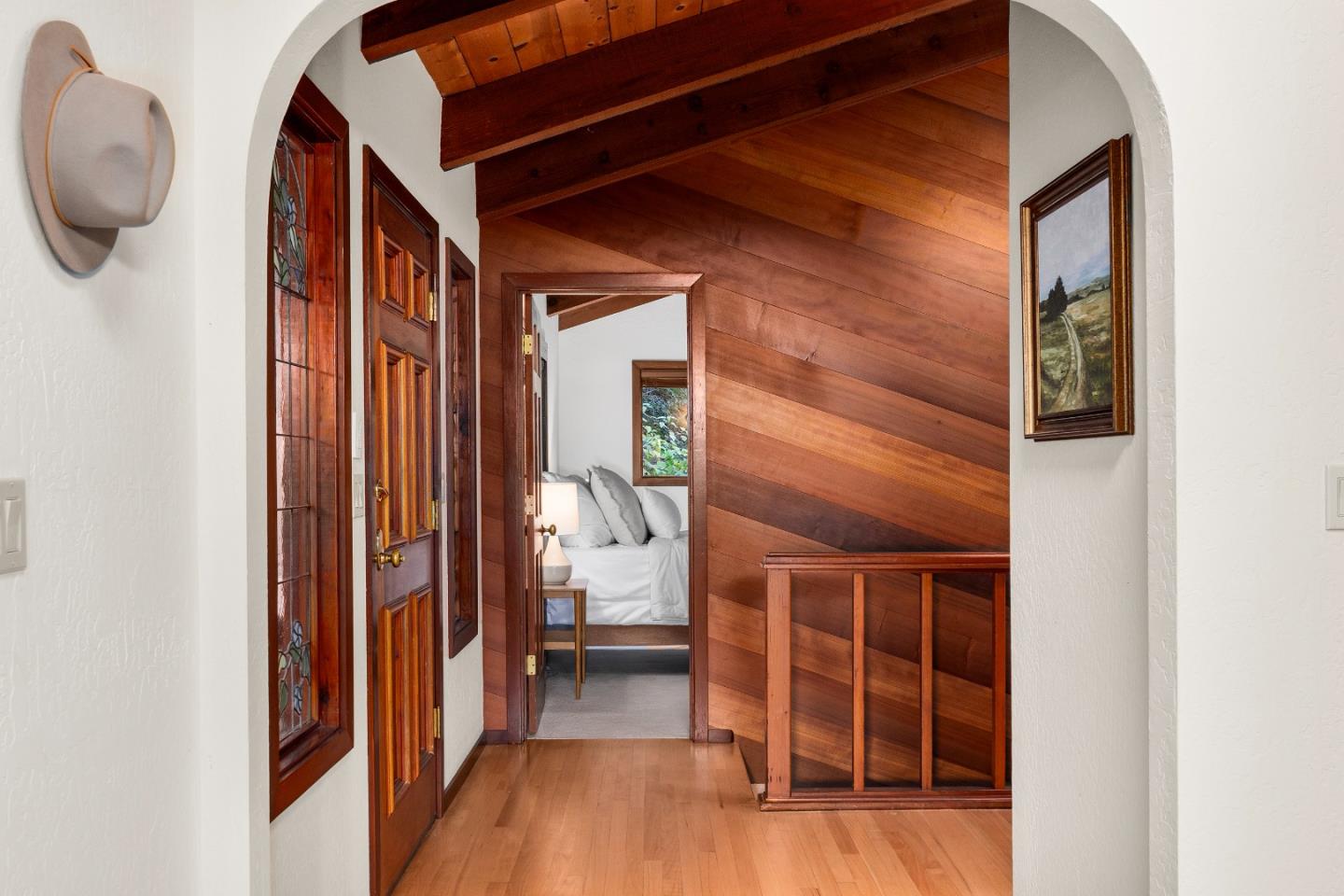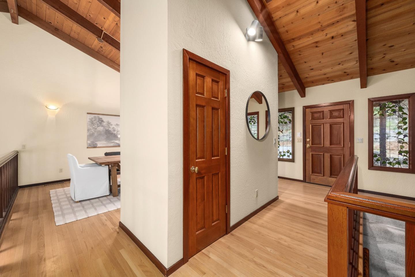 A Serene Mountain Retreat in Soquel with easy access to Highway 17, Silicon Valley, the conveniences of Santa Cruz, and the beaches from Aptos to Capitola. Nestled in the redwoods of Soquel Hills, 2293 Laurel Glen Road offers tranquil mountain living with modern amenities and Set on 5.5 pristine acres, this property provides peace, privacy, and stunning natural beauty. Inside, you'll find a thoughtfully designed 3-bedroom home with a bonus room, 2 full baths, and 2 half baths. The primary suite features custom cabinetry, countertops, and a slipper tub, while the secondary bath includes a stone-tile shower and Italian accents. The gourmet kitchen boasts a Sub-Zero refrigerator, Wolf 6-burner range, Miele steam and warming ovens, dual sinks, ample storage, and a walk-in pantry. The formal living room showcases soaring open-beam ceilings, a built-in bookcase, and forest views, while the family room offers a cozy fireplace and large plate-glass windows. Outside, enjoy an expansive wrap-around deck, a custom stone staircase leading to a shaded semi-circular deck, and fully irrigated landscaping. Practical amenities include a detached 2-car garage, 14kW back-up generator, 5,000-gallon well and fire tanks.