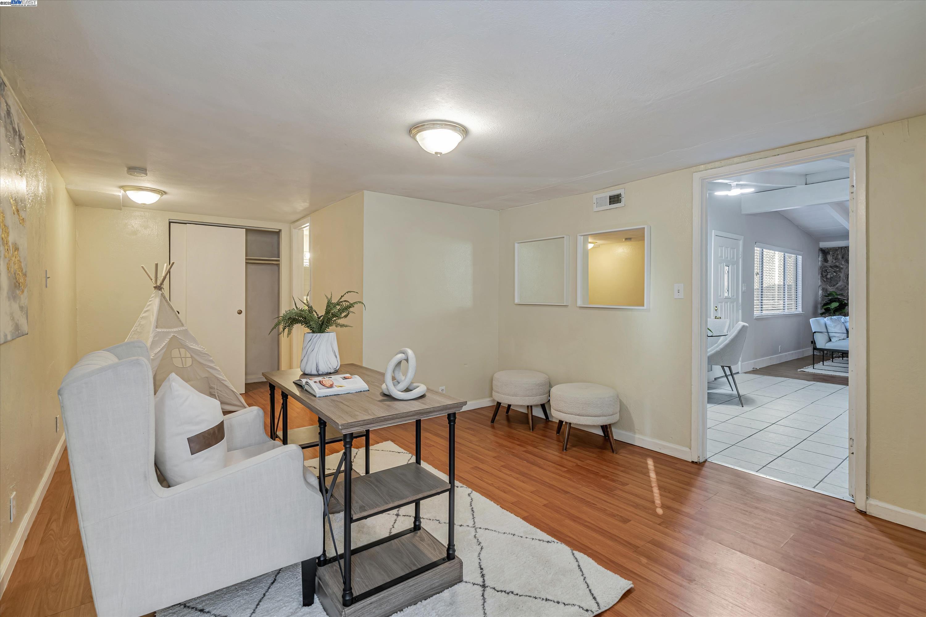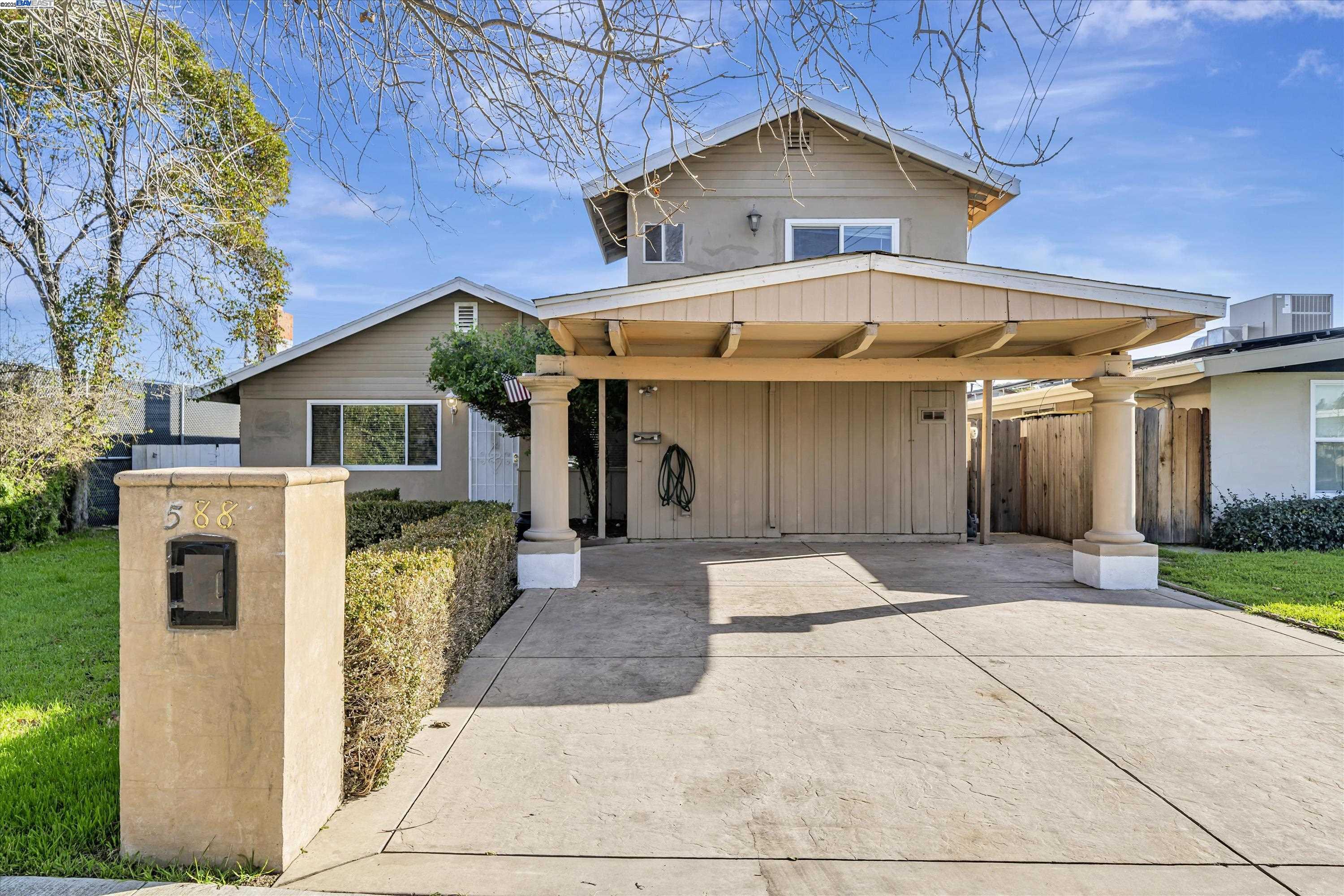 Discover this rare gem in Livermore! Located at the end of a cul-de-sac, this spacious two-story home features 4 bedrooms, 3 bathrooms, and a generous 1,767 sq. ft. of living space on a 5,836 sq. ft. lot. The open floor plan includes a large family room with a charming stone fireplace, a versatile double kitchen, and new paint throughout. Tile and wood laminate flooring add to the home’s appeal, and the extra living area in the back offers the potential to create a Junior Suite or ADU. The backyard boasts a perfect combination of concrete and grass, ideal for relaxation or entertaining, while the front yard includes a two-car carport for convenient parking. Situated near top-rated schools, including the Marylin Avenue STEAM Academy, this home is steps away from May Nissen Community Park, offering pickleball courts, a swimming pool, dog park, playground, and the Livermore Public Library. Centrally located with easy access to shopping, dining, downtown Livermore, and major freeways, this home combines convenience with endless potential. Don’t miss your chance to own one of the largest and most affordable 4-bedroom homes in the area!