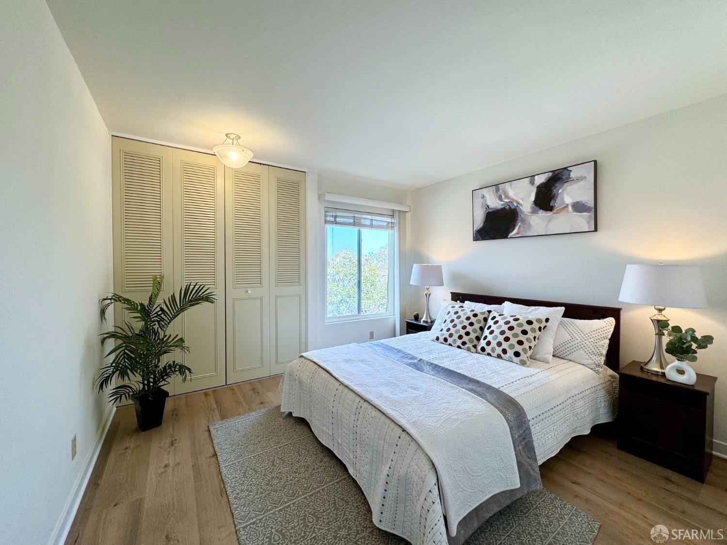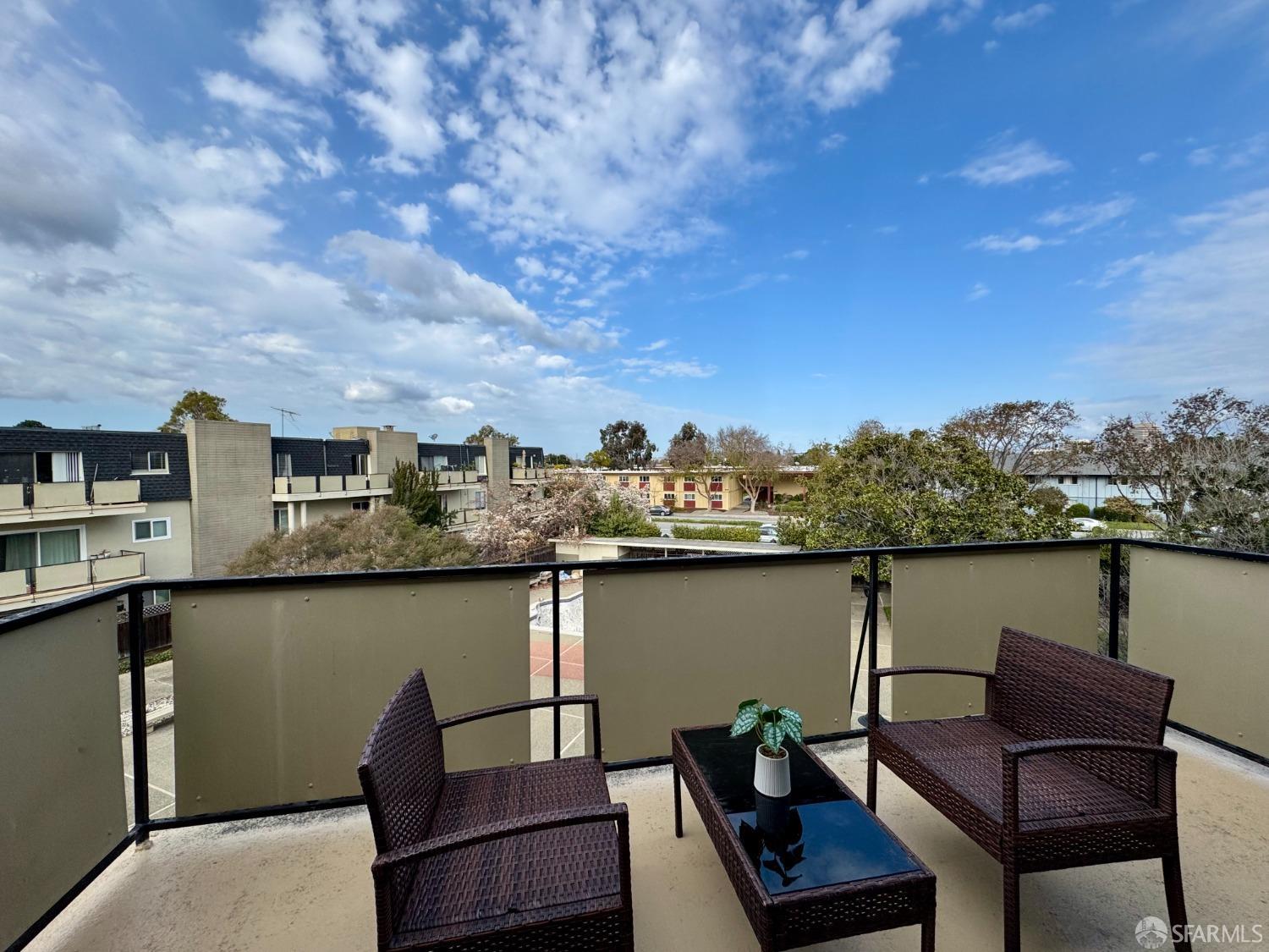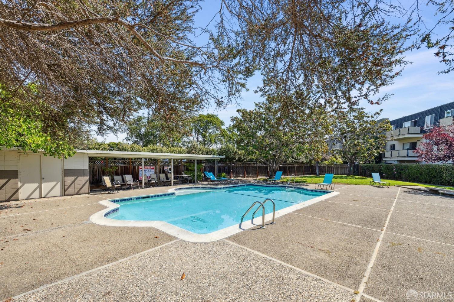 Welcome to this charming top floor end unit condominium at Village Crest. This 1 bedroom and 1 bathroom unit features an open living room and dining area that flows to a large private balcony overlooking the peaceful views of the community pool. Recessed lighting, new vinyl flooring, and abundance of natural light illuminates the space. This unit comes with a deeded one-car garage with a storage cabinet and a second permit parking space perfect for guests. Additional building amenities include a community laundry room and elevator access for added convenience. Pet friendly complex. Easy access to the 101 and 92. Ideally located just minutes from Hillsdale Shopping Center and Downtown San Mateo, you'll have easy access to a variety of dining, shopping, and entertainment options.