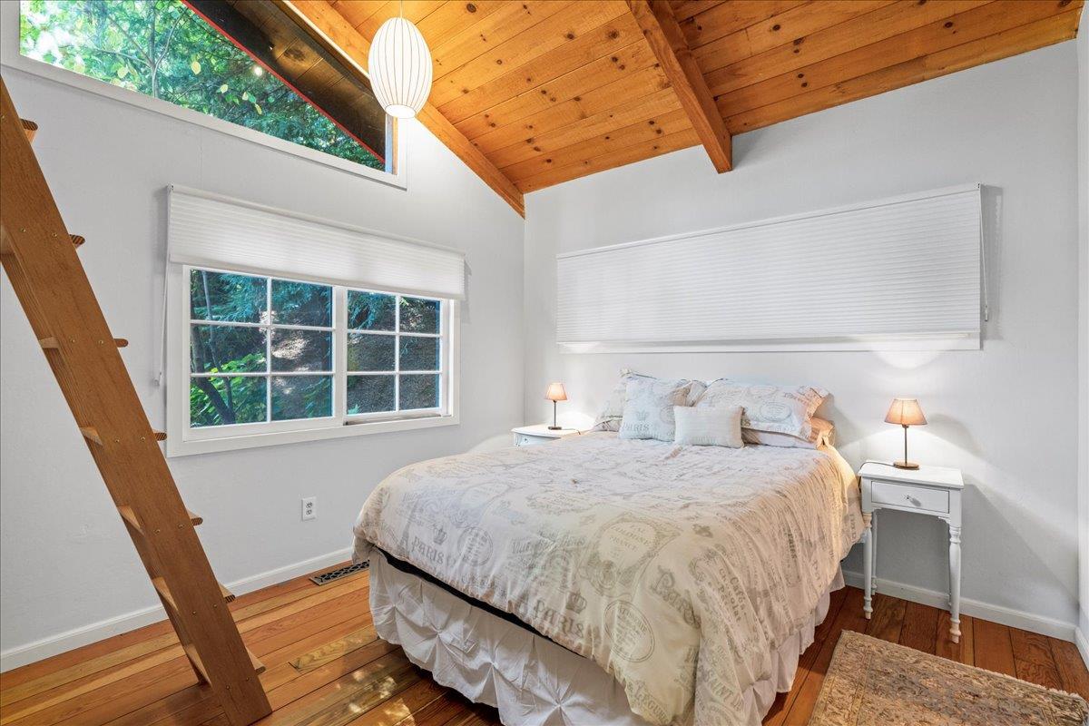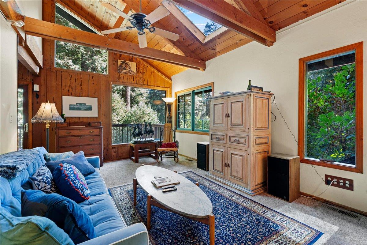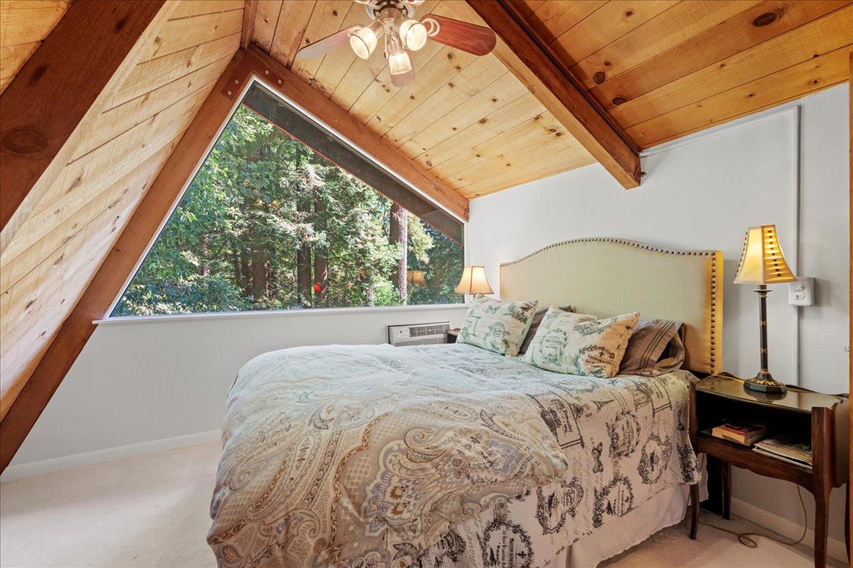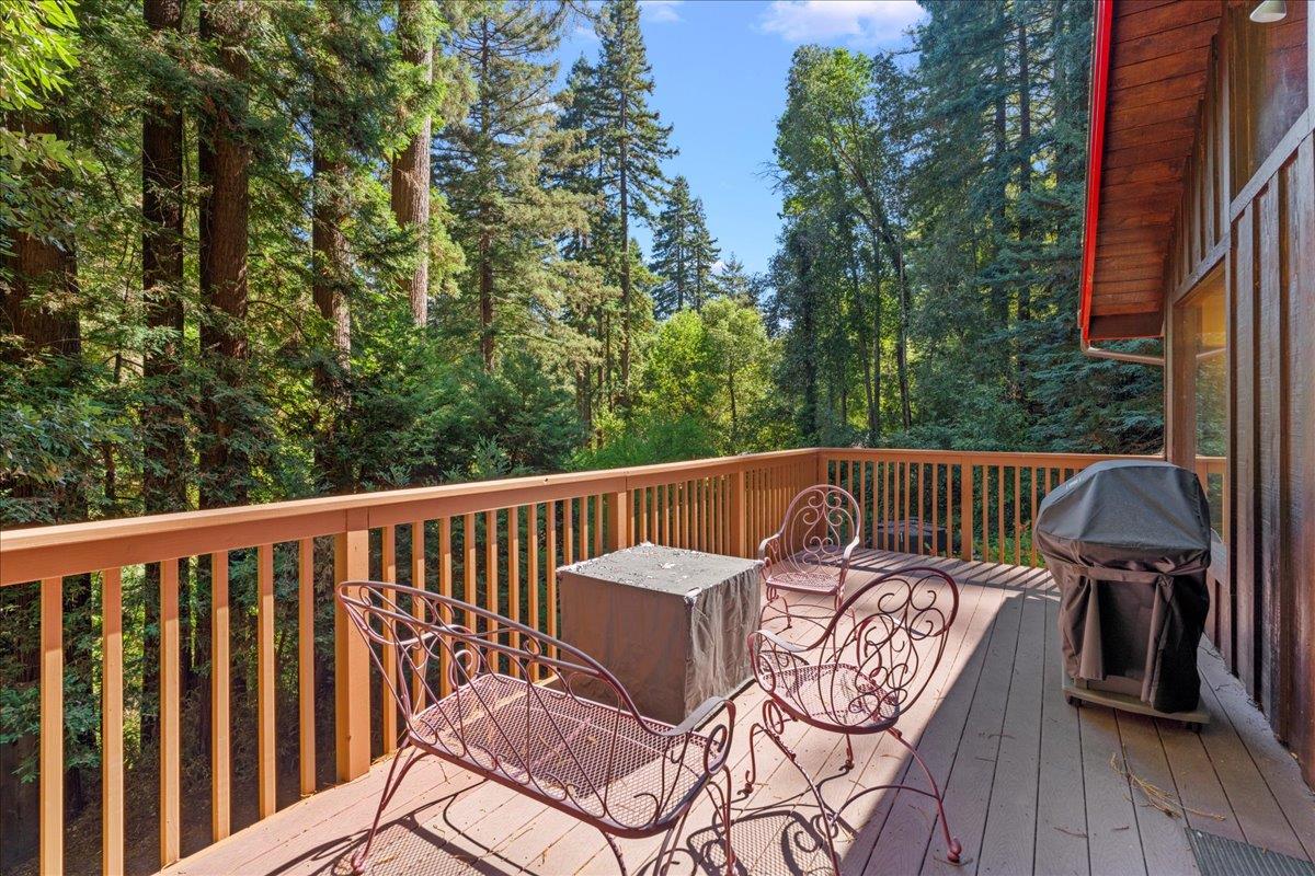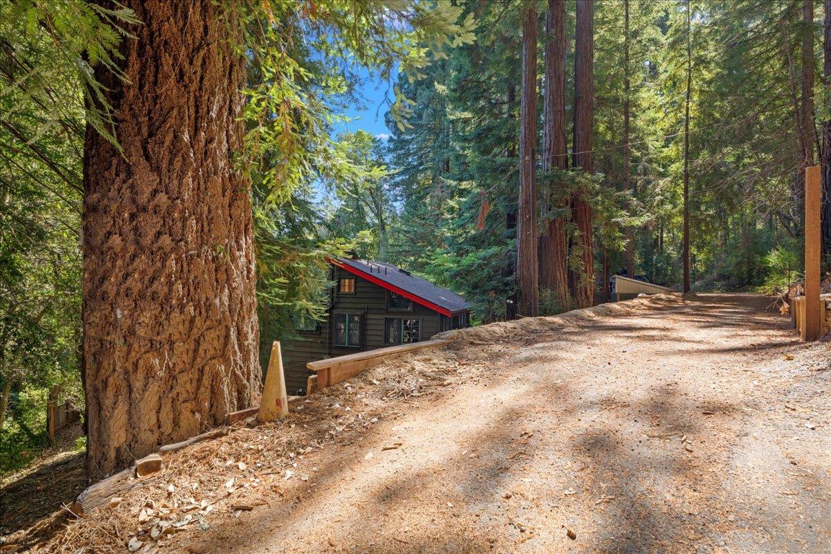 This house was custom built in 1976 from second growth redwood trees harvested on the property. It is situated between Boulder Creek and Brookdale, with easy access to Hwy 9, on a private almost half acre lot. The home has two access roads, a private lane below (off Monan) and one road above the home. Both roads lead to ample parking for 4 or more cars each. The lower parking includes an RV pad with a 30 amp plug and was recently graded and paved for easy parking and enjoyment. New 10 x 12'Tuff Shed on upper parking area. There's an approx. 220 sq ft basement/laundry that can be used as a workshop, additional storage, etc. New roof in 2023 by Moriarty Roofing with 10 Yr transferable warranty. Trex deck off kitchen, sit and enjoy the redwoods! Kitchen includes pantry, granite counters, solid ash cabinets, and stainless steel appliances. Home has truss & beam construction with blown insulation under the floor. 5000 gallon water tank connected to private well, (no water bills!), Culligan water softener, UV light between water tank and pump, and ozone bubble system (water you can drink!). 10kw Generac on demand generator (kicks in when power goes out) included with property. Short distance to downtown Boulder Creek. Lots of summer sun on the property. Buyer to verify all info.